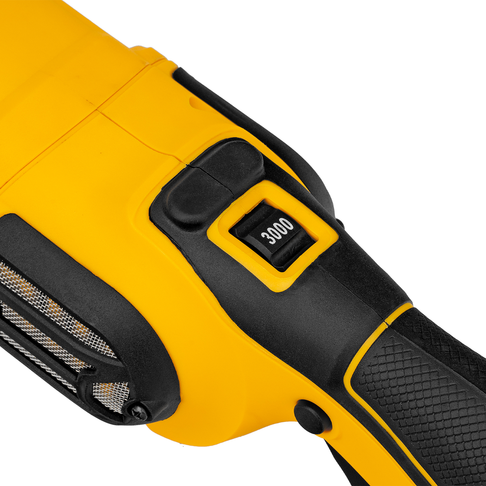 - Точность и эффективность — электронная регулировка частоты вращения в диапазоне 0-3000 об/мин позволяет точно подобрать нужный режим работы, ориентируясь на тип обрабатываемой поверхности.