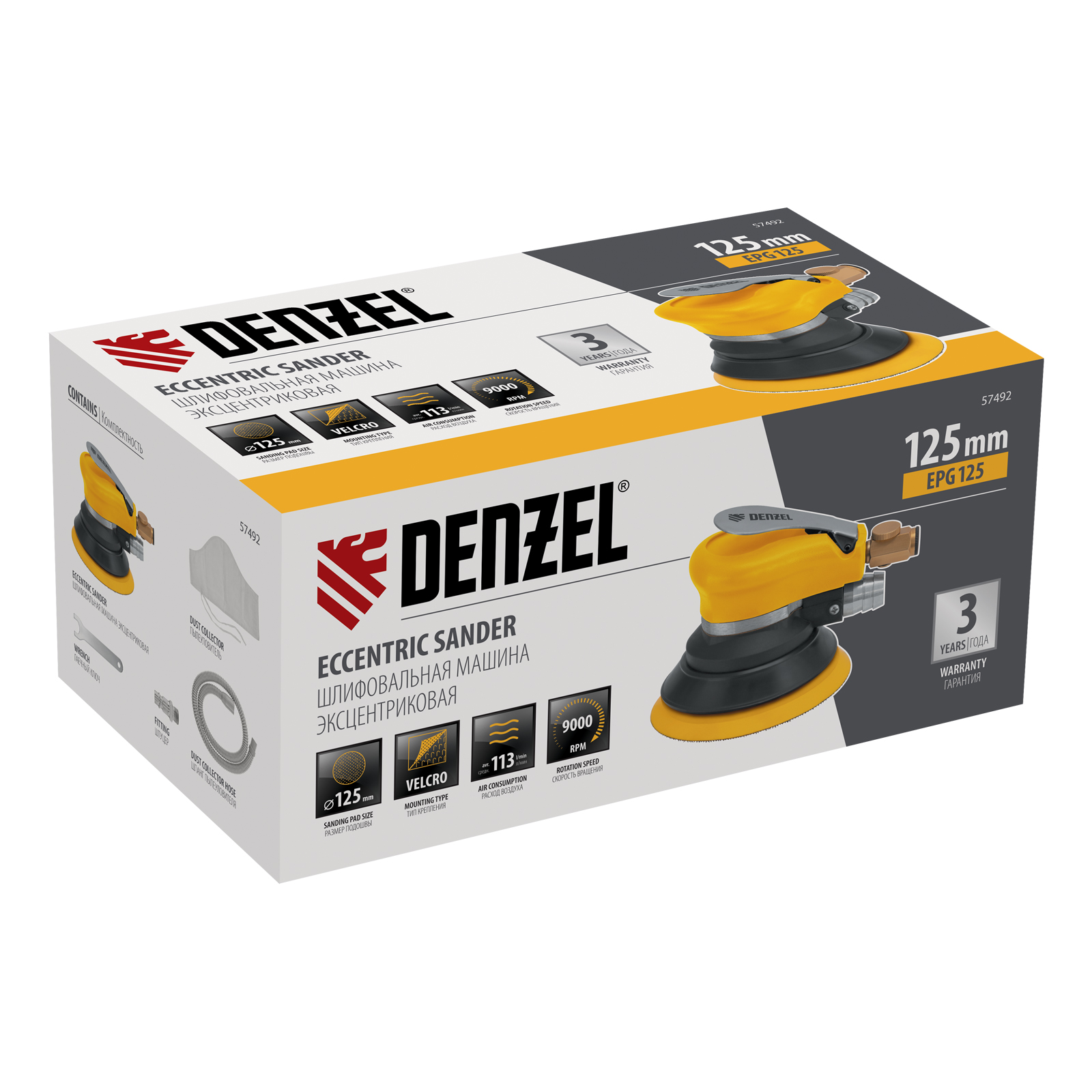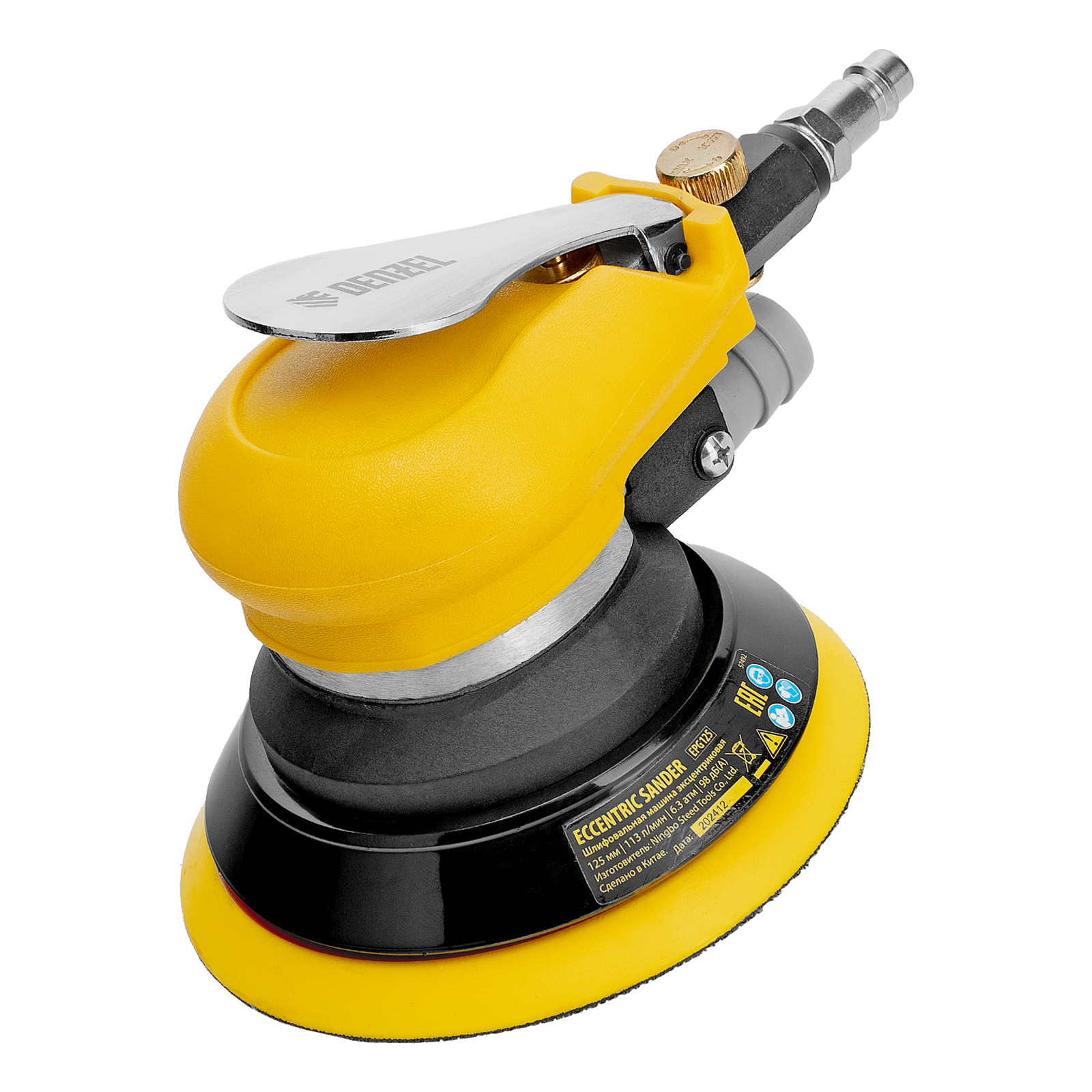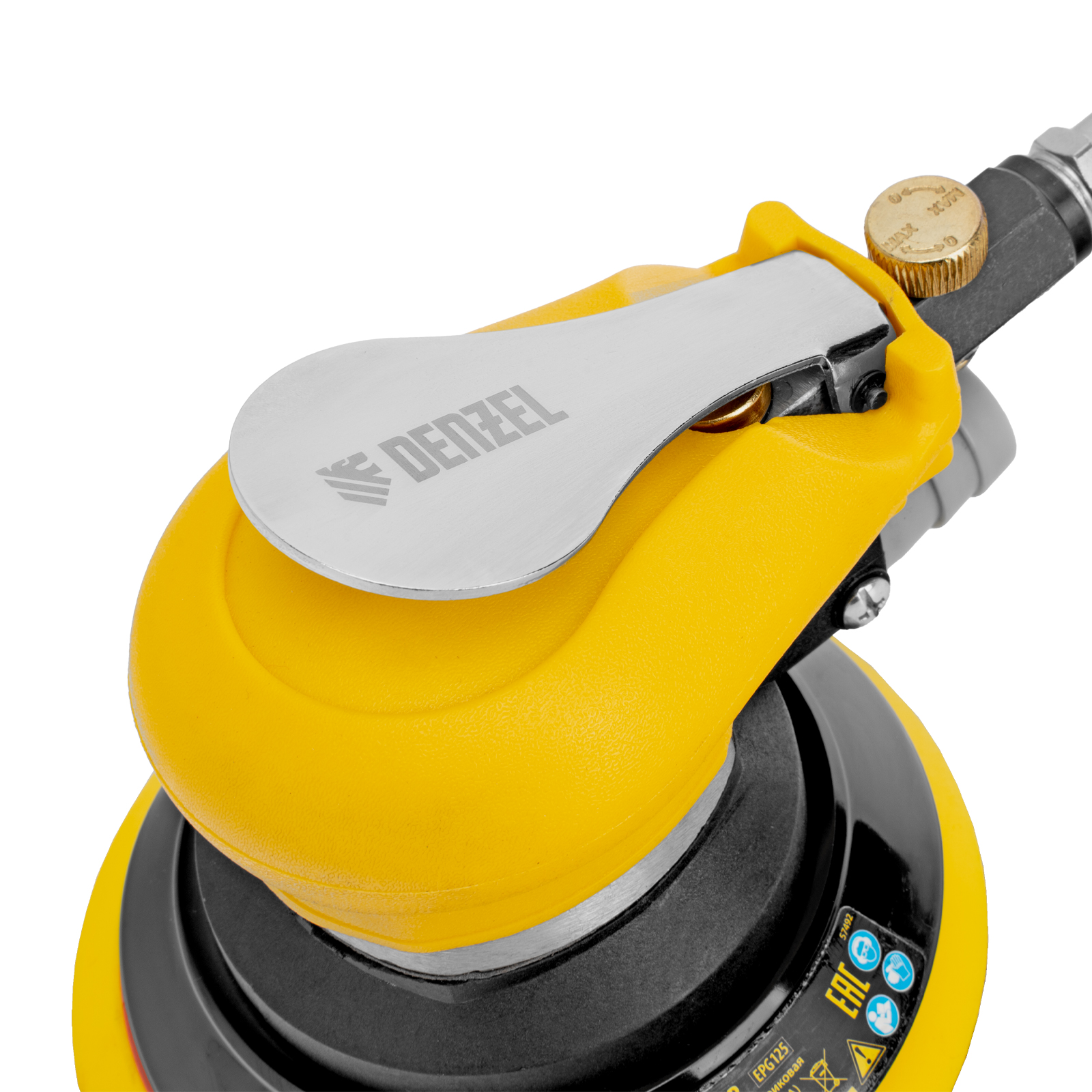 Эксцентриковая шлифовальная машина Denzel EPG125 57492 с амплитудой колебаний 5 мм обеспечивает скорость вращения до 9000 об/мин при среднем расходе воздуха 113 л/мин и давлении 6,3 бар, что делает ее идеальным инструментом для шлифовки и обработки различных материалов. Диаметр подошвы составляет 125 мм, поэтому инструмент оптимален для выполнения работ в труднодоступных местах, а также для детальной обработки небольших поверхностей, что особенно важно при подготовке к покраске и отделке.