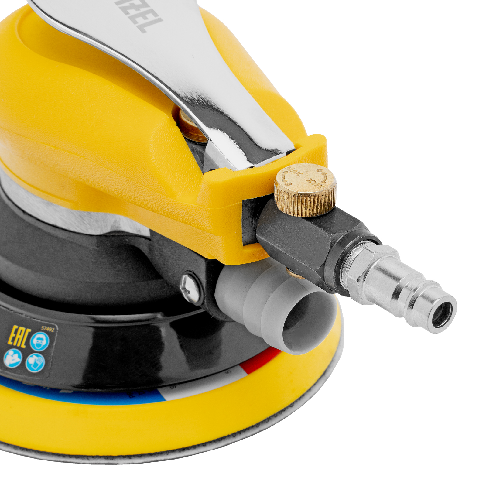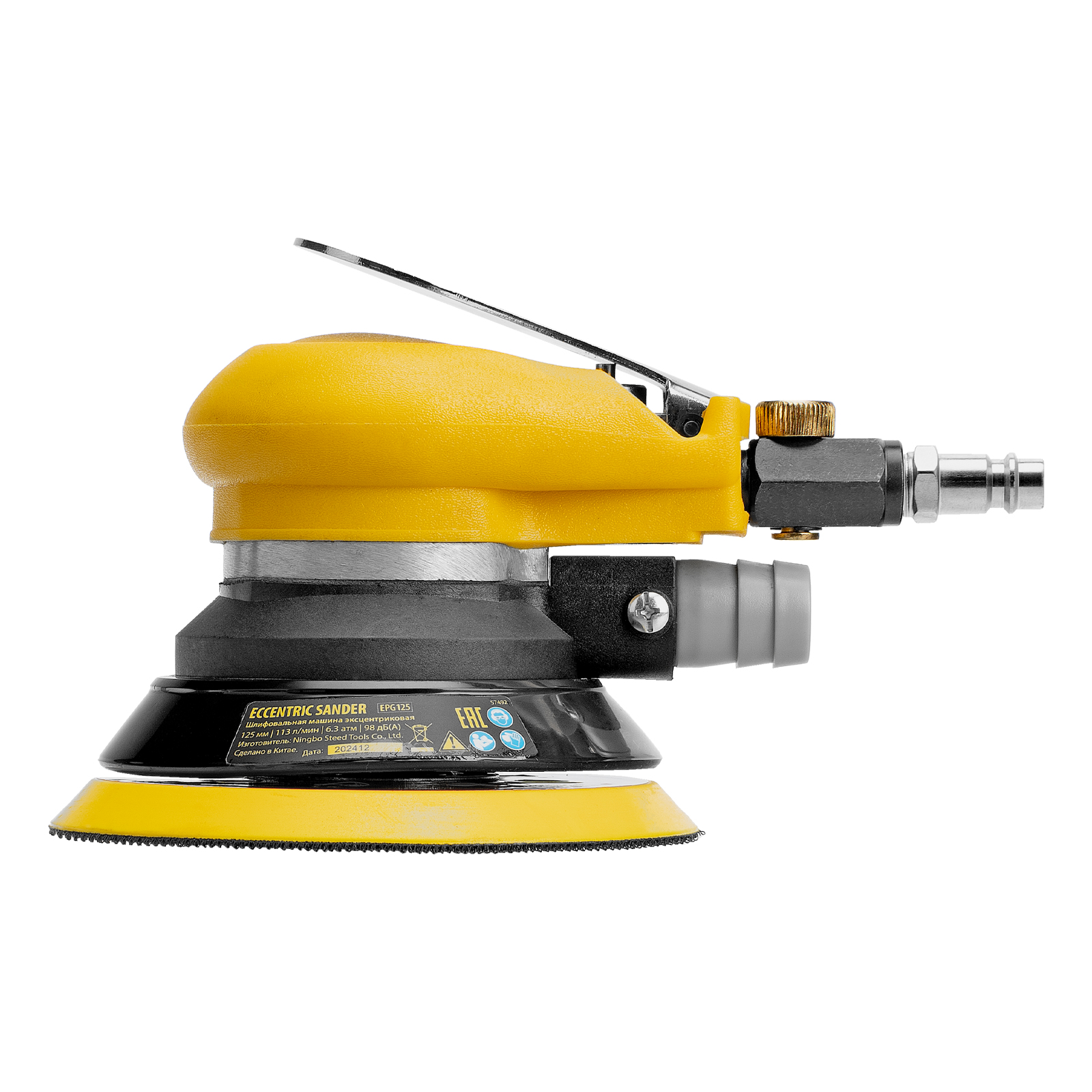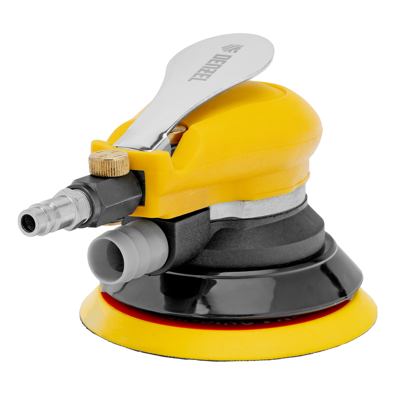 Эксцентриковая шлифовальная машина Denzel EPG125 57492 с амплитудой колебаний 5 мм обеспечивает скорость вращения до 9000 об/мин при среднем расходе воздуха 113 л/мин и давлении 6,3 бар, что делает ее идеальным инструментом для шлифовки и обработки различных материалов. Диаметр подошвы составляет 125 мм, поэтому инструмент оптимален для выполнения работ в труднодоступных местах, а также для детальной обработки небольших поверхностей, что особенно важно при подготовке к покраске и отделке.