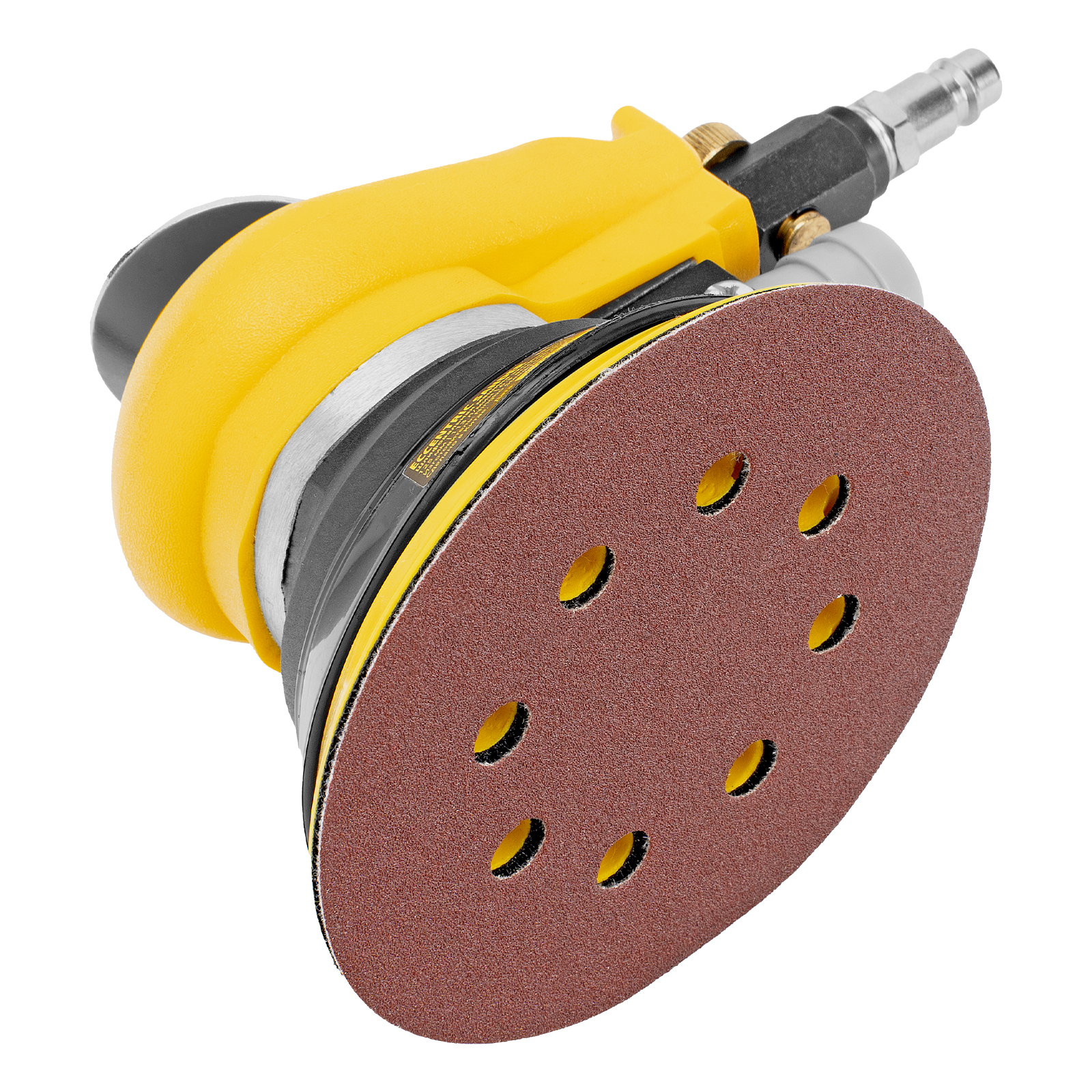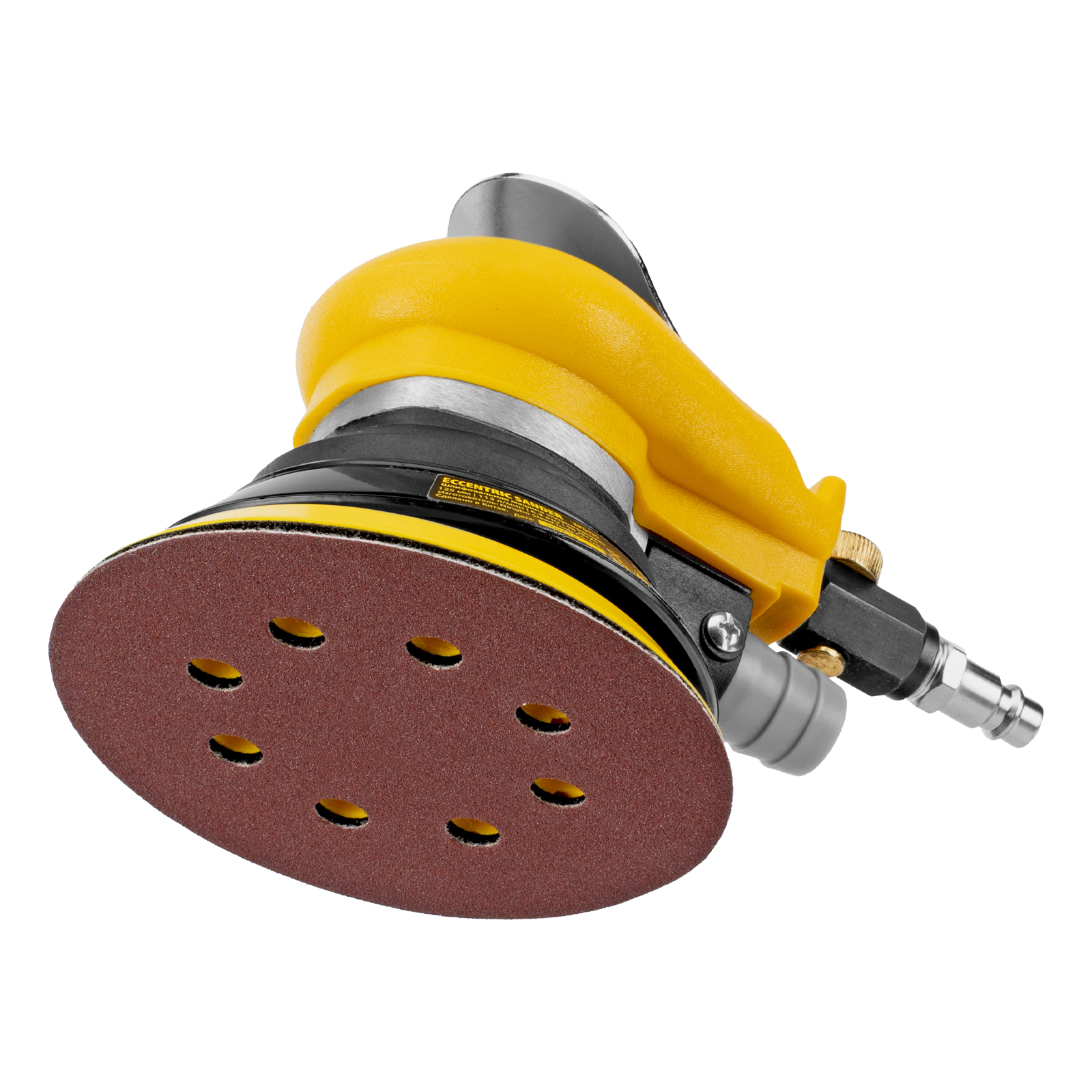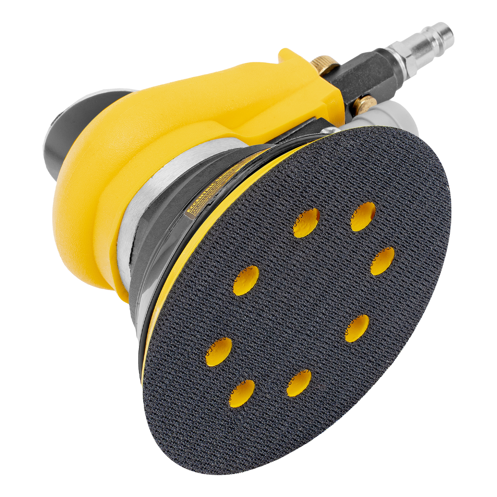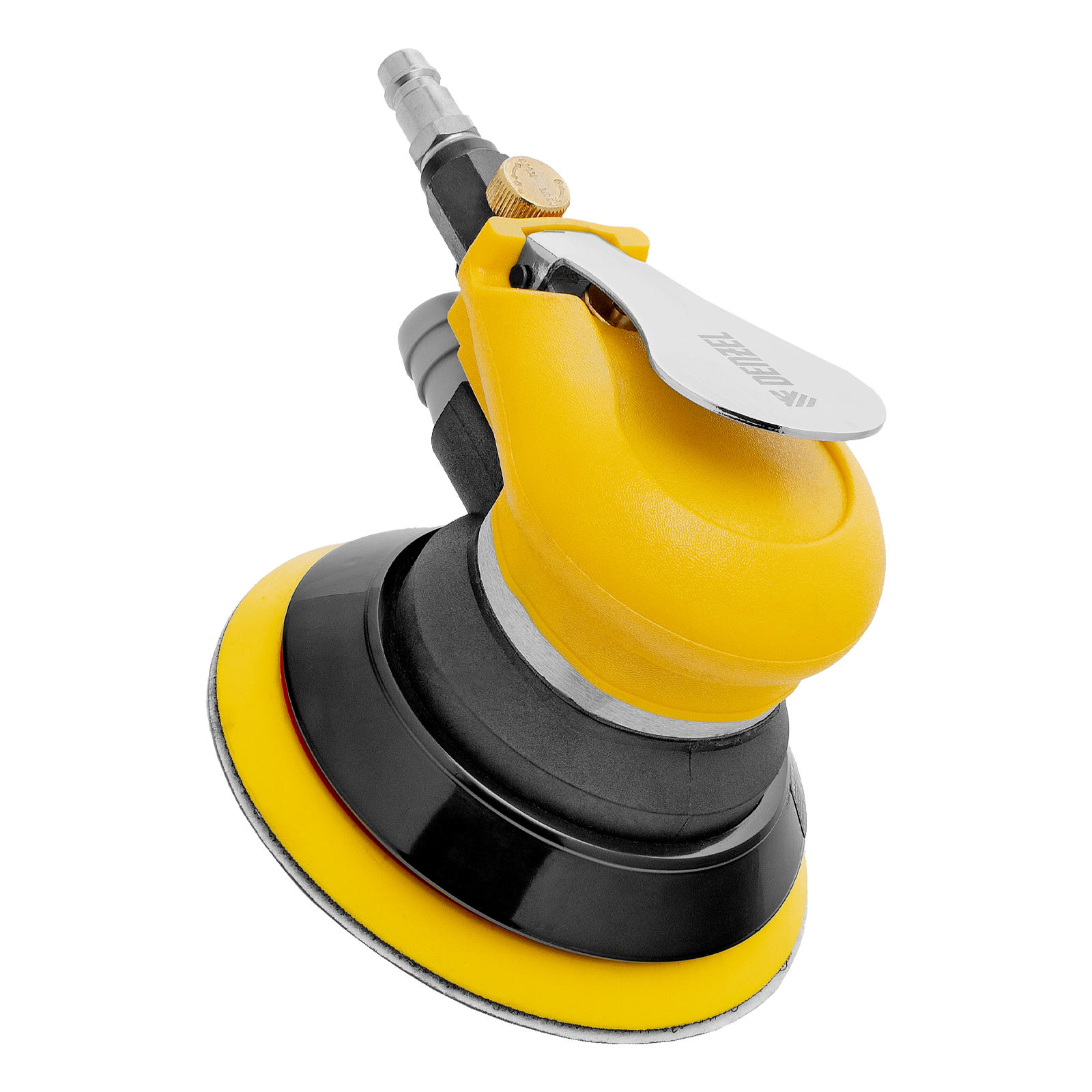 Эксцентриковая шлифмашина позволяет легко выровнять поверхность древесины, металла или пластика. Во время эксплуатации важно не забывать о добавлении специального масла ISO 46, которое можно наносить непосредственно на входной штуцер или использовать с блоком подготовки воздуха Denzel 57469, оснащенным лубрикатором для автоматического расхода масла.