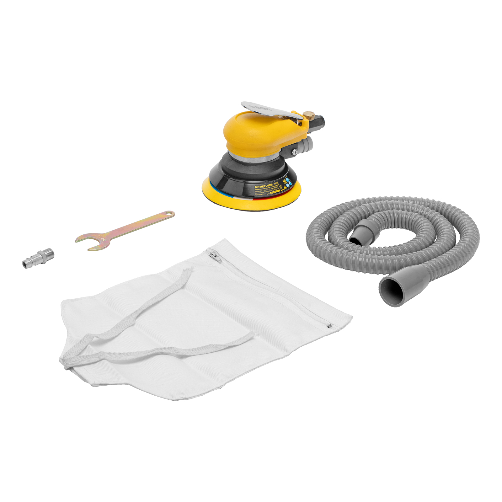 - Эффективная система пылеудаления — в комплект поставки входит пылесборный мешок со шлангом для удаления отходов шлифовки, поэтому инструмент можно использовать в закрытых помещениях.