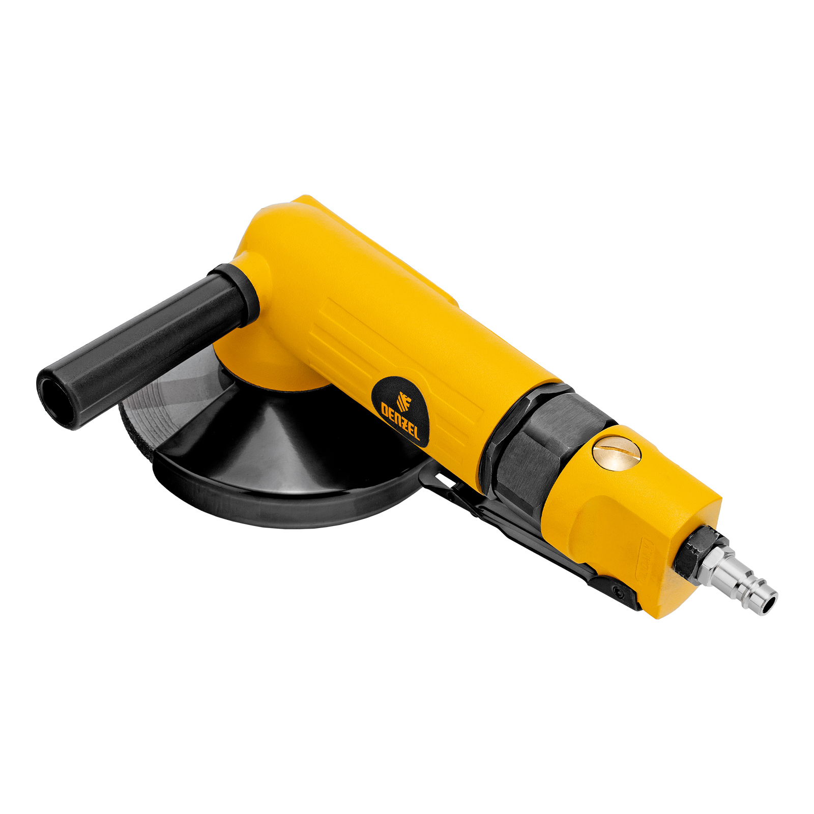 Пневматическая углошлифовальная машина Denzel AG125 57477 используется с дисками до 125 мм для шлифования, зачистки, резки деревянных, металлических, пластмассовых и других материалов. Это универсальный инструмент, востребованный в строительстве, ремонте, незаменимый для домашних мастерских и решения бытовых задач. Частота вращения диска 11000 об/мин при среднем расходе воздуха 186 л/мин обеспечивает высокую производительность и скорость работы. Оптимальная скорость редуктора позволяет быстро и качественно обрабатывать поверхности.,УШМ предназначена для работы при давлении 6,3 бар, расход воздуха в среднем не превышает 200 л/мин. Во время работы не забывайте использовать специальное масло ISO 46, которое можно добавлять как напрямую в инструмент, так и с помощью блока подготовки воздуха Denzel 57469, включающего в себя лубрикатор для автоматической подачи масла.