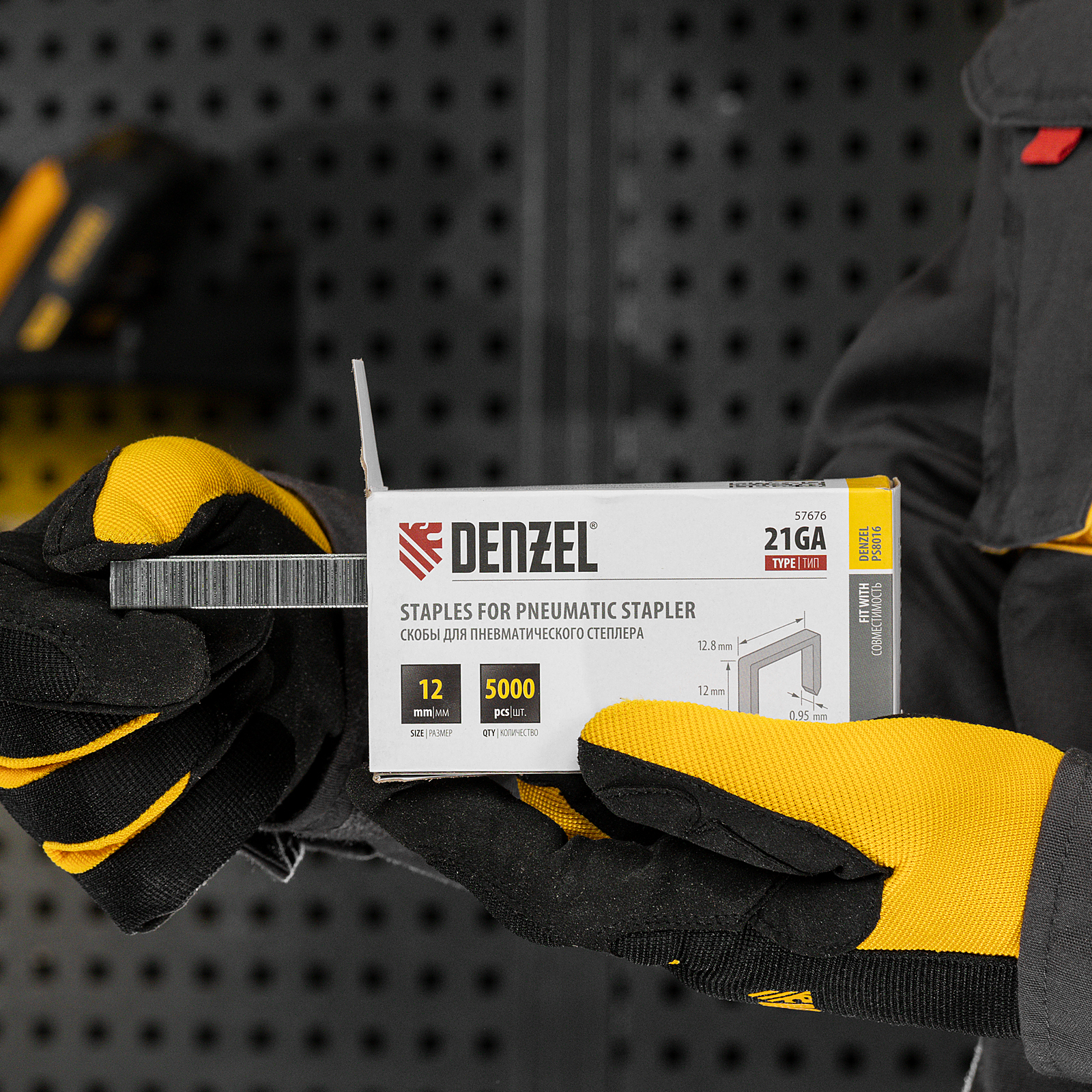 Скобы 21GA Denzel 57676 шириной 12,8 мм, 5000 шт. в упаковке, предназначены для пневматического степлера, совместимого с крепежом размера 12 х 0,95 х 0,6 мм. Используются для крепления листовых материалов к деревянному основанию, подходят для обивки мебели, укладки напольного покрытия, фиксации утеплителя.