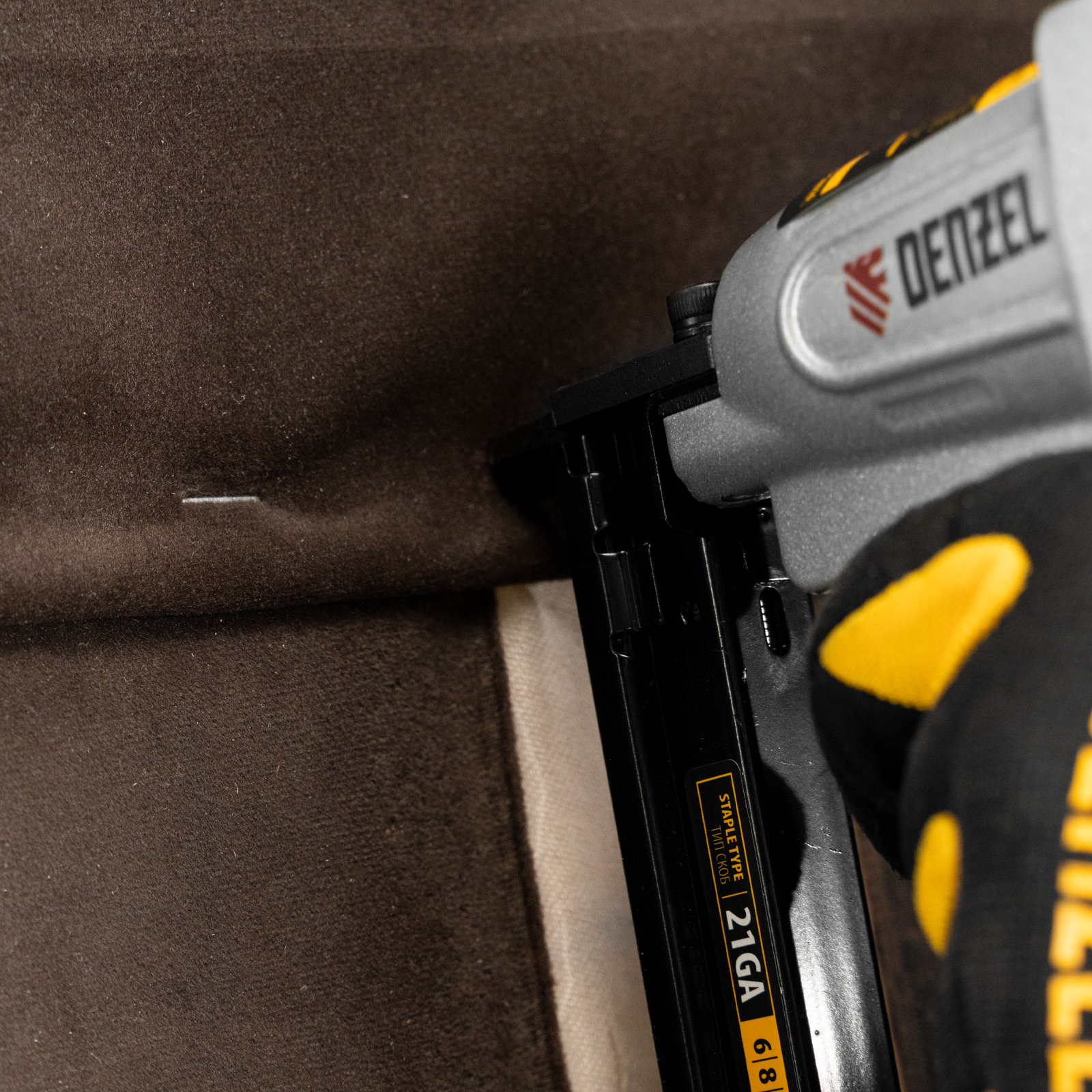 Скобы 21GA Denzel 57678 шириной 12,8 мм, 5000 шт. в упаковке, предназначены для пневматического степлера, совместимого с крепежом размера 14 х 0,95 х 0,6 мм. Используются для крепления листовых материалов к деревянному основанию, подходят для обивки мебели, укладки напольного покрытия, фиксации утеплителя.