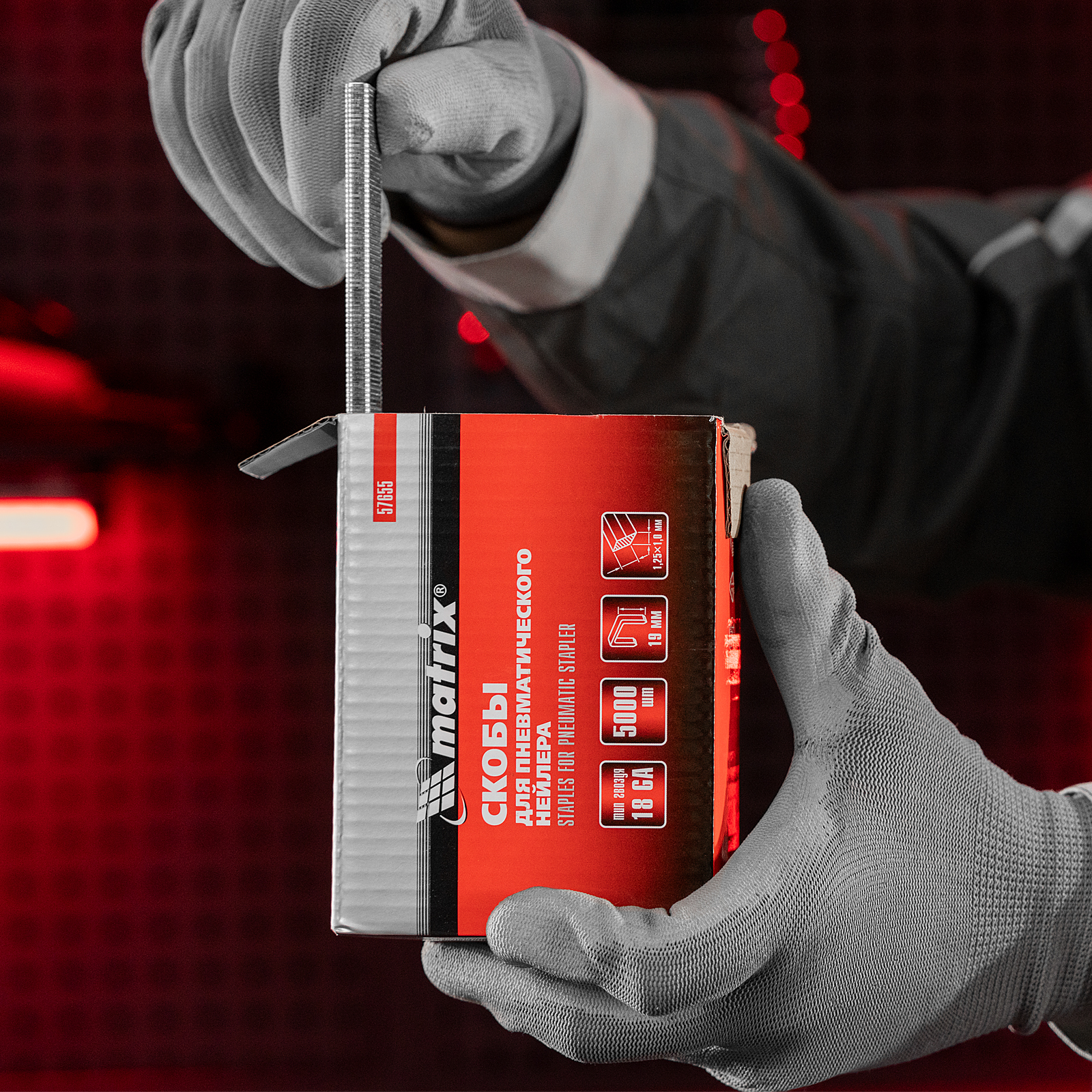 Скобы Matrix 57655 типа 18GA, 5000 шт. в упаковке, — крепежные элементы сечением 1,25 х 1,0 мм, длиной 19 и шириной 5,7 мм, предназначенные для установки в строительный пневматический степлер. Применяются для сборки деревянных каркасов, ремонта кровли, монтажа окон и дверей, фиксации утеплителей.