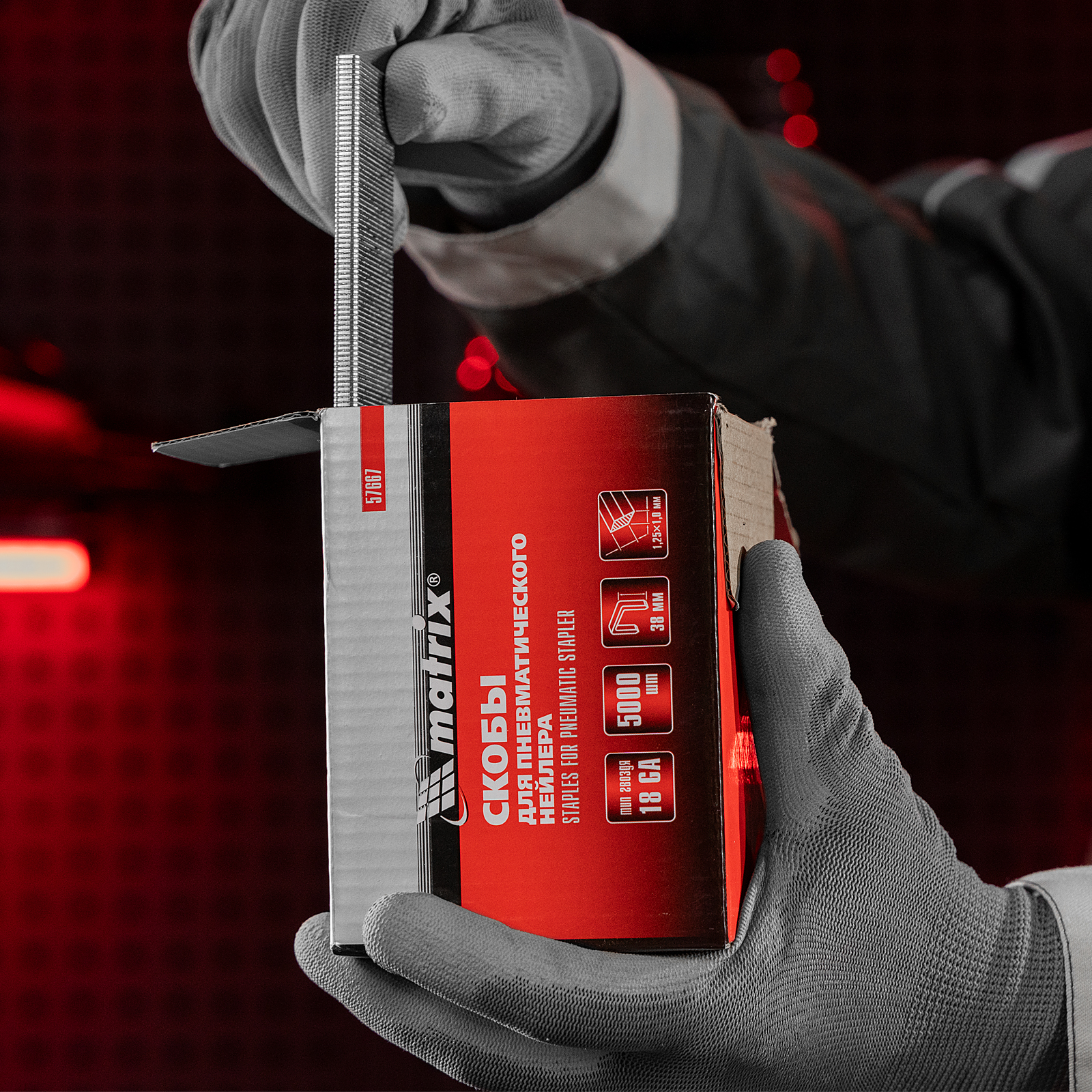 Скобы Matrix 57667 типа 18GA, 5000 шт. в упаковке, длиной 38 мм, шириной 5,7 мм и сечением 1,25 х 1,0 мм, предназначены для установки в скобоприемник пневматического степлера. Используются для проведения ремонтных и строительных работ: крепления кровли, обшивки, монтажа бытовок и деревянных каркасов.