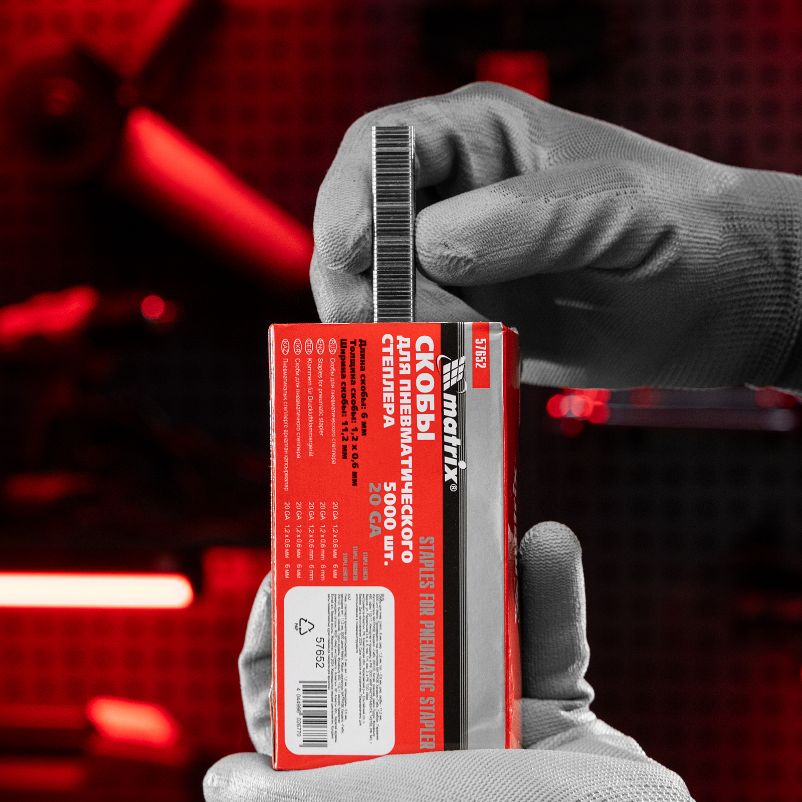 Скобы Matrix 57652 типа 20GA, 5000 шт. в упаковке, размером 6 х 1,2 х 0,6 мм и шириной 11,2 мм предназначены для пневматических степлеров. Используются для обивки мебели, скрепления гипсокартонных листов, установки теплиц, а также оформления помещений.