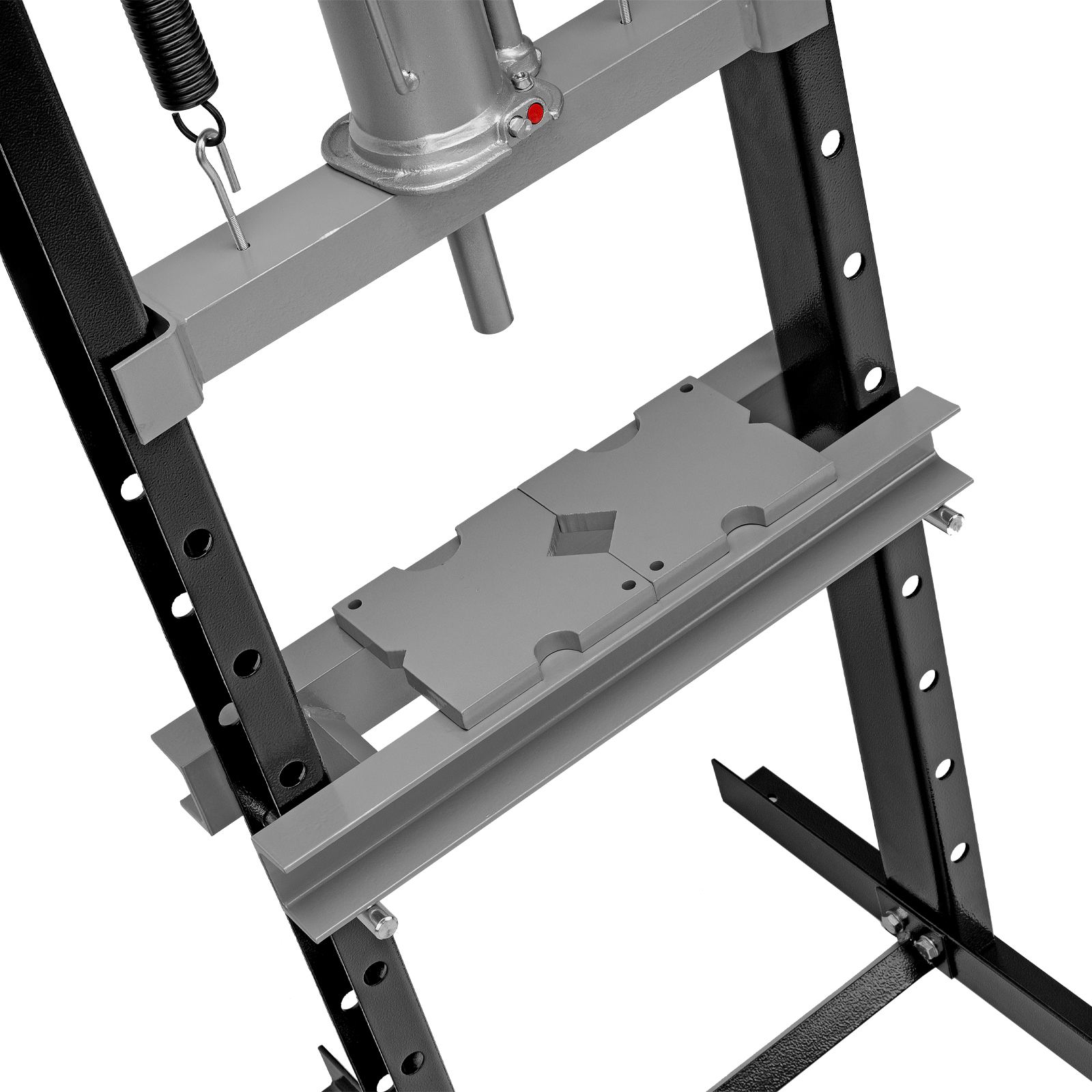 Гидравлический пресс Matrix 523105 размером 1360 х 500 х 510 мм, воздействующий на детали с усилием 12 т, поставляется комплектом из 2 частей. Используется для запрессовки и выпрессовки различных деталей, необходимых для ремонта автомобилей. Изготовлен из толстого прочного металла и имеет простую разборную конструкцию из верхней и нижней балок, стоек, станин и гидравлического бутылочного домкрата. Пресс подойдет для самостоятельного использования в гараже.