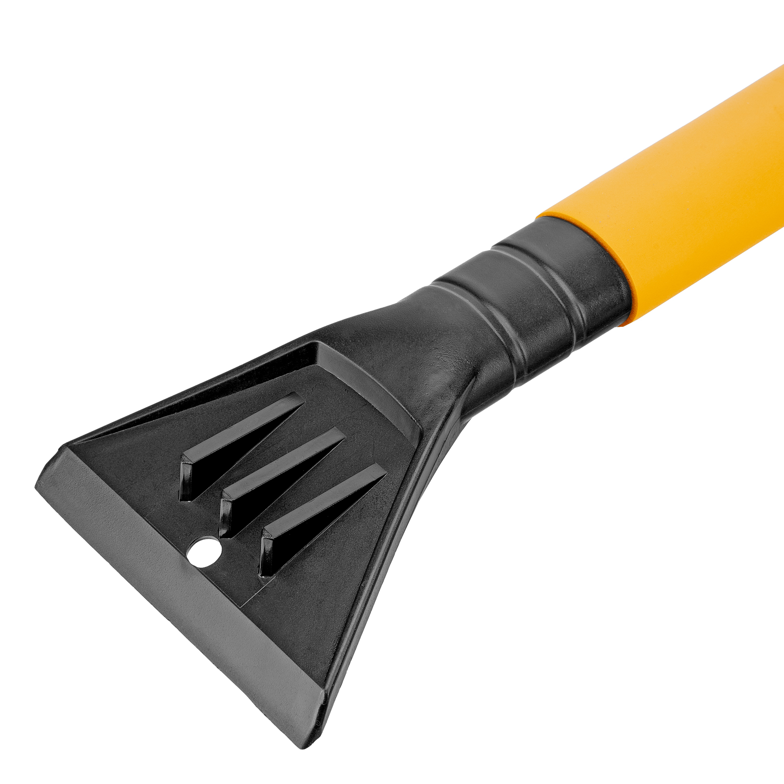 - Эффективность — скребок шириной 11 см имеет специальные зубья, поэтому успешно справляется с толстым слоем наледи.