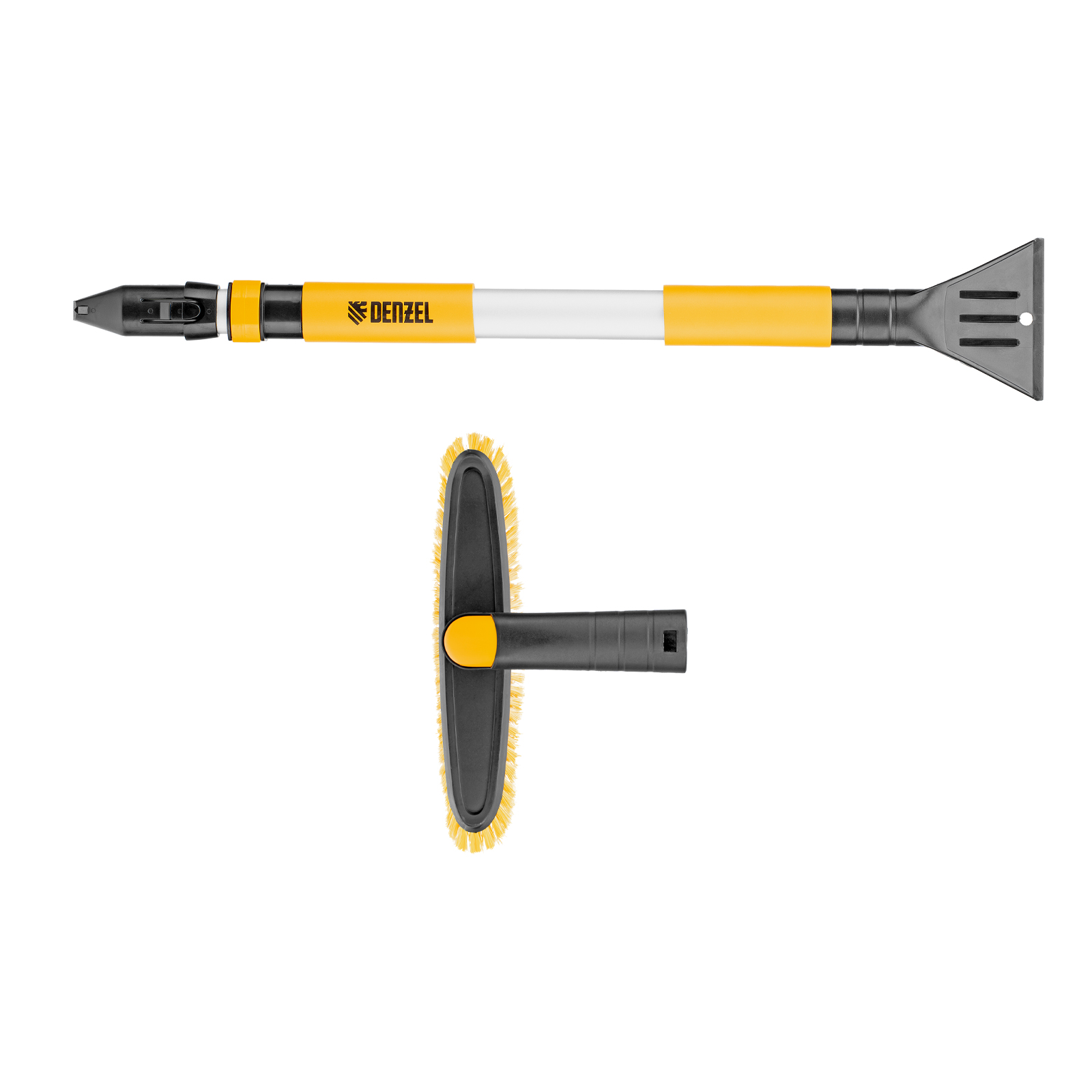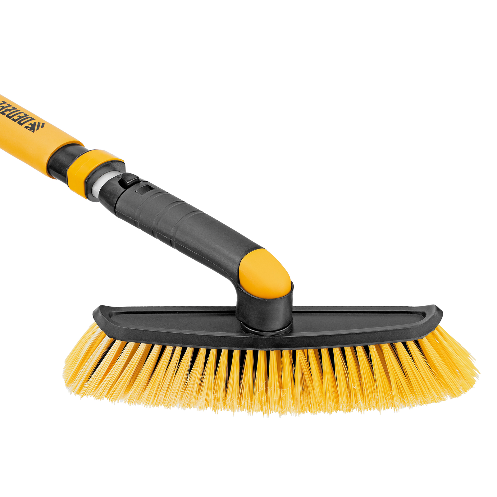 - Регулировка длины — рукоятка выдвигается и фиксируется на длине 75-112 см, за счет чего можно без труда очистить крышу транспортного средства.
