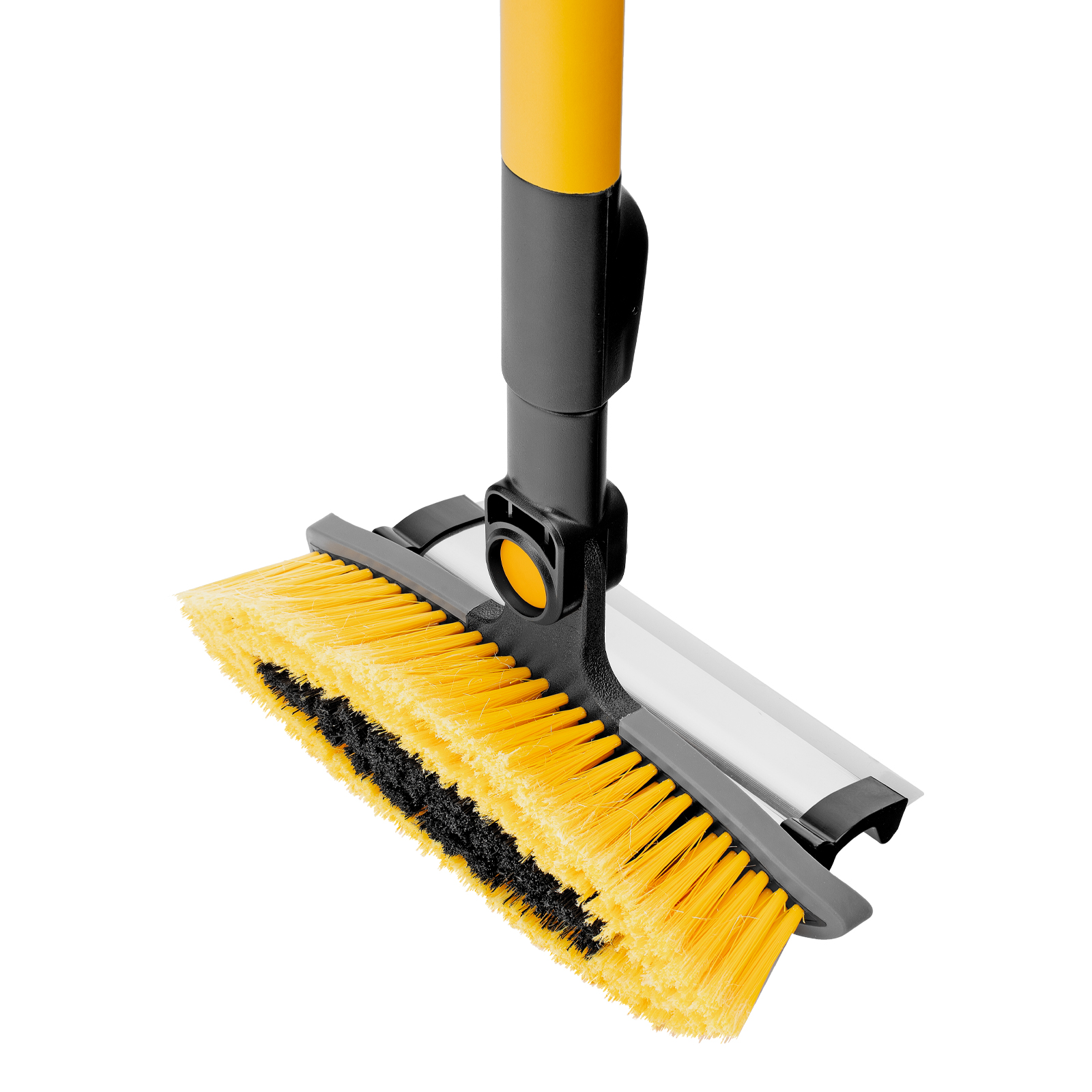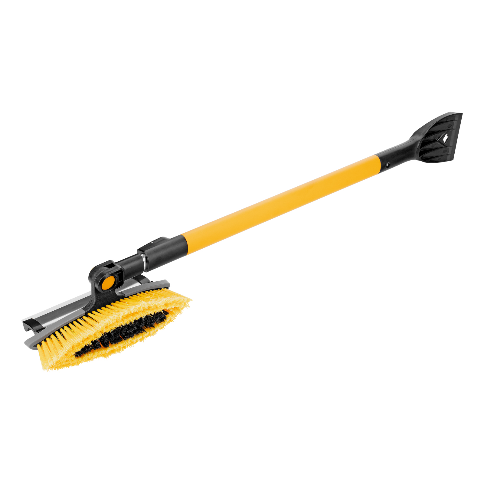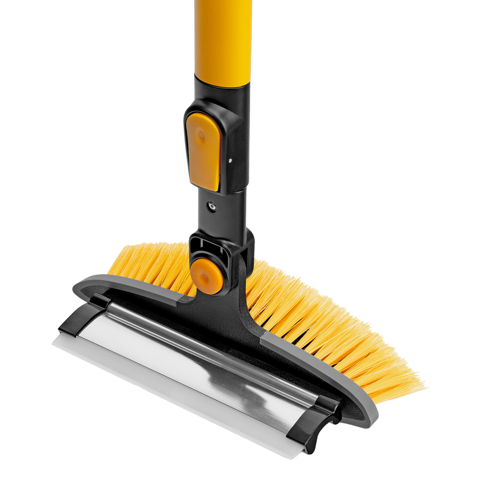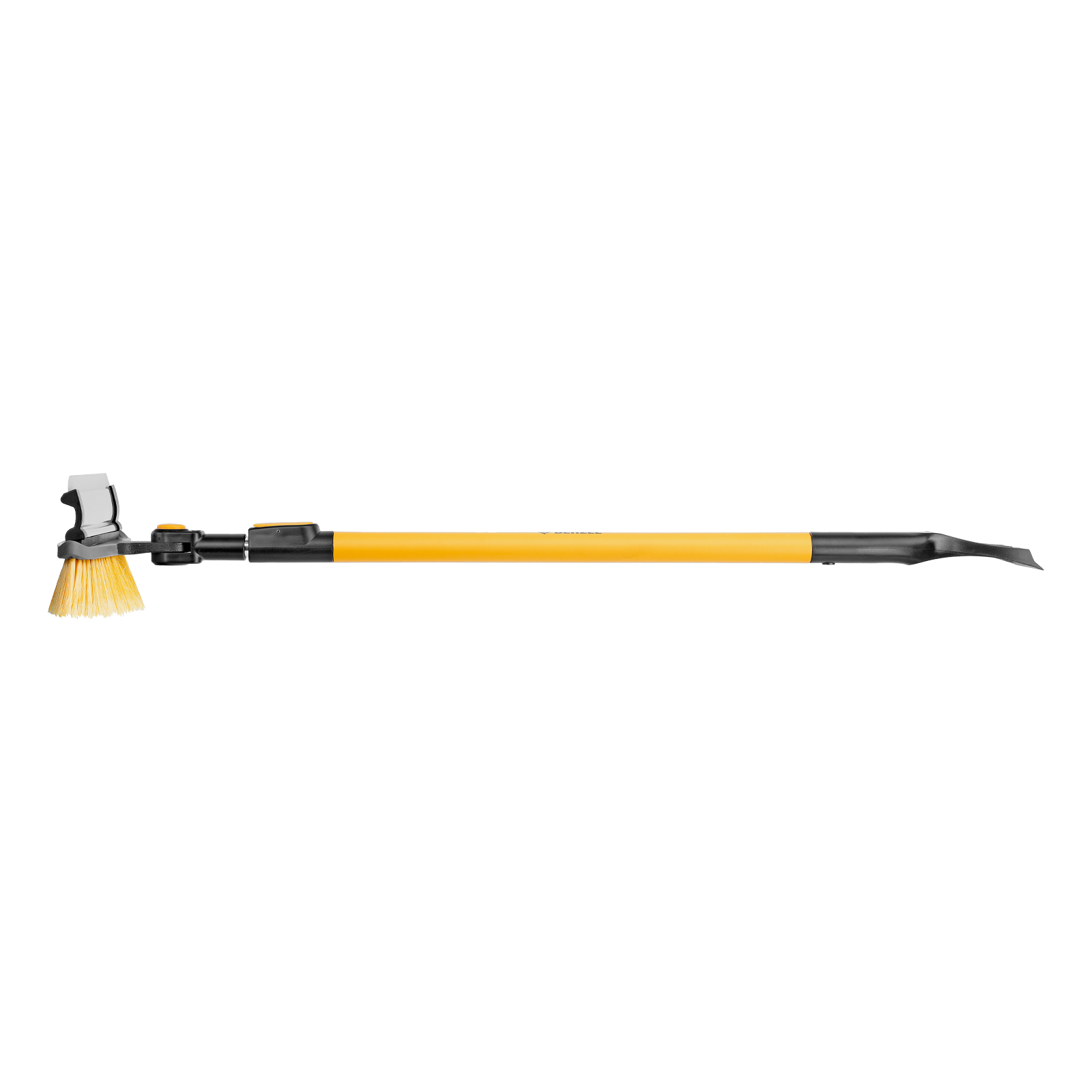 - Регулировка длины — рукоятка выдвигается и фиксируется на длине 95-132 см, за счет чего можно без труда очистить крышу транспортного средства.