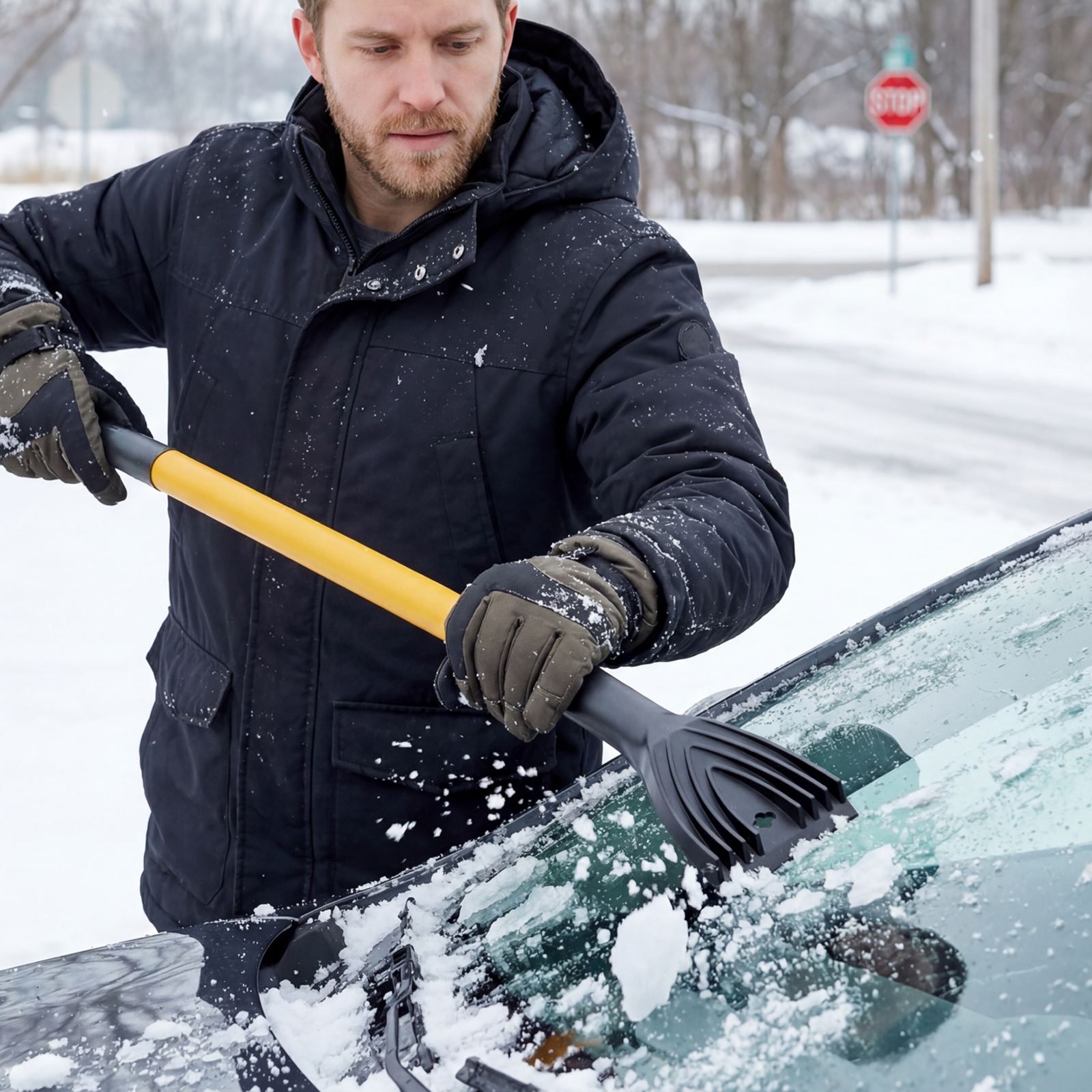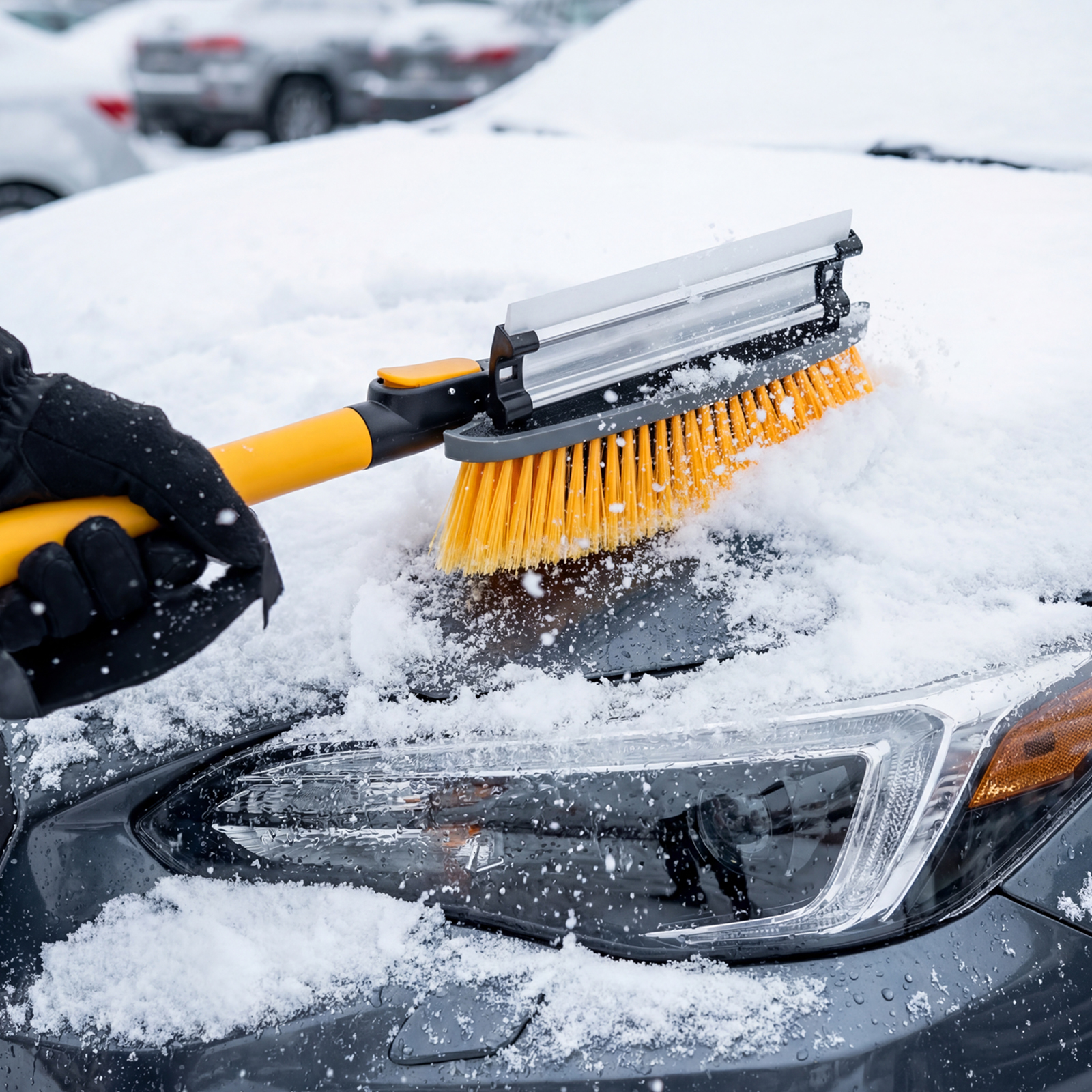 - Бережная очистка — особо мягкая распушенная щетина шириной 29 см не портит лакокрасочное покрытие автомобиля, также для защиты ЛКП автомобиля предусмотрен резиновый бампер.