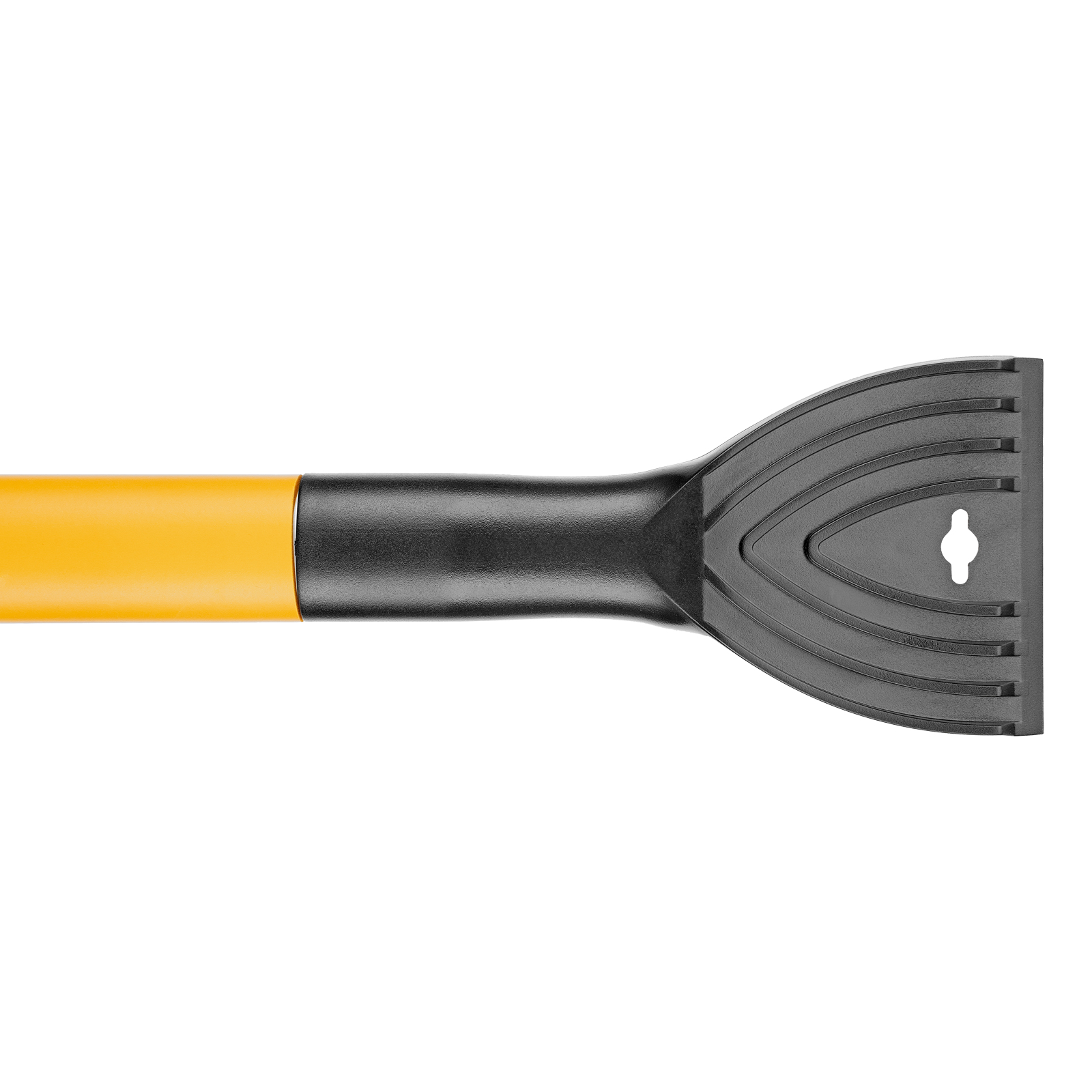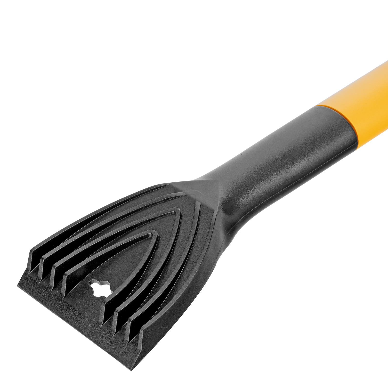 - Эффективность — скребок шириной 12 см имеет специальные зубья, поэтому успешно справляется с толстым слоем наледи.