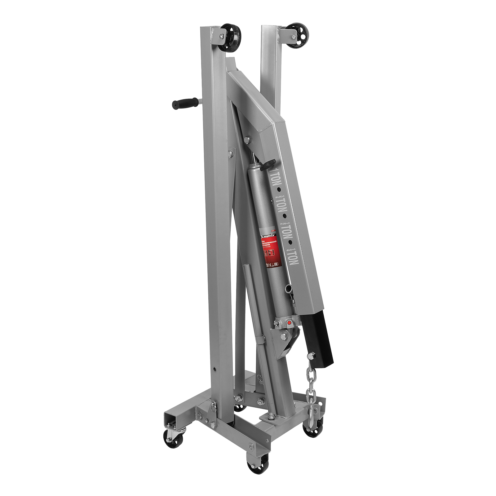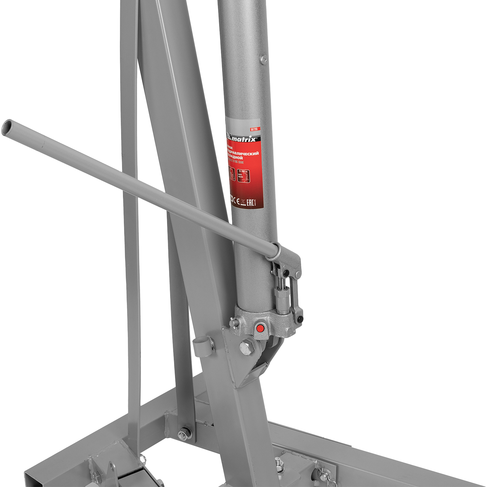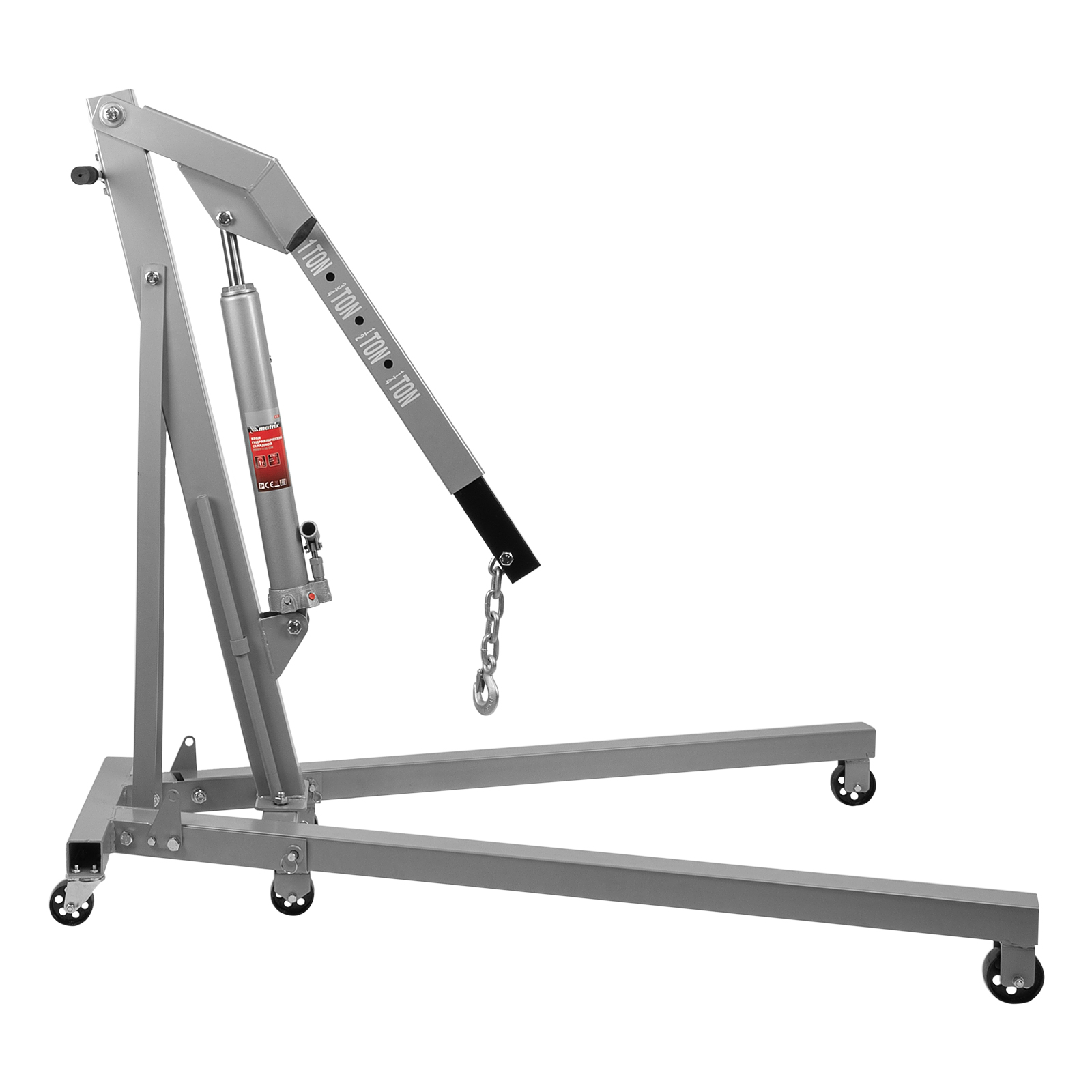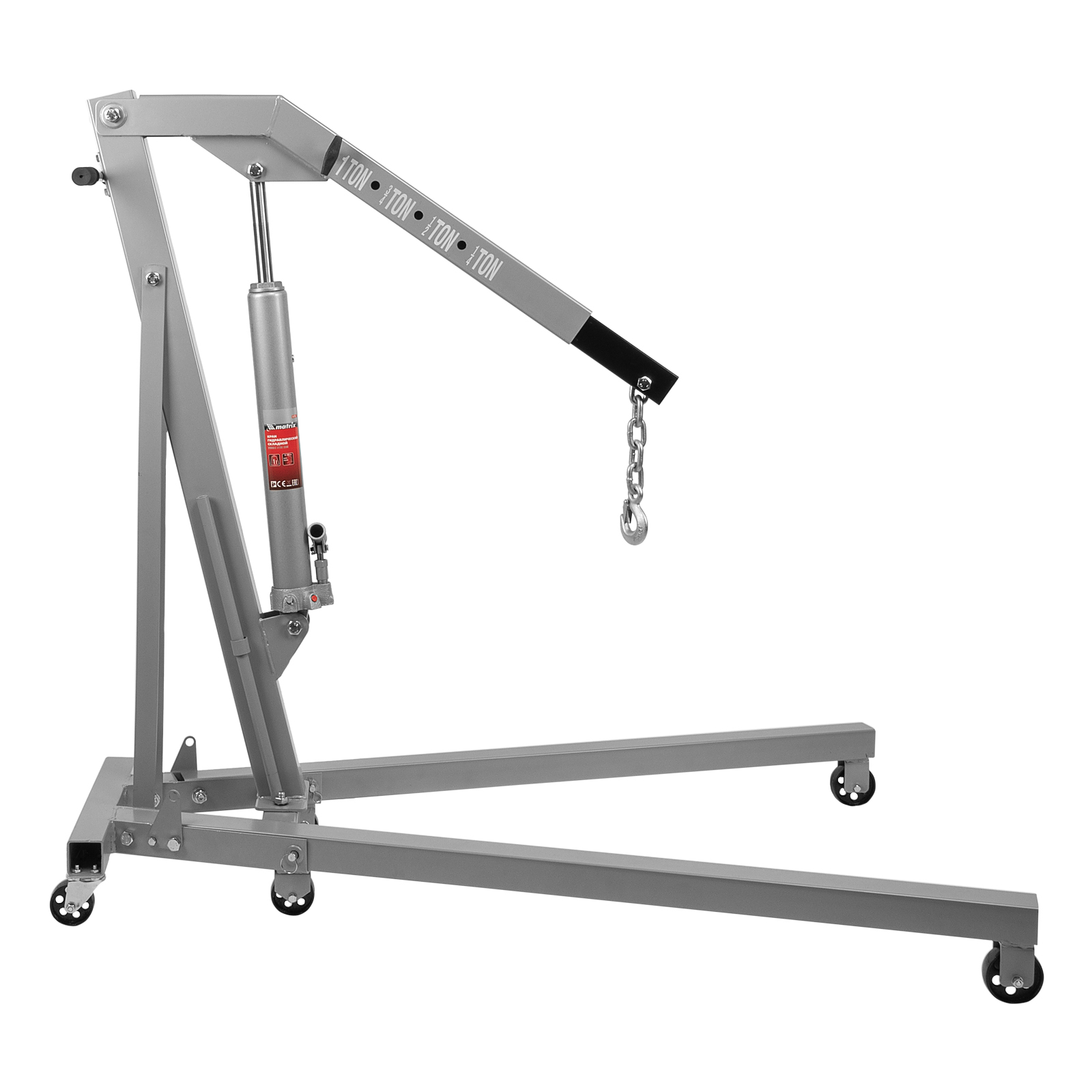 Складной гидравлический кран Matrix 567295 грузоподъемностью до 1 т, поставляющийся комплектом из 2 частей, — мобильное устройство для подъема на высоту с 25 до 2060 мм и перемещения тяжелых элементов автомобильного оборудования. Устройство изготовлено из стали и выдерживает повышенные нагрузки. Величина вылета стрелы регулируется в зависимости от массы груза. Кран совместим с траверсой Matrix 567275. Используется в автосервисах для демонтажа и монтажа автомобильных двигателей, будет полезен и в частном гараже.