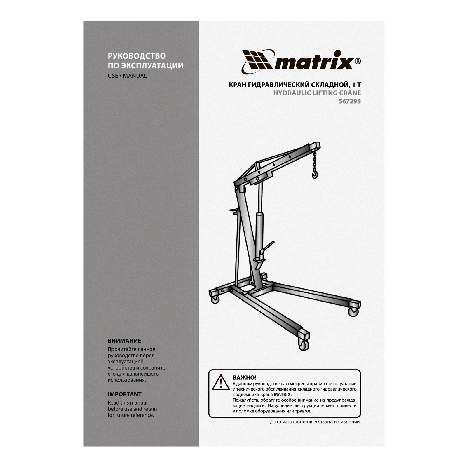 - Мобильность — кран оснащен 4 колесами и специальными рукоятками для удобного перемещения.