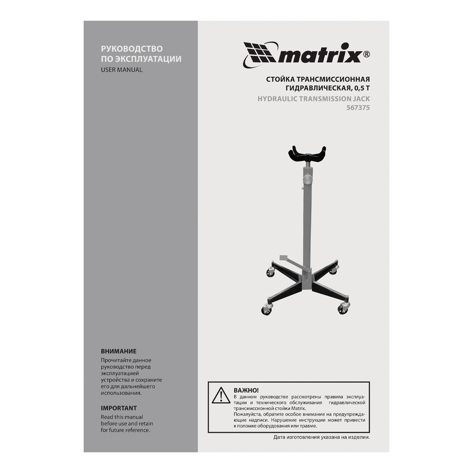 Трансмиссионная гидравлическая стойка Matrix 567375 предназначена для плавного подъема грузов массой до 0,5 т на высоту 1130-1945 мм. Пригодится профессиональным работникам СТО и автолюбителям при ремонте или монтаже/демонтаже элементов трансмиссии, для страховки и фиксации транспортного средства при использовании подъемников. Гидравлический привод позволяет плавно регулировать высоту подъема одной ногой и обеспечивает высокое качество работы
