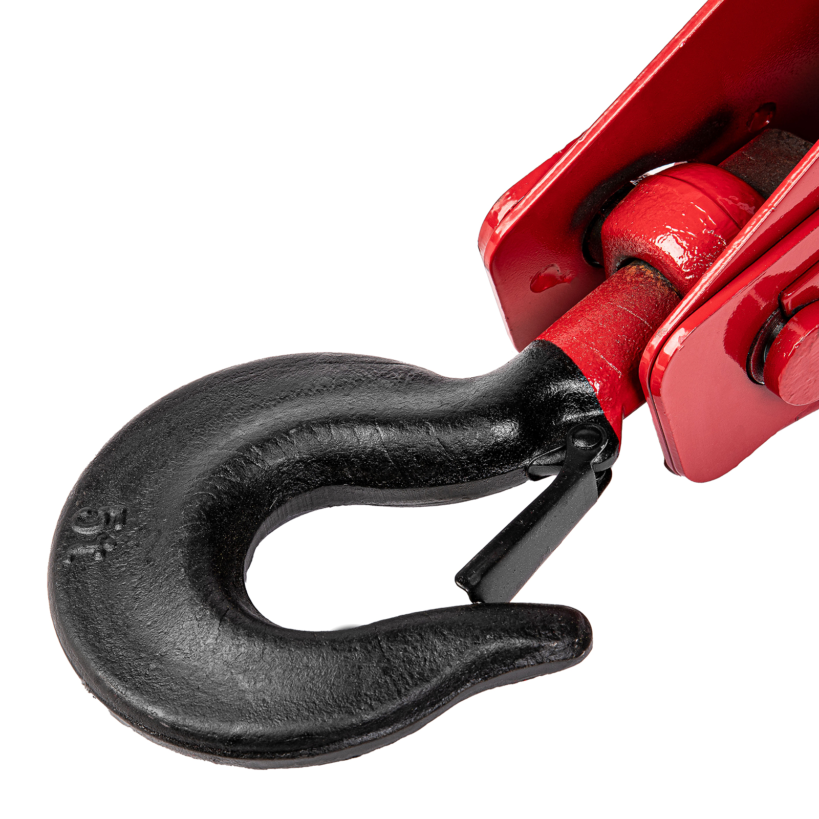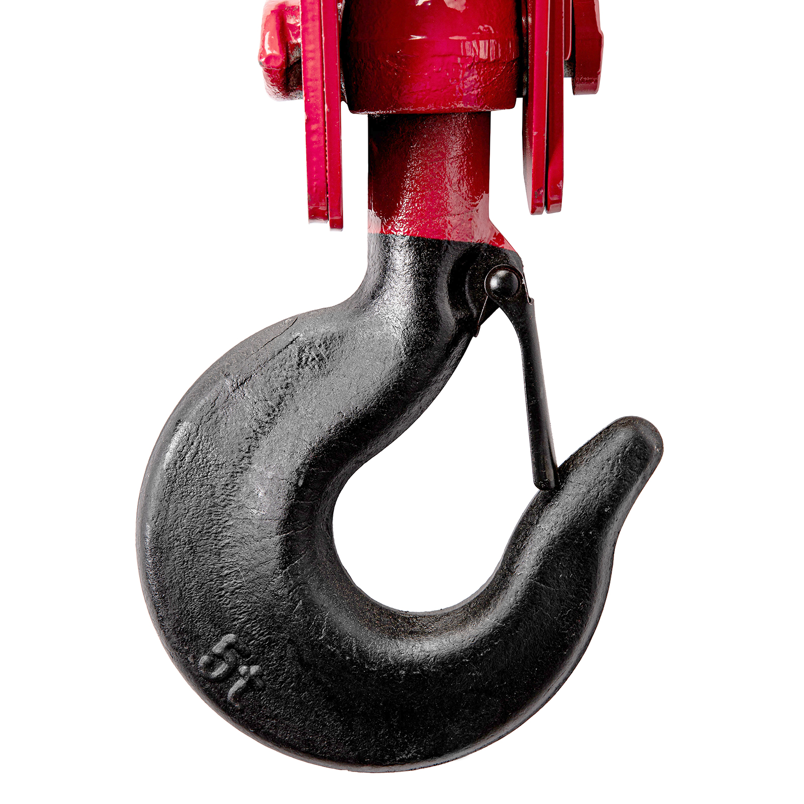 - Кованая предохранительная защелка на крюке обеспечивает безопасность работы.
