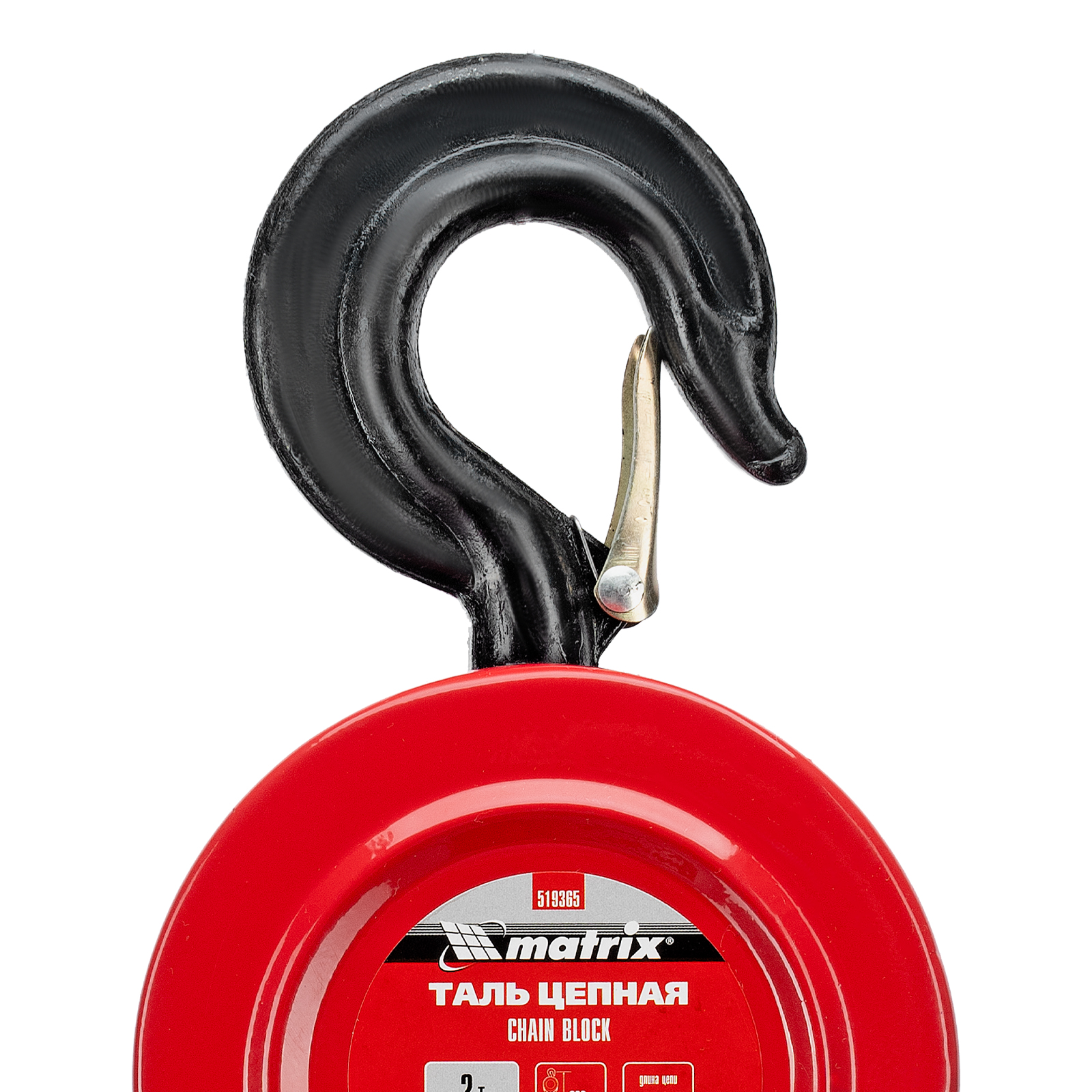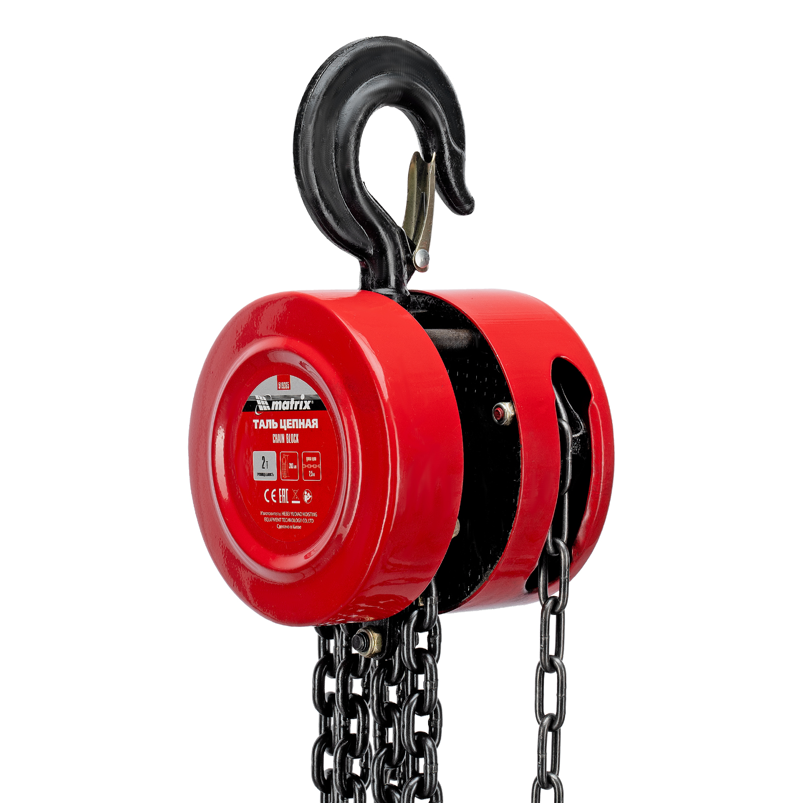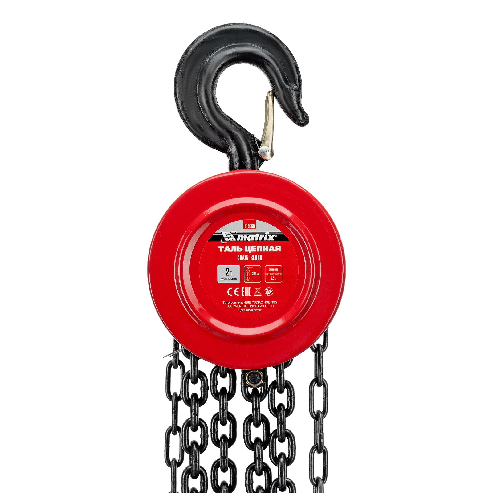 Цепная таль Matrix 519365 с расстоянием между крюками 380 мм позволяет поднимать грузы весом не более 2 т на высоту до 2,5 м. Простая конструкция облегчает использование. Механизм пригодится для проведения погрузочно-разгрузочных, ремонтных, монтажных работ.