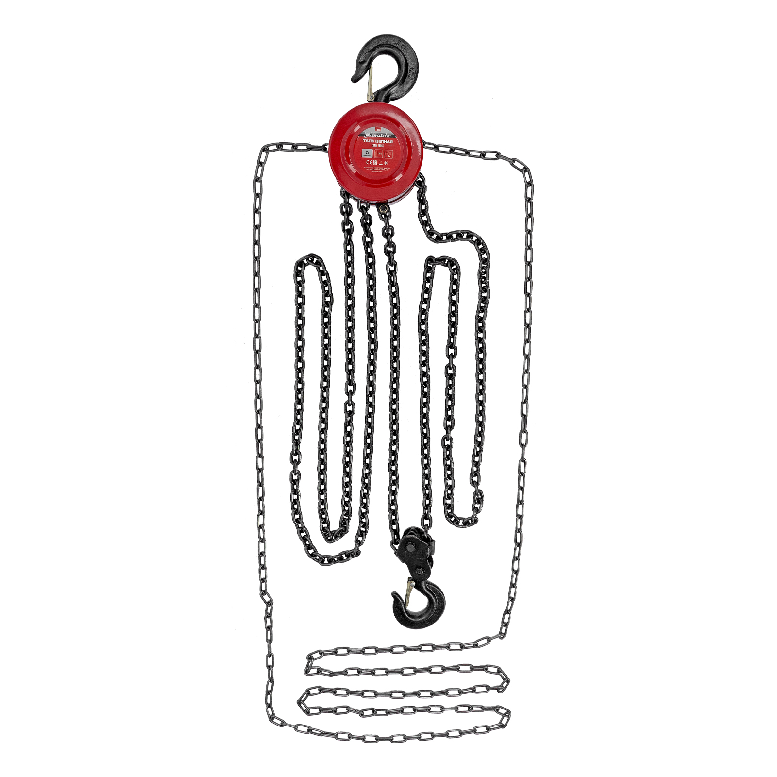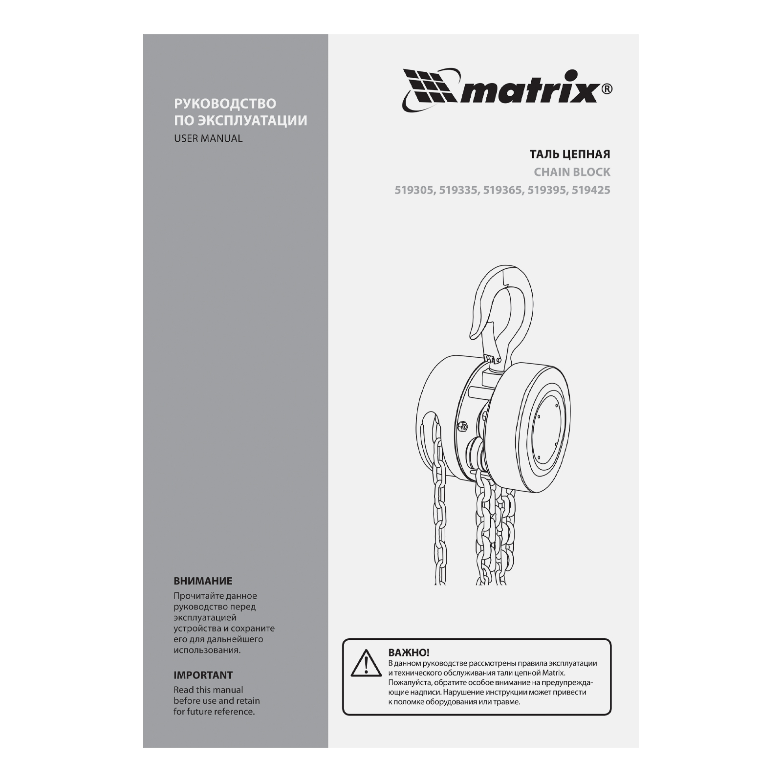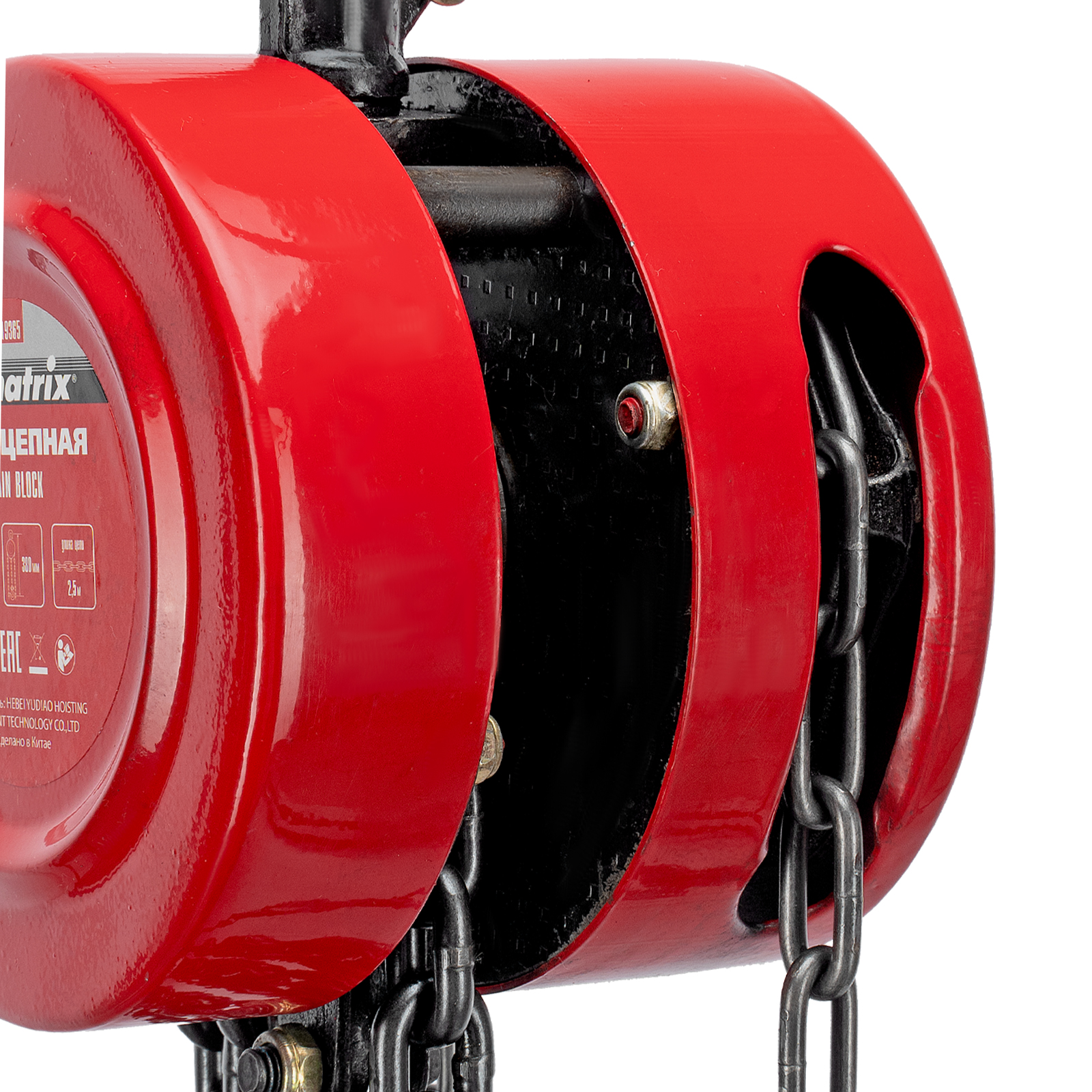 Цепная таль Matrix 519365 с расстоянием между крюками 380 мм позволяет поднимать грузы весом не более 2 т на высоту до 2,5 м. Простая конструкция облегчает использование. Механизм пригодится для проведения погрузочно-разгрузочных, ремонтных, монтажных работ.