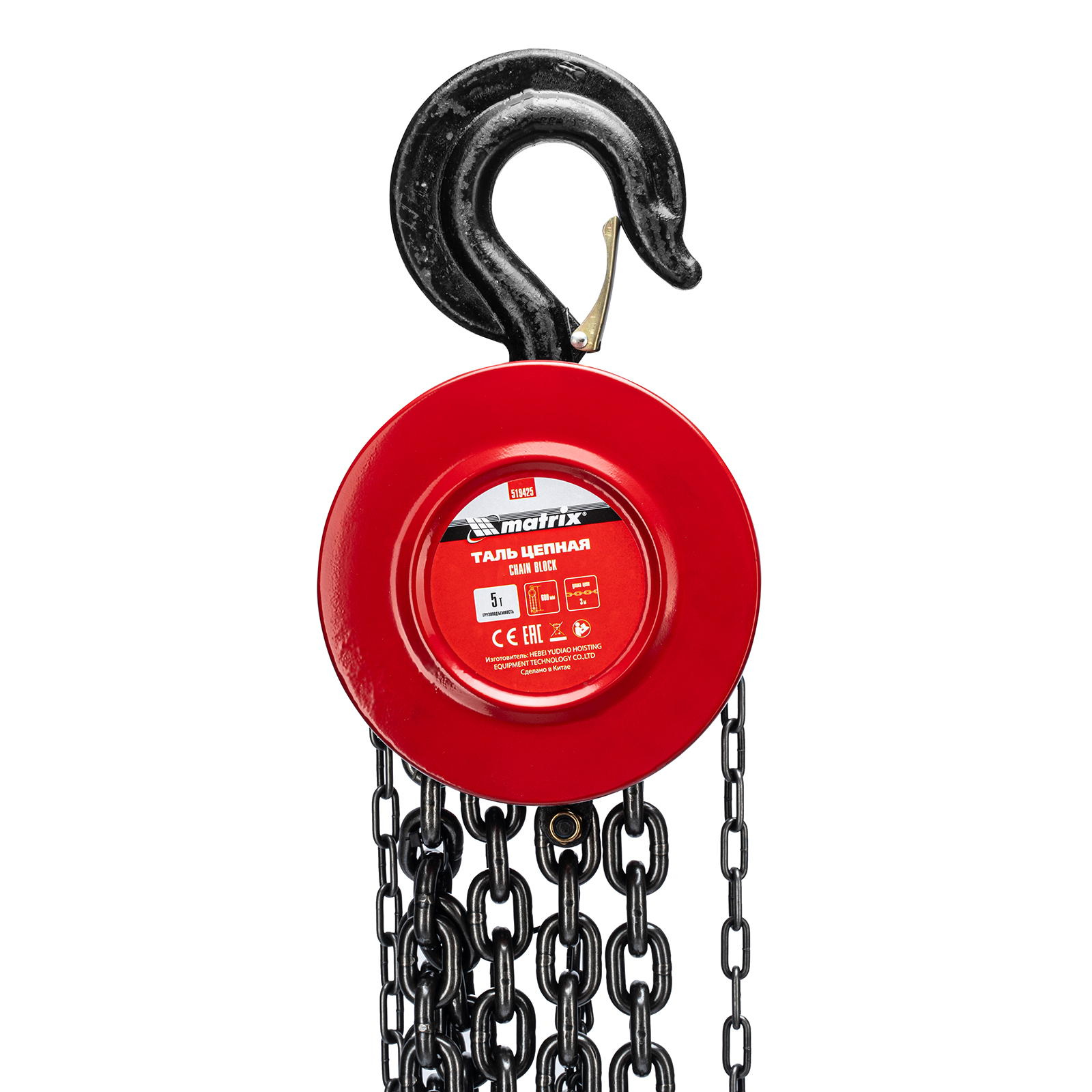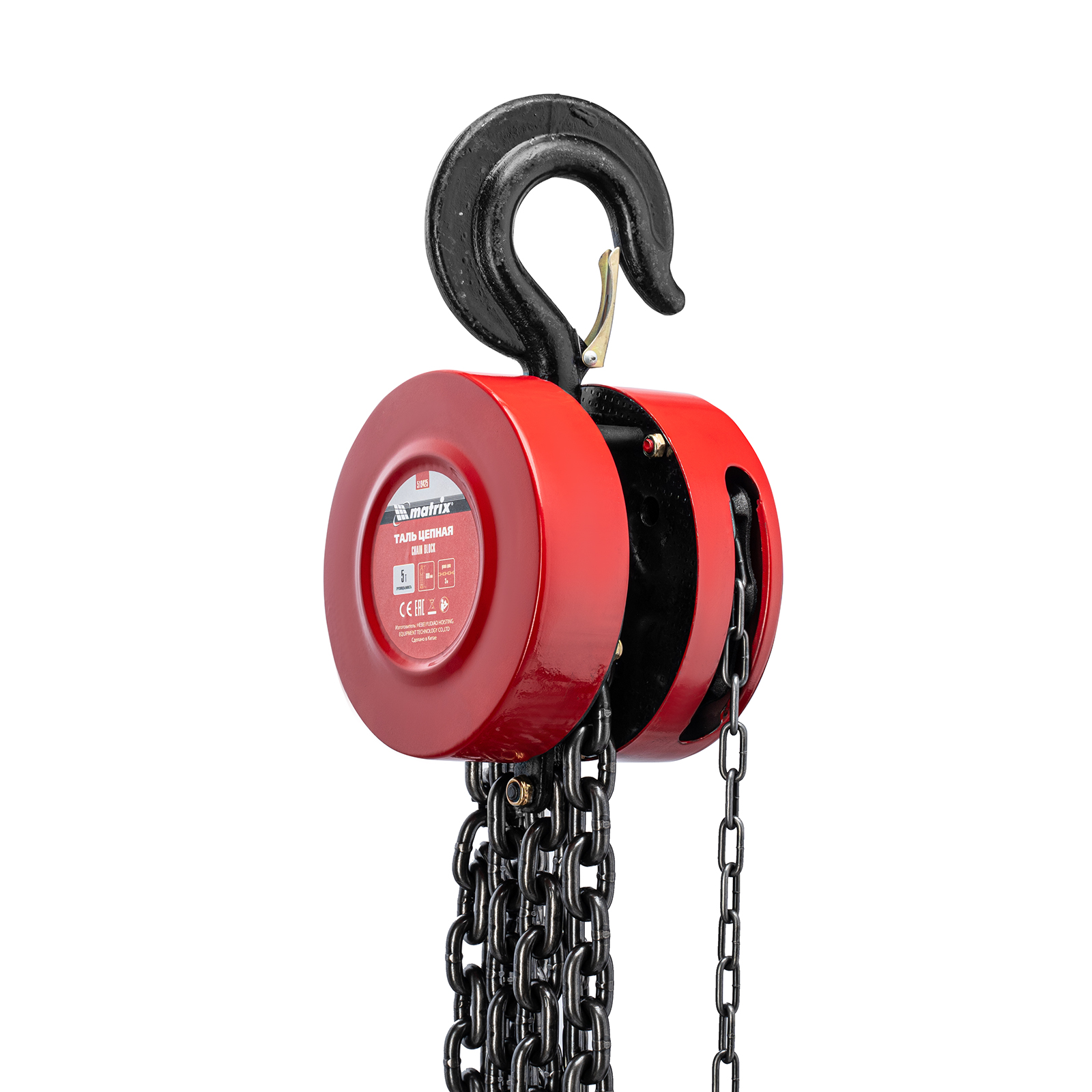 Цепная таль Matrix 519425 с расстоянием между крюками 600 мм позволяет поднимать грузы весом не более 5 т на высоту до 3 м. Простая конструкция облегчает использование. Механизм пригодится для проведения погрузочно-разгрузочных, ремонтных, монтажных работ.
