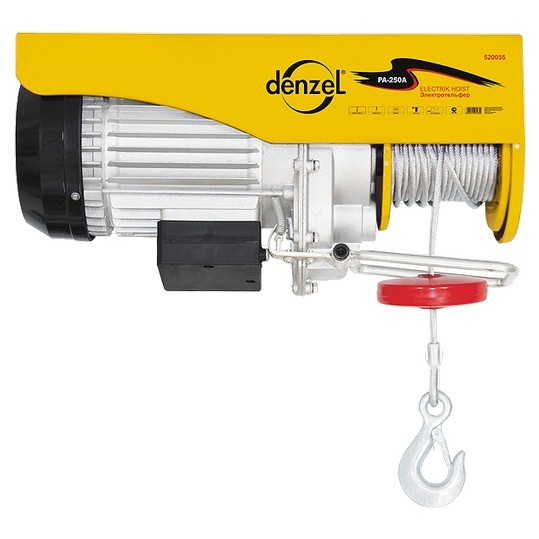 Электрический тельфер Denzel 520155 мощностью 1600 Вт предназначен для подъема грузов массой до 1 т на высоту 12 м. Будет полезен на строительной площадке, в цеху, автосервисе.