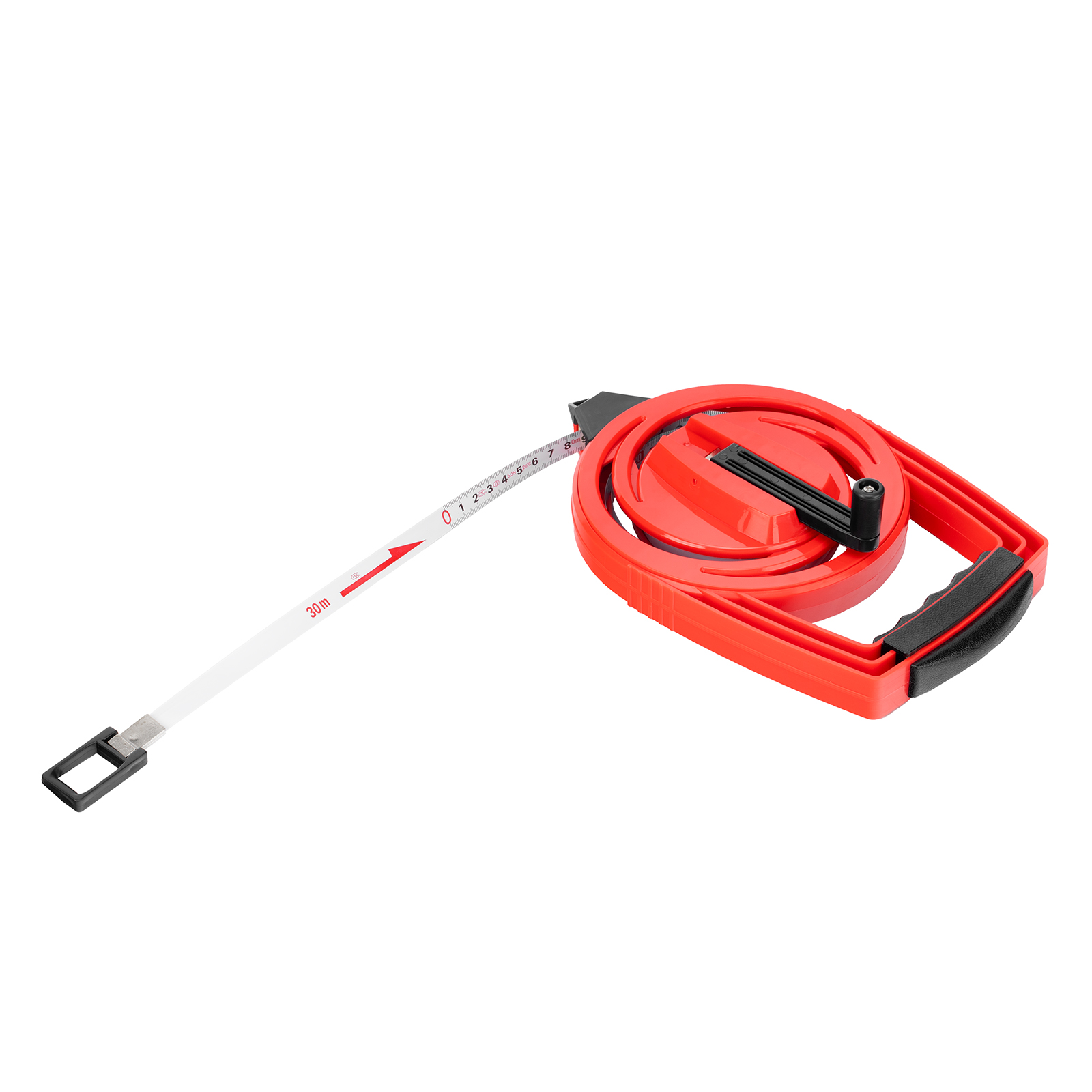 - Удобное проведение длинномерных измерений — наконечник в нижней части надежно фиксирует рулетку в почве.