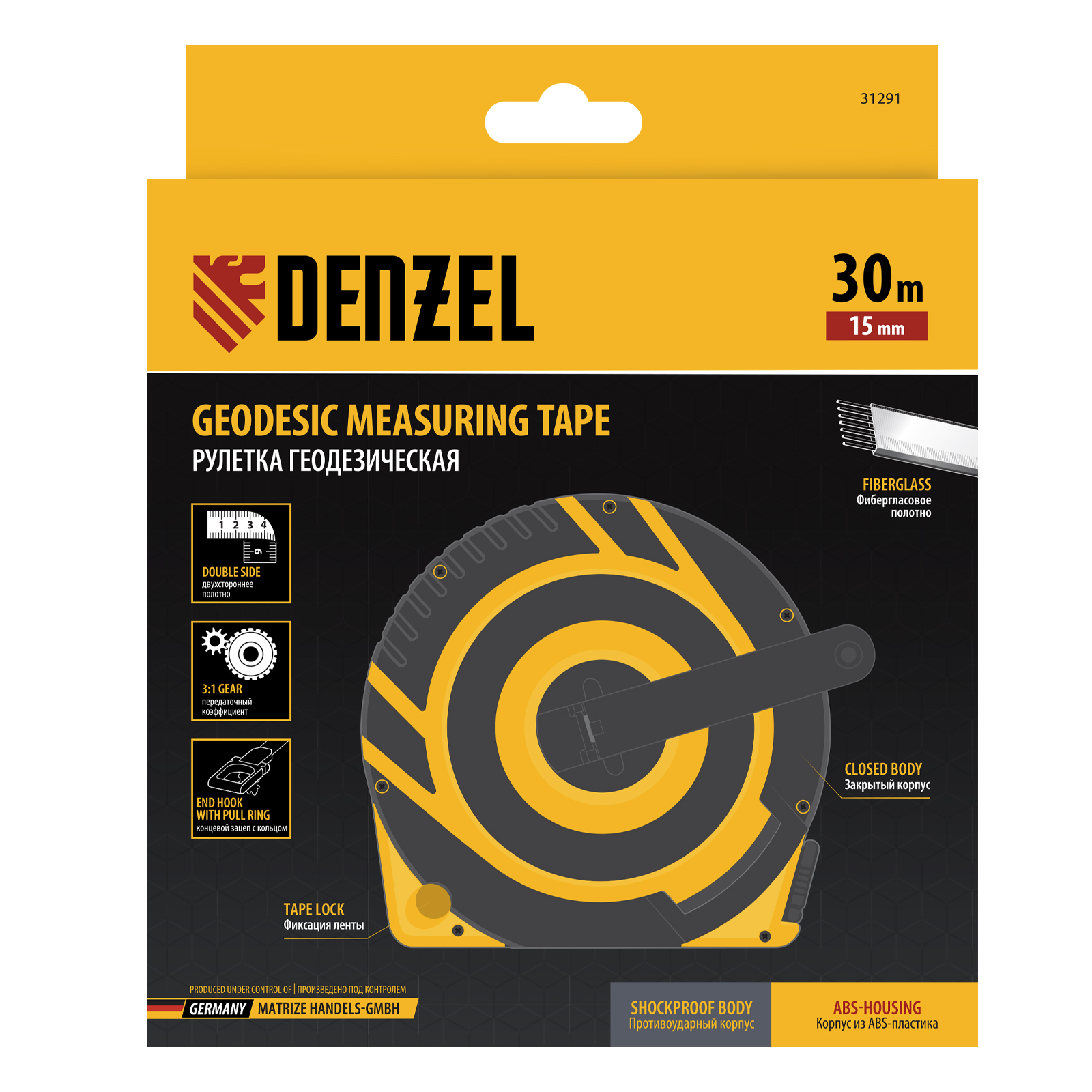 Геодезическая рулетка Denzel 31291 в закрытом корпусе, с фибергласовой лентой размером 30 м х 15 мм, используется для проведения замеров на открытых участках и строительных объектах. Двухкомпонентный корпус из ABS-пластика с вставками из термопластичной резины устойчив к повреждениям. Рулетка будет полезна во время картографических исследований и при создании ландшафтного дизайна.