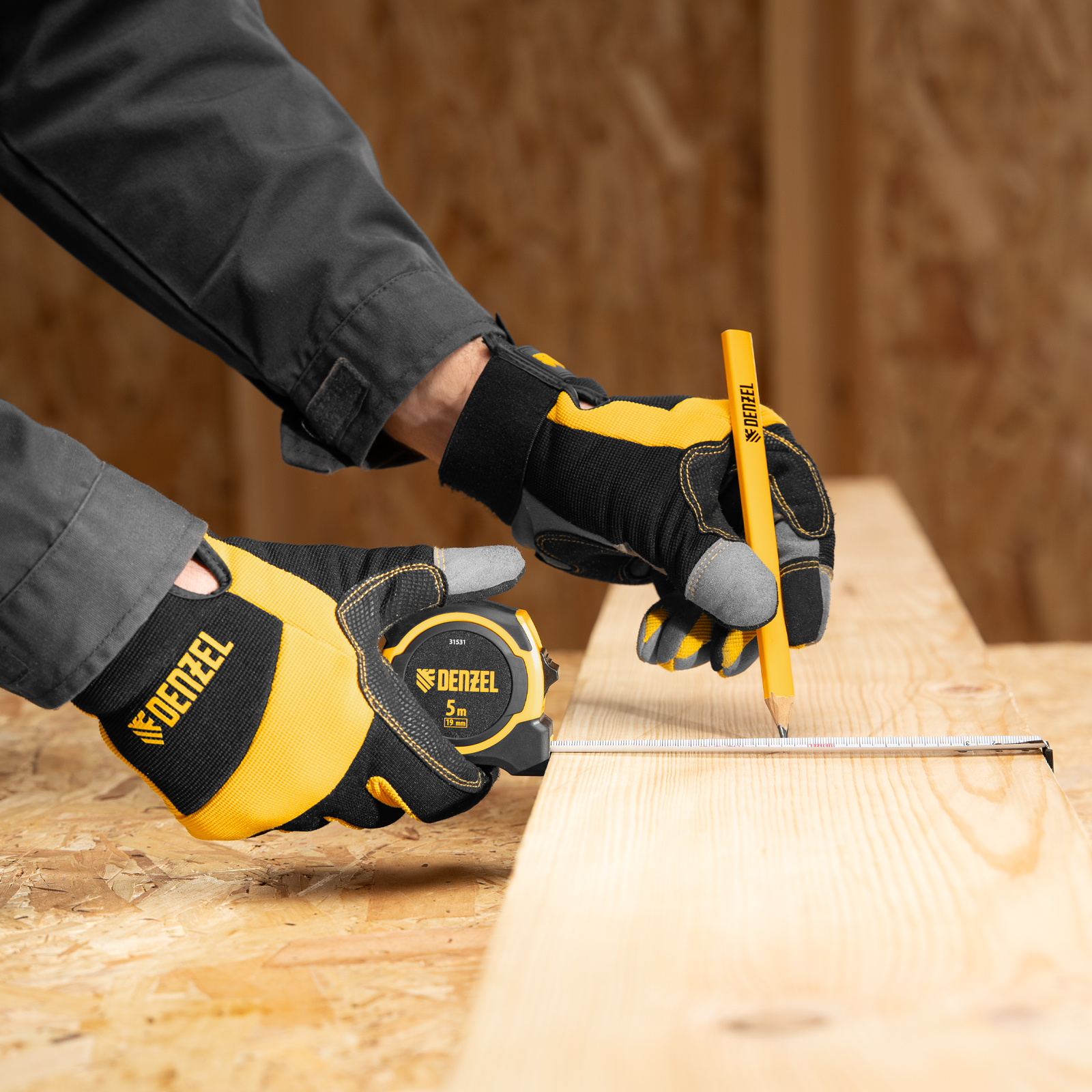 Рулетка Denzel 31531 в двухкомпонентном корпусе, с измерительной лентой шириной 16 мм и магнитным обрезиненным зацепом, позволяет определять размеры предметов и расстояния до 5 м. Рулетка будет полезна при проведении строительных, ремонтных и различных бытовых работ.