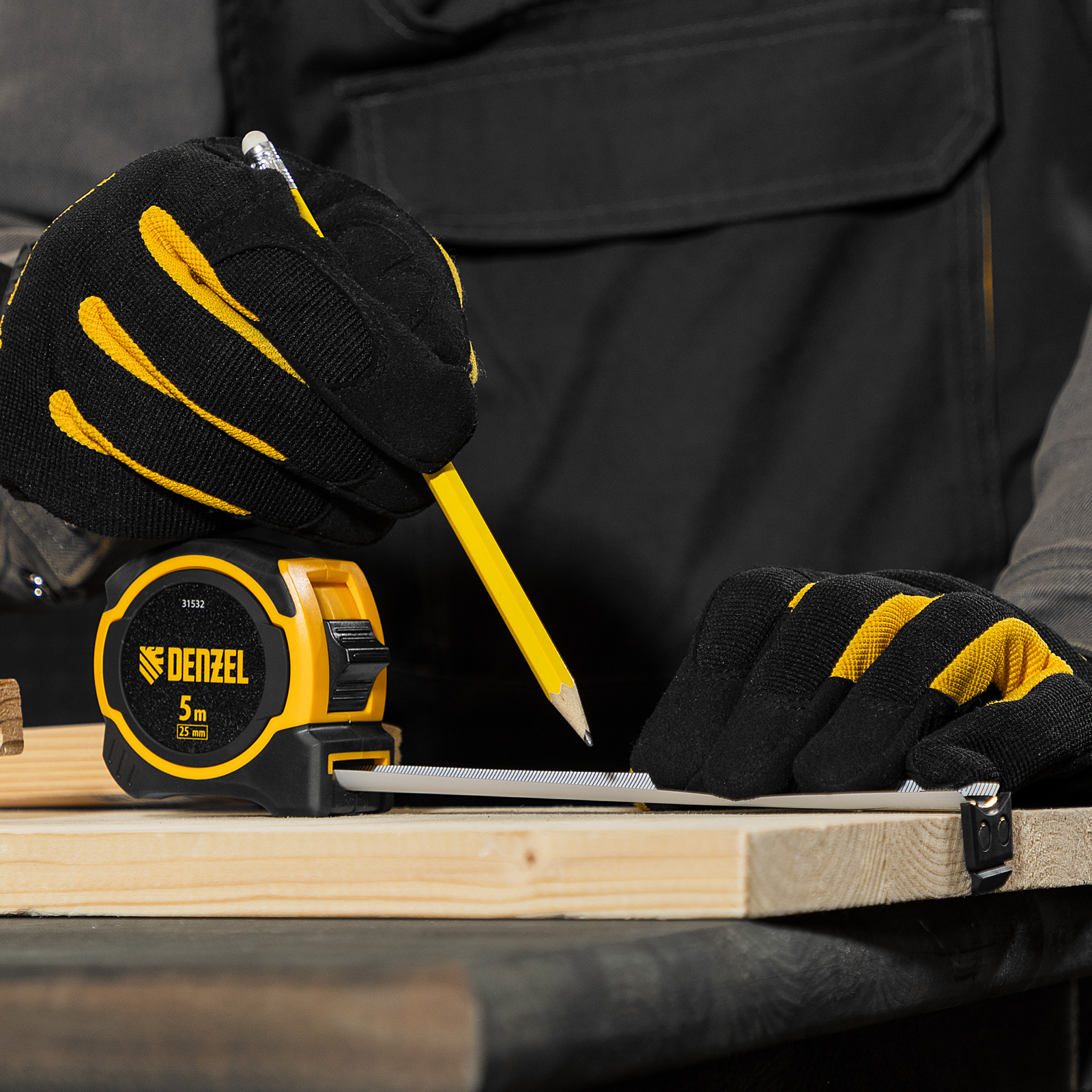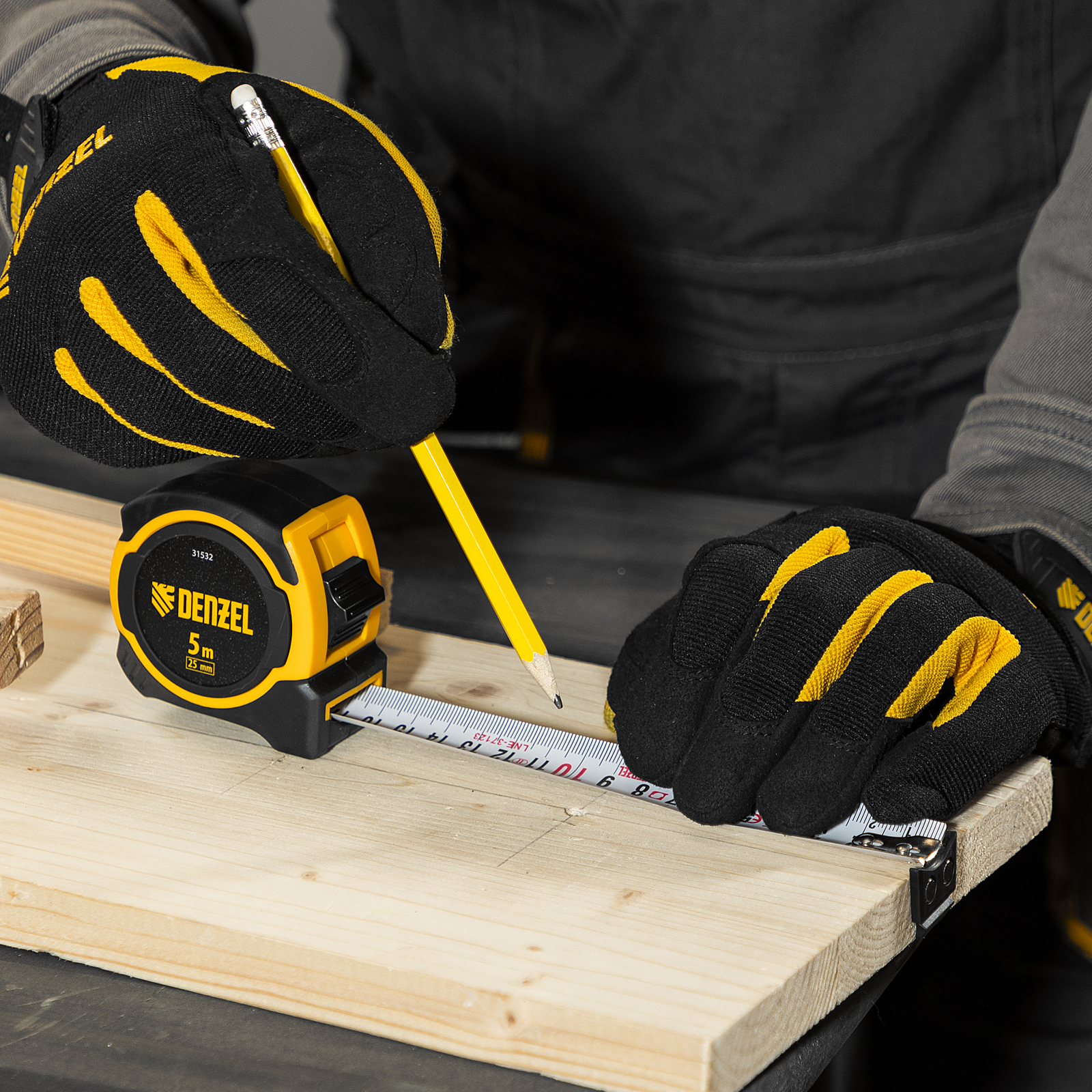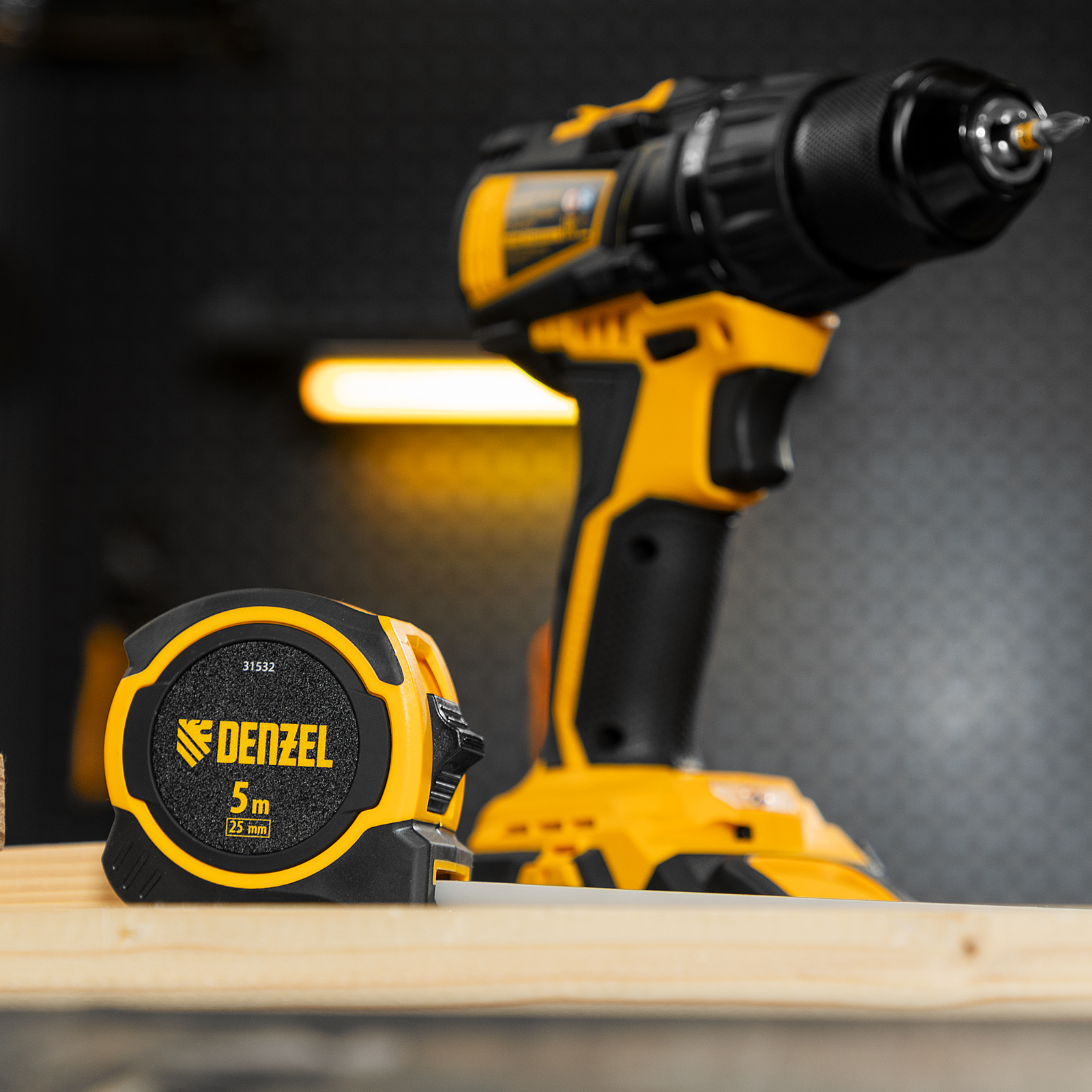 Рулетка Denzel 31532 в двухкомпонентном корпусе, с измерительной лентой шириной 25 мм и магнитным обрезиненным зацепом, позволяет определять размеры предметов и расстояния до 5 м. Широкая упругая лента упрощает проведение измерений в труднодоступных местах. Рулетка будет полезна при проведении строительных, ремонтных и различных бытовых работ.