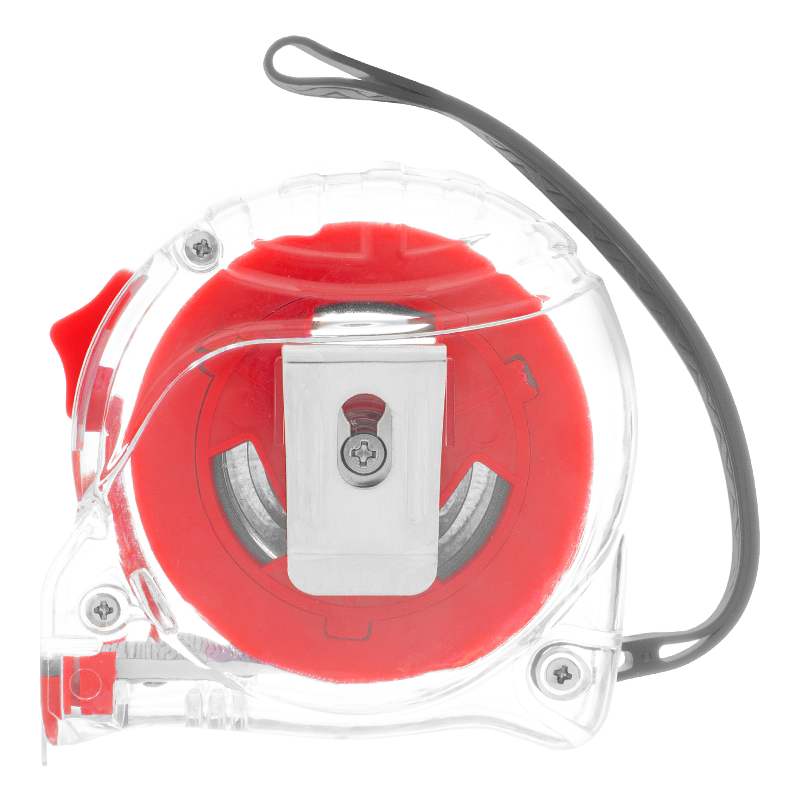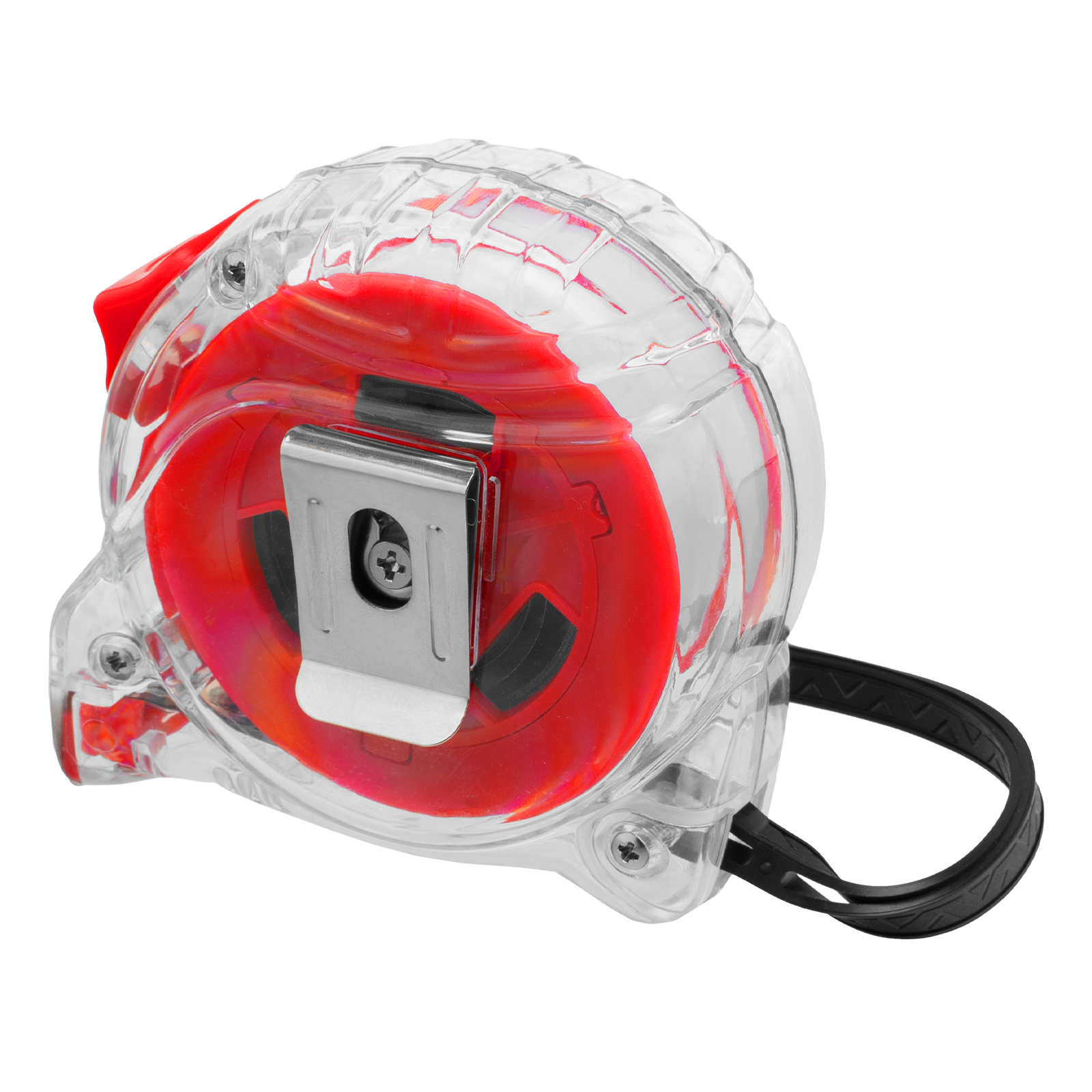 - Комфортная транспортировка — нейлоновый ремешок позволяет подвешивать рулетку на запястье, при помощи клипсы-зажима ее можно зафиксировать на поясе.
