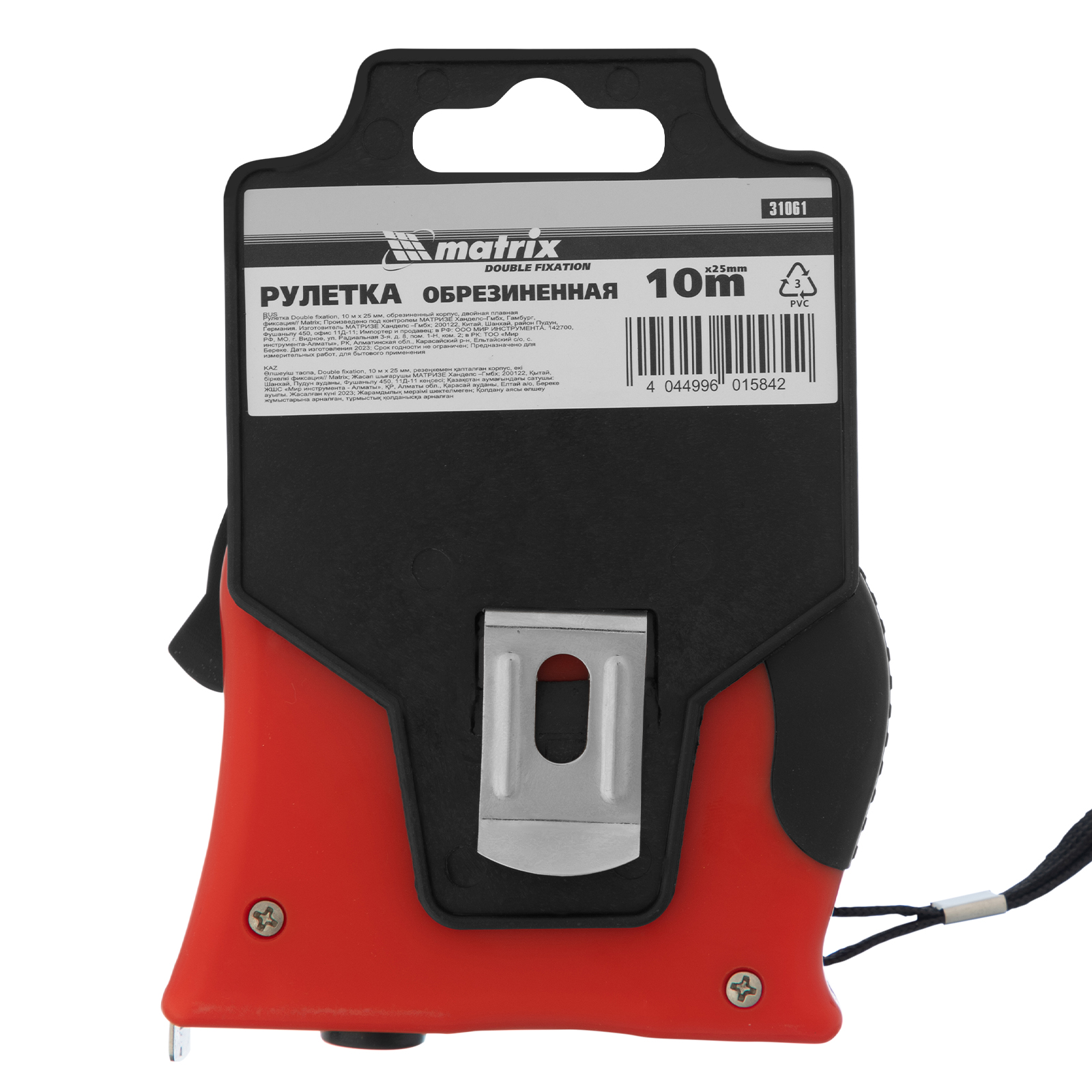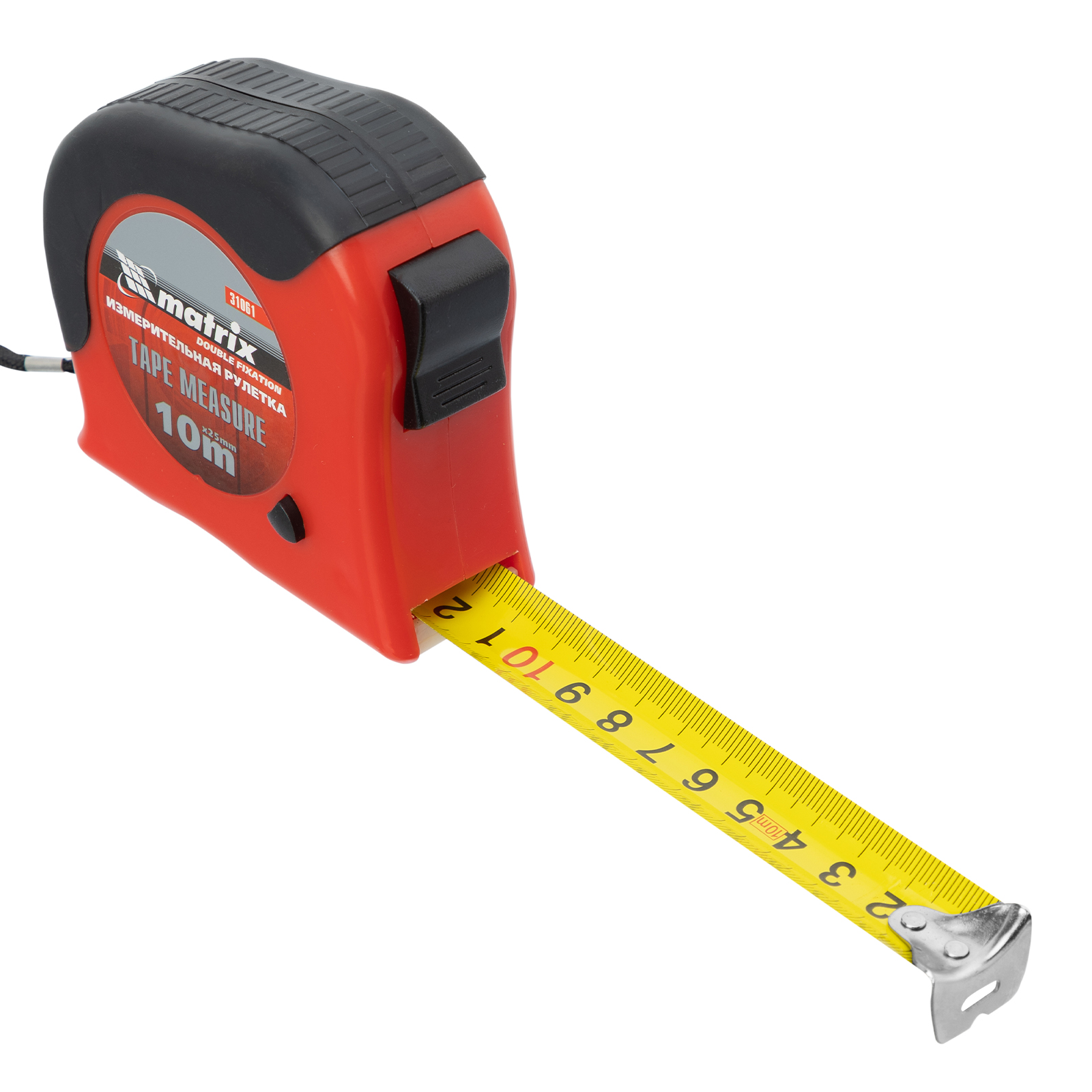 Рулетка Matrix Double fixation 31061 в обрезиненном корпусе, с двойной плавной фиксацией ленты длиной 10 м и шириной 25 мм, предназначена для определения расстояния между двумя точками. Двухкомпонентный корпус из ударопрочного ABS-пластика и ПВХ устойчив к механическим повреждениям. Инструмент используется для выполнения строительных и ремонтных работ, а также полезен в быту.