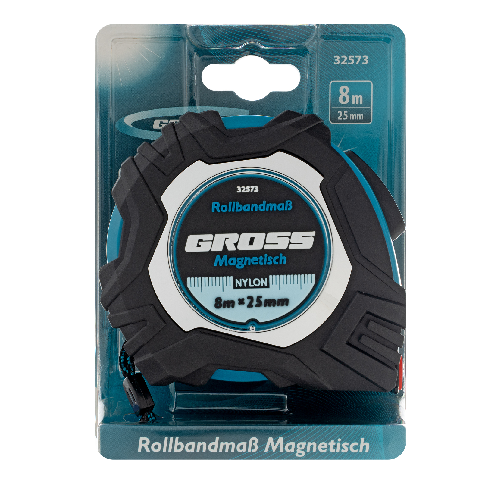 Рулетка Gross «Magnetisch» 32573 в обрезиненном корпусе, с полотном размером 8 м х 25 мм, магнитным зацепом, нейлоновым покрытием и функцией автоматической фиксации, используется во время ремонтных и строительных работ. Оптимальна для измерения стен, полов, различных заготовок, мебели, оконных проемов и т.д. Благодаря магнитному зацепу рулетку удобно использовать для работы с металлическими поверхностями, а широкое упругое полотно облегчает проведение замеров в труднодоступных местах.