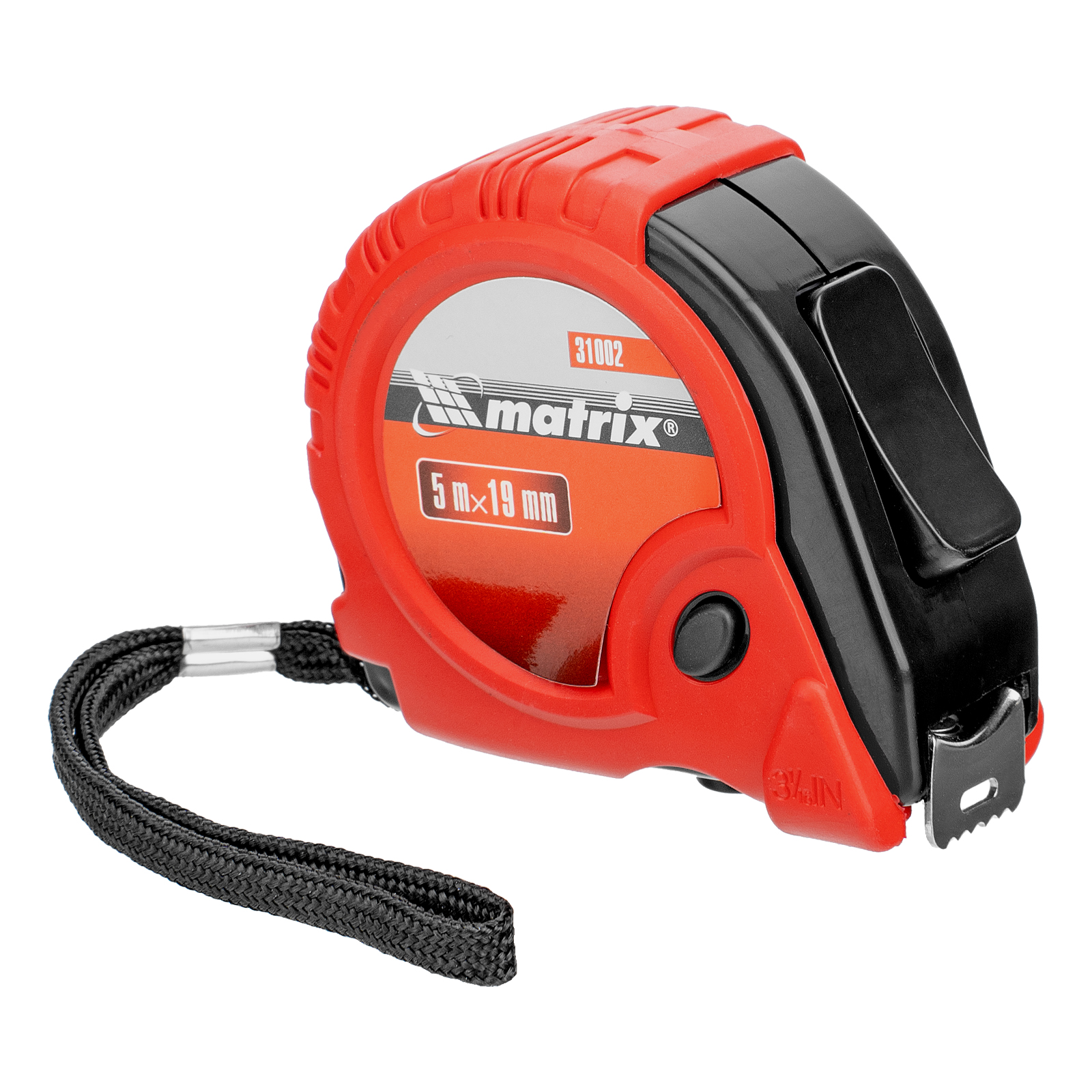 Рулетка Matrix Rubber 31002 с лентой длиной 5 м и шириной 19 мм, в обрезиненном корпусе, — измерительный инструмент для определения размеров и расстояний. Имеет самый распространенный 2 класс точности и цену деления 1 мм. Зацеп надежно закреплен двумя заклепками и не отскочит во время работы. Рулетка будет полезна во время ремонта и строительства, пригодится также в домашнем хозяйстве.
