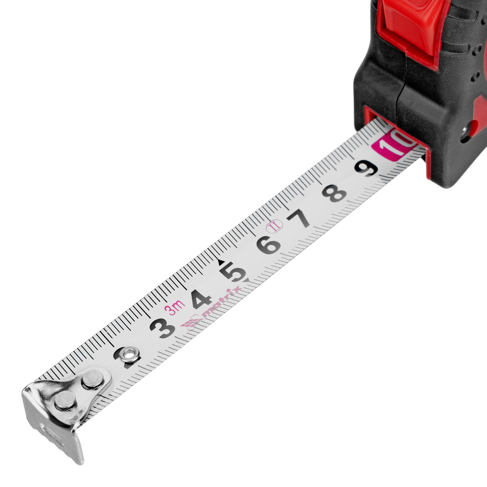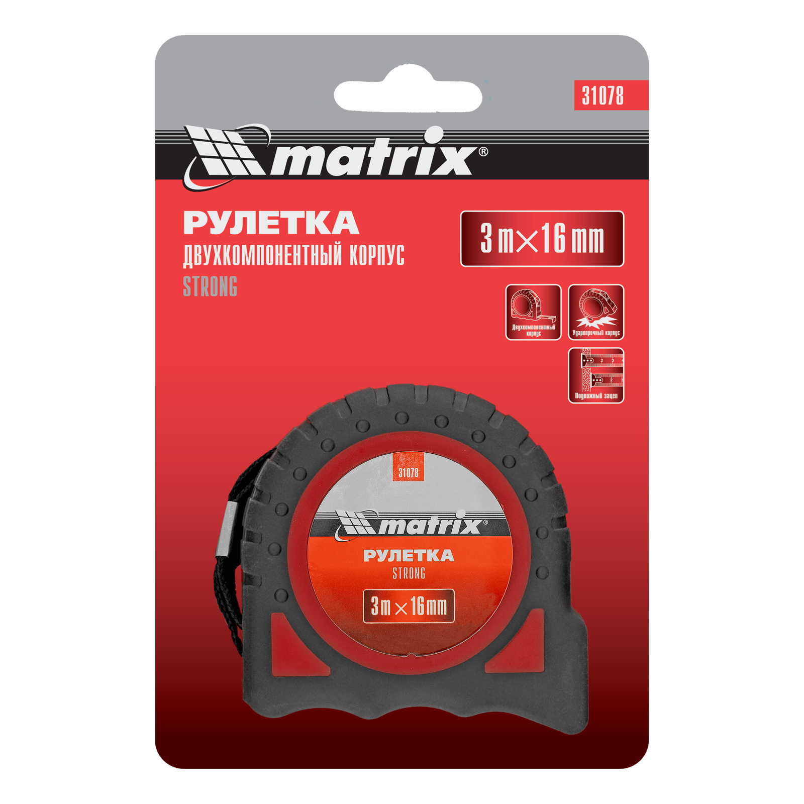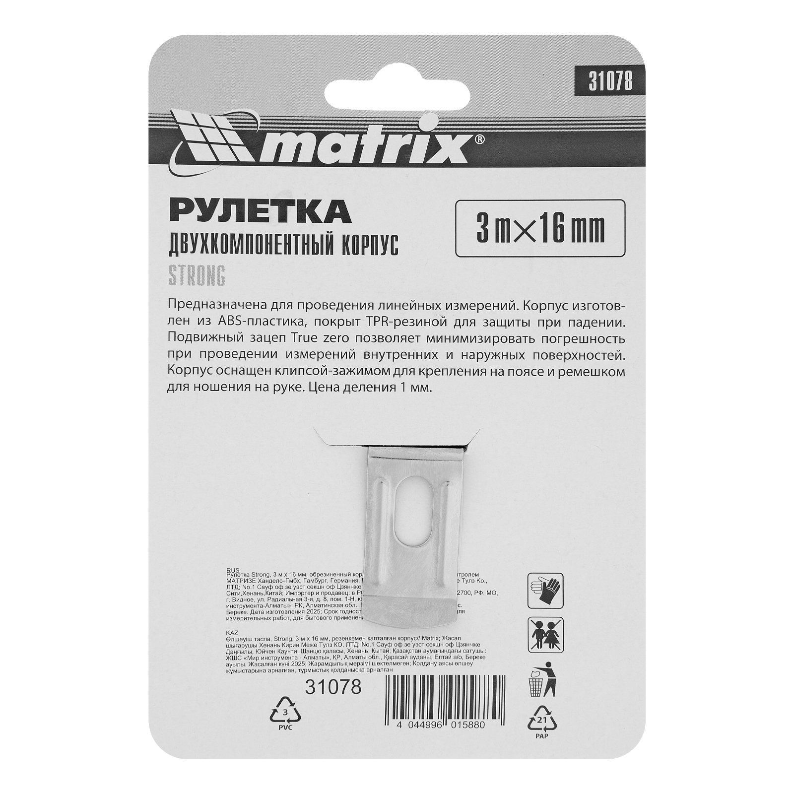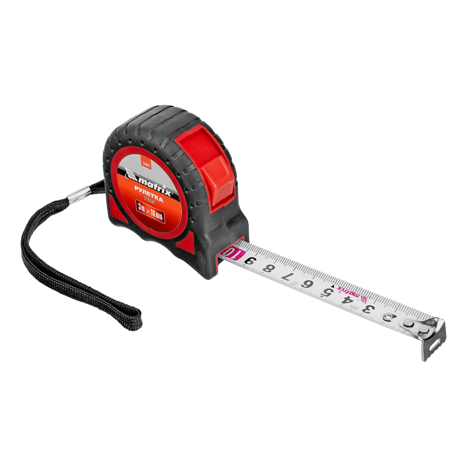 Рулетка Matrix Strong 31078 с измерительной лентой длиной 3 м и шириной 16 мм, в обрезиненном корпусе, предназначена для определения размеров и расстояний. Частично обрезиненный корпус из ударопрочного ABS-пластика устойчив к повреждениям, что уменьшает риск его поломки в случае падения или удара. Стальная лента с зацепом, прикрепленным заклепками, рассчитана на длительное использование. Рулетка пригодится на строительной площадке, во время ремонта, а также дома или на даче.
