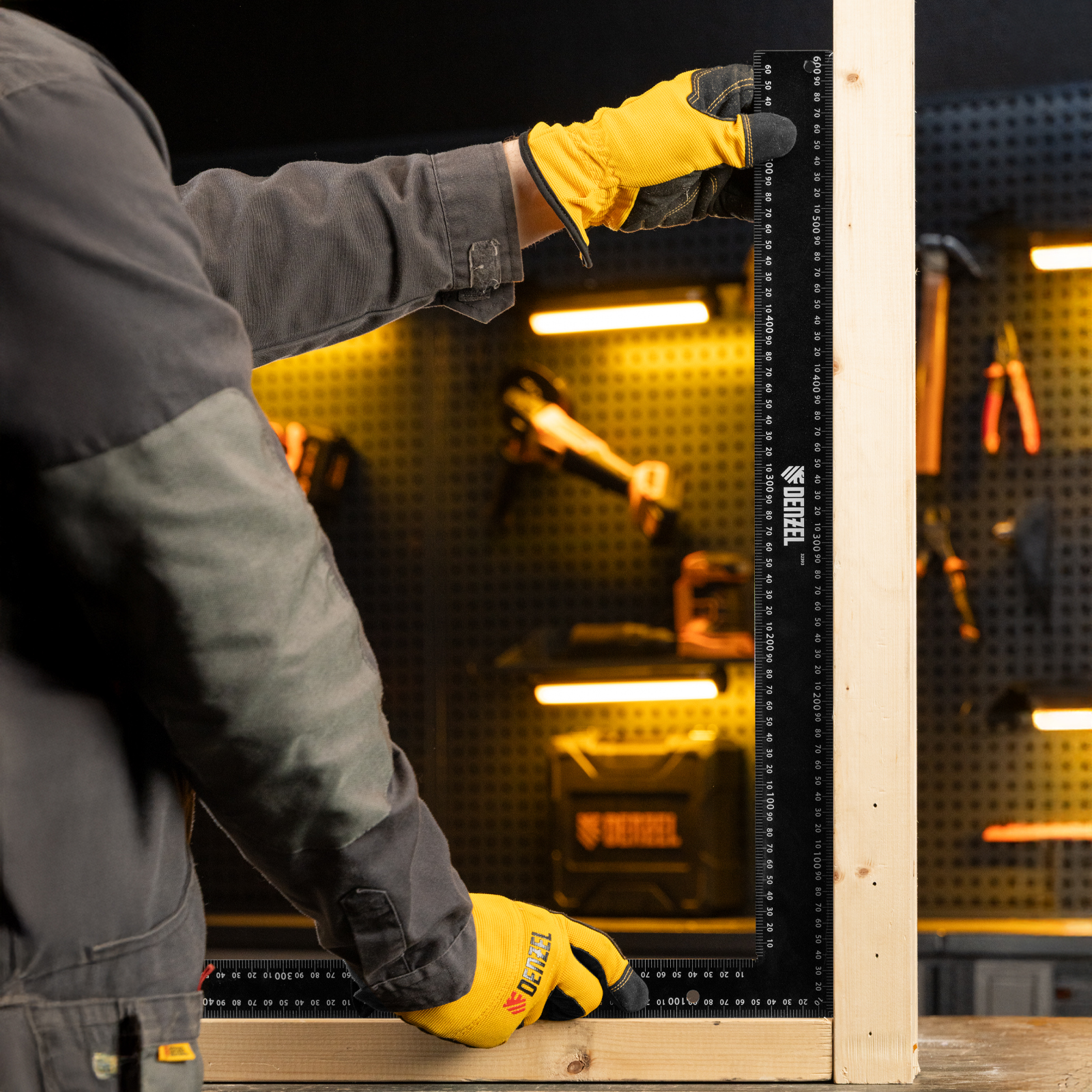 Алюминиевый угольник Denzel 32393 размером 400 х 600 мм, с лазерной гравировкой, предназначен для проверки точности углов во время обработки и сборки изделий, а также для разметки поверхностей. Пригодится в мастерской, будет полезен и в быту.