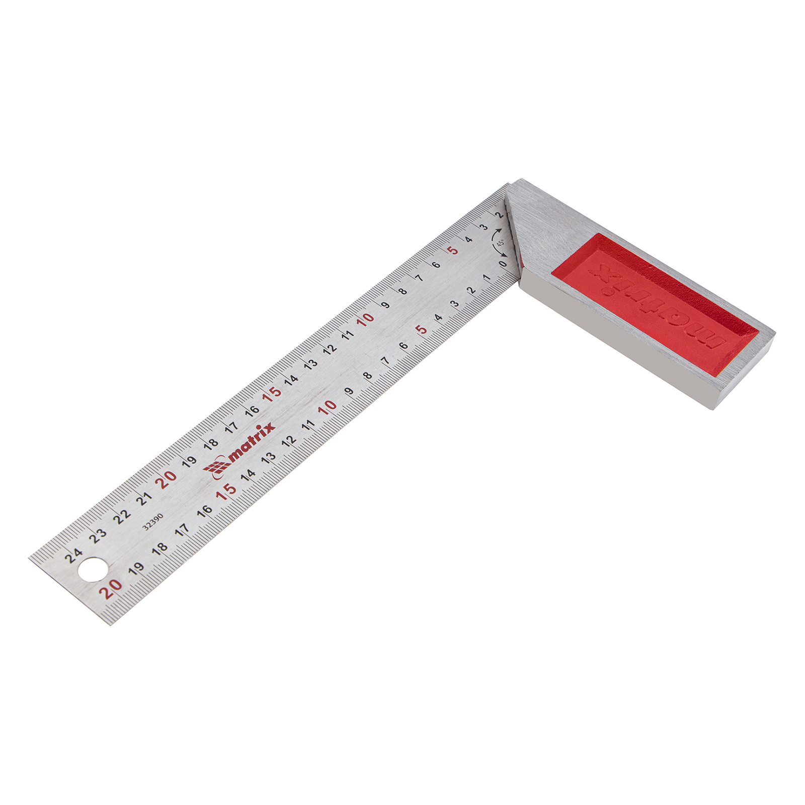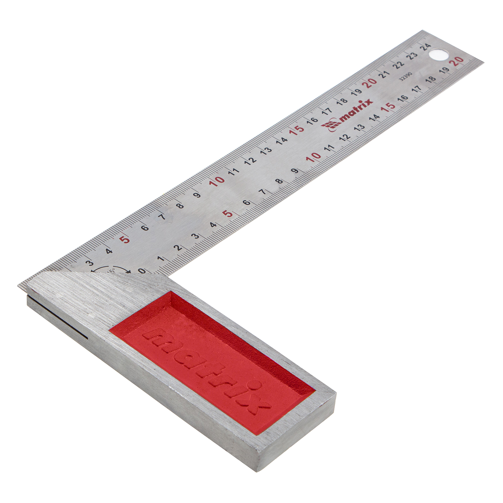 Стальной угольник Matrix 32390 длиной 250 мм, с градуировкой, — измерительный инструмент для построения и контроля углов. Будет полезен для проведения столярных и строительных работ.