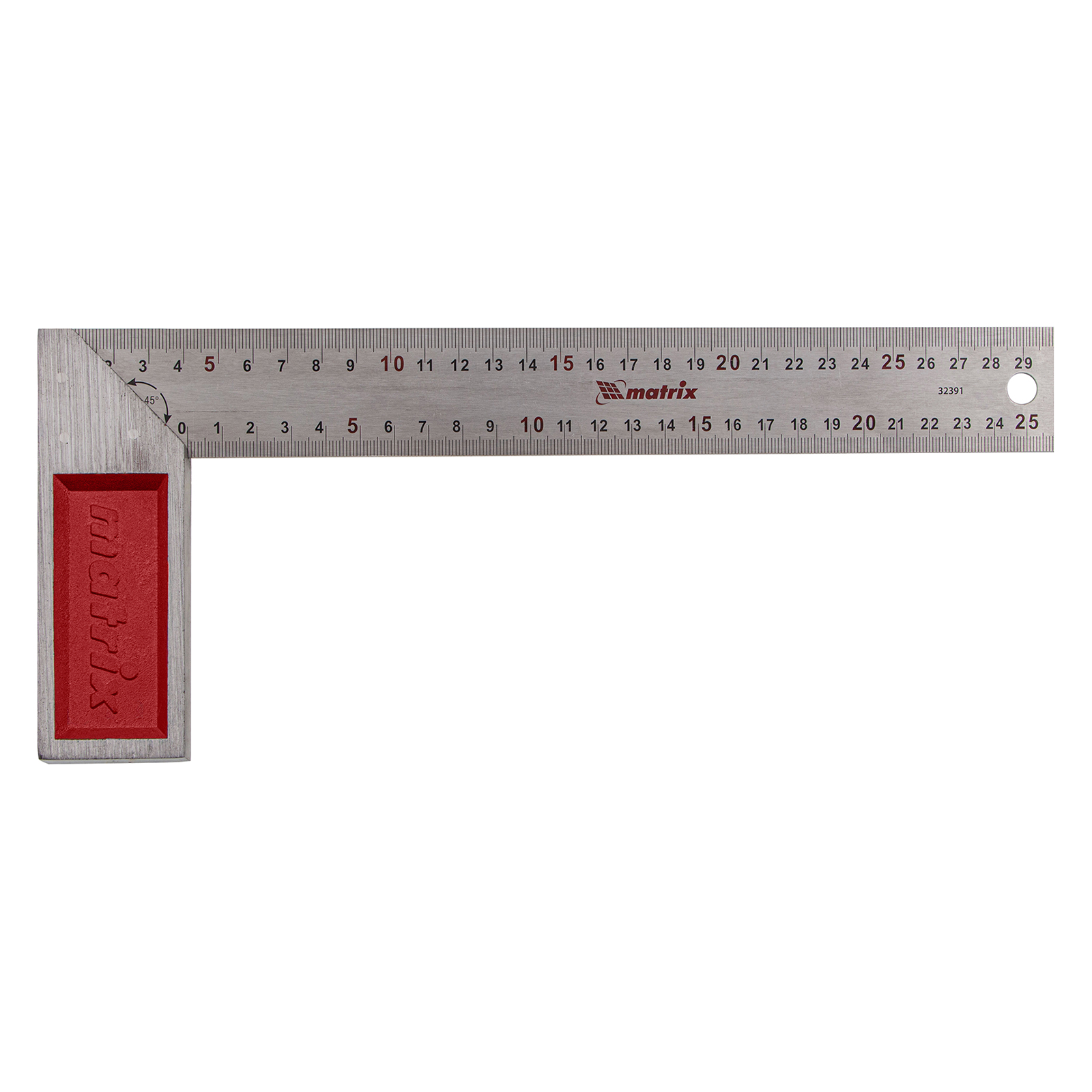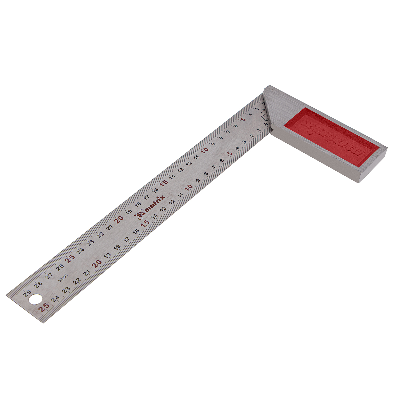 Стальной угольник Matrix 32391 длиной 300 мм, с градуировкой, — измерительный инструмент для построения и контроля углов. Будет полезен для проведения столярных и строительных работ.