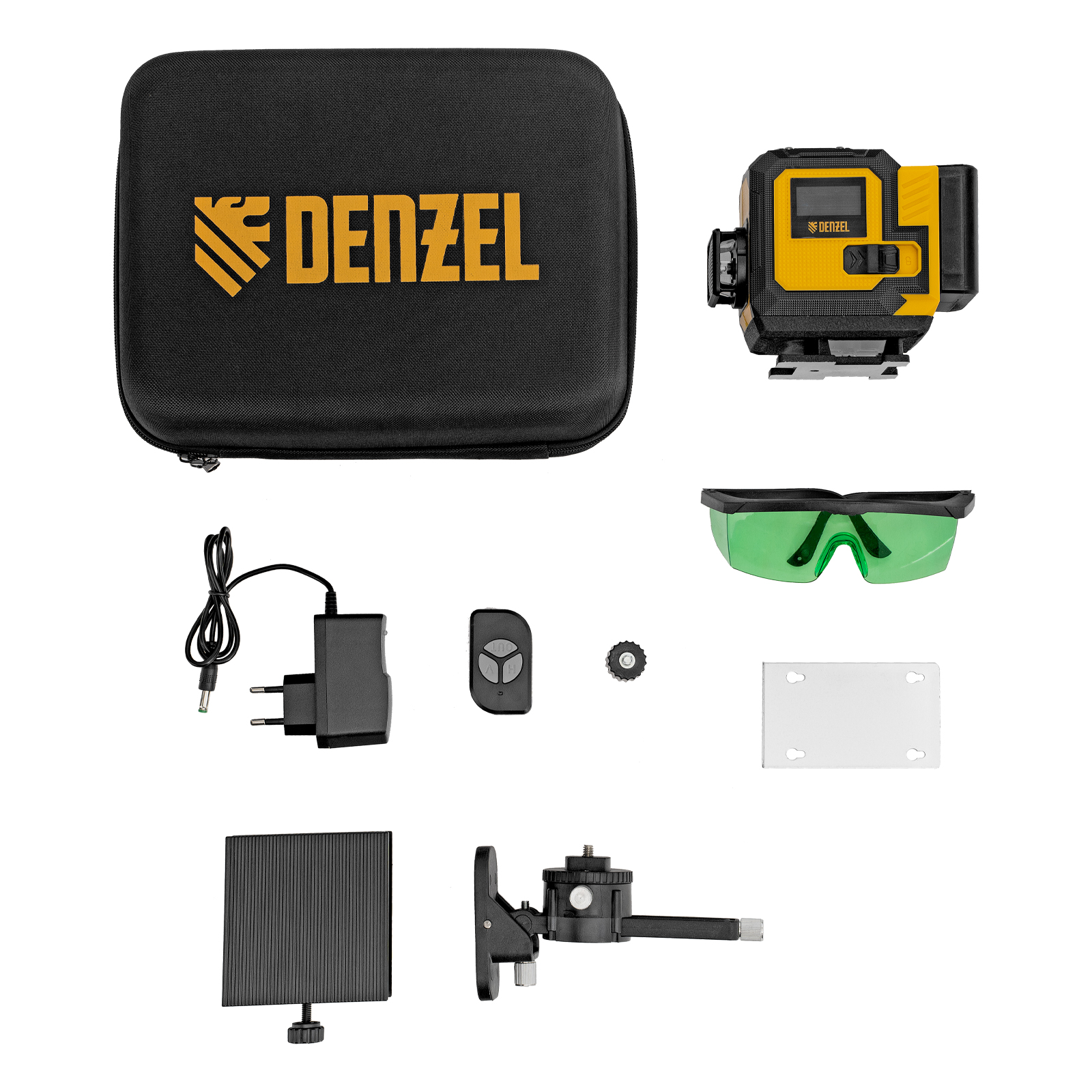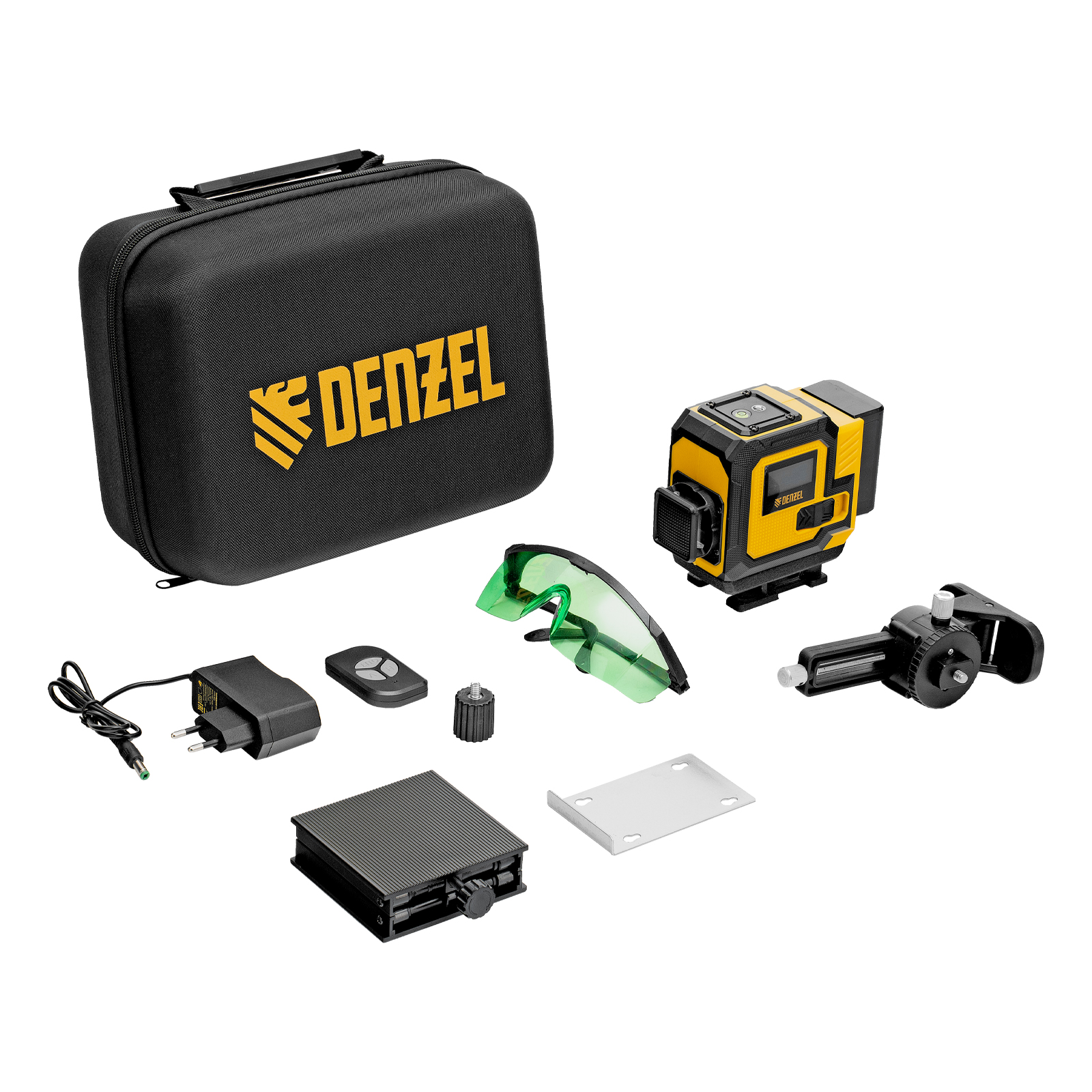Мультипризменный лазерный уровень Denzel DLV-360-3C 35080 поставляется в кейсе, работает от аккумулятора Li-Ion емкостью 2,4 А·ч и проецирует горизонтальную и 2 вертикальные линии на расстояние до 30 м при помощи зеленых лучей длиной 520 нм. С его помощью можно нанести разметку и выровнять предметы относительно друг друга и земли с точностью до 0,3 мм/м. Угол развертки составляет 360°, что повышает удобство и эффективность работы. Прибор незаменим во время проведения строительных, ремонтных, отделочных работ, обустройства интерьера.