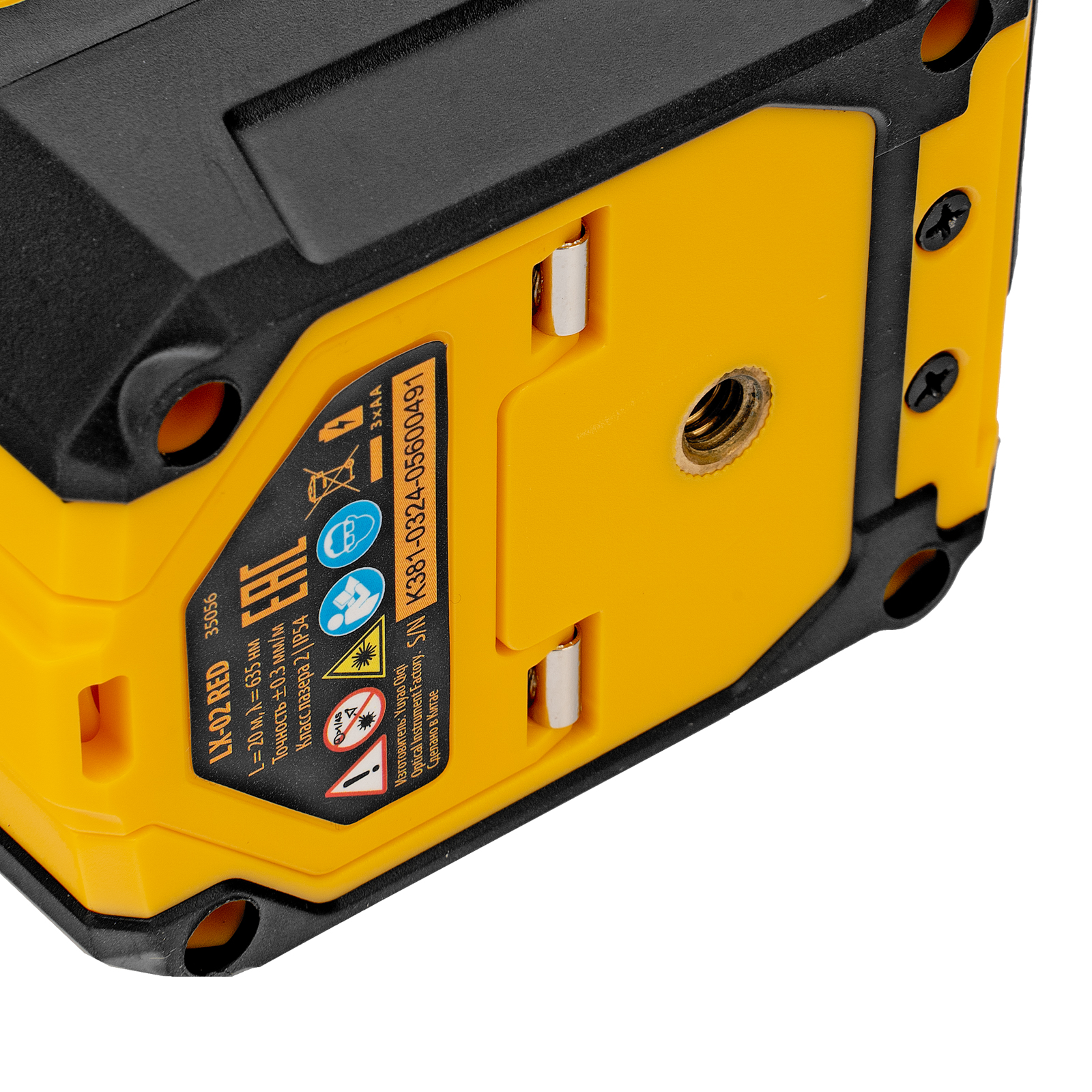 Лазерный уровень Denzel LX 02 35056 с резьбой 1/4" под штатив имеет точность ±0,3 мм/1 м и проецирует вертикальную и горизонтальную линию на расстояние до 20 м при помощи красных лучей 635 нм. Используется для построения разметки на стенах, полу и потолке. Пригодится во время укладки плитки, монтажа подвесных потолков, установки оконных рам, а также проведения других ремонтных и отделочных работ.