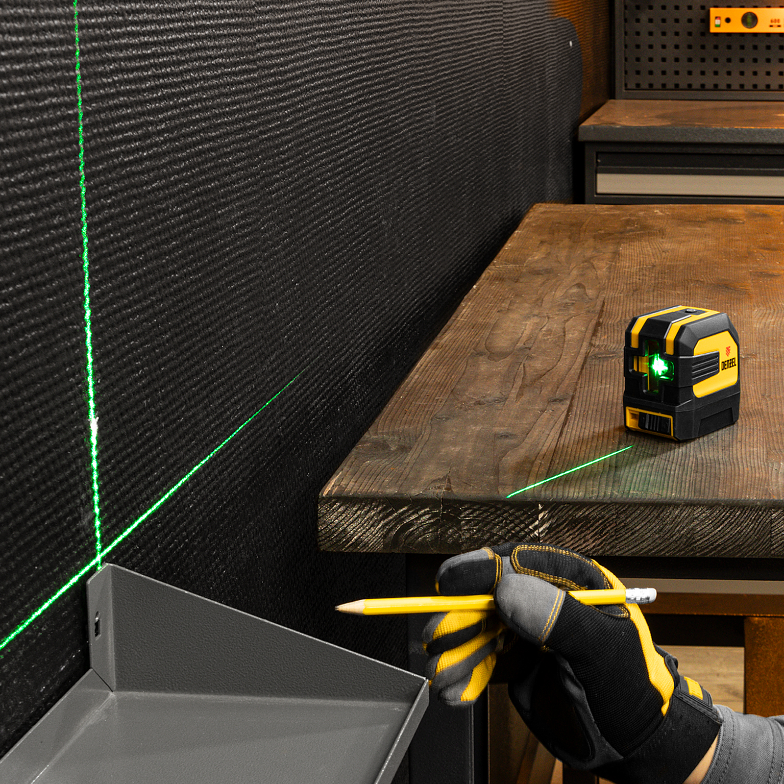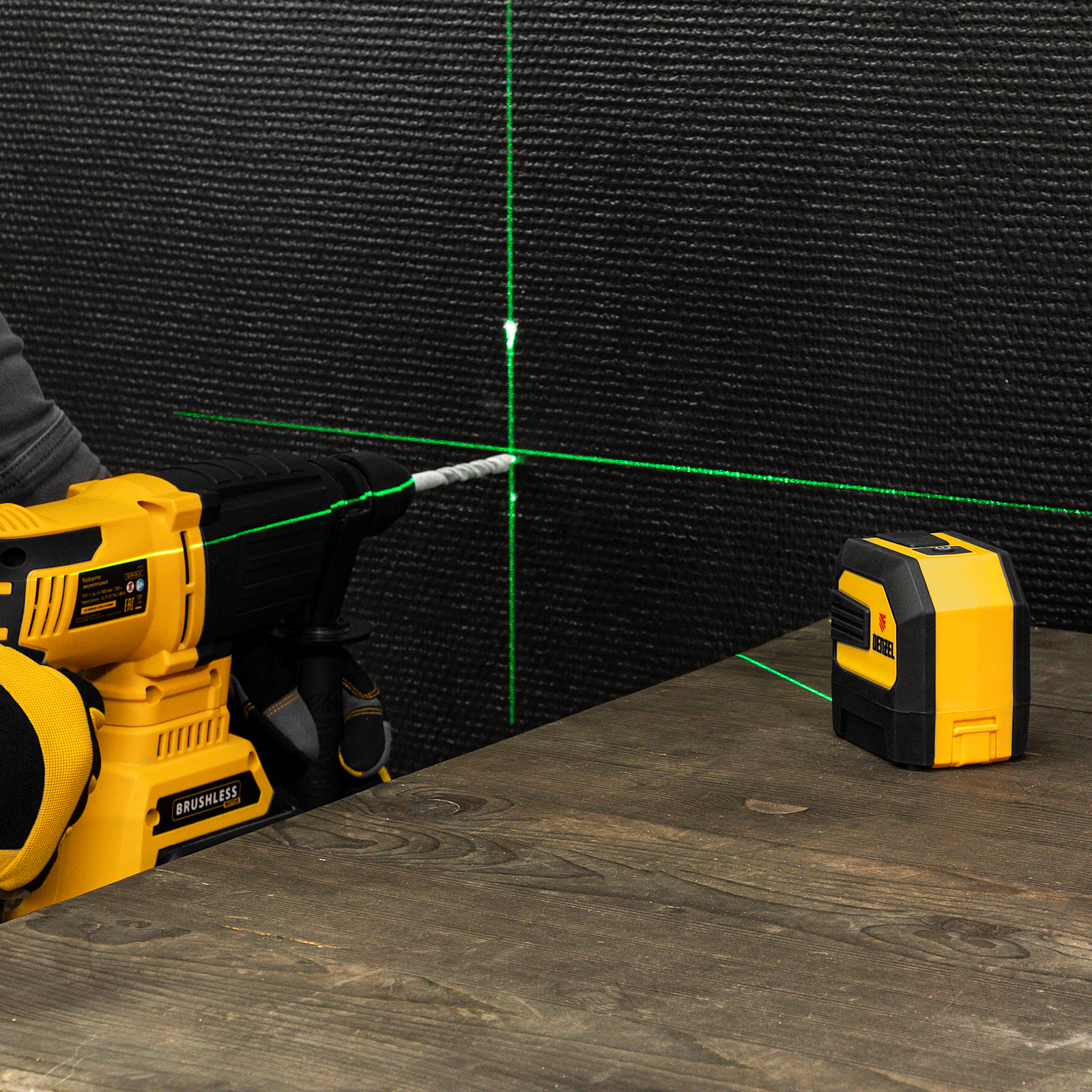 - Четкая проекция — зеленые лазеры обеспечивают хорошую видимость линий даже при дневном освещении.