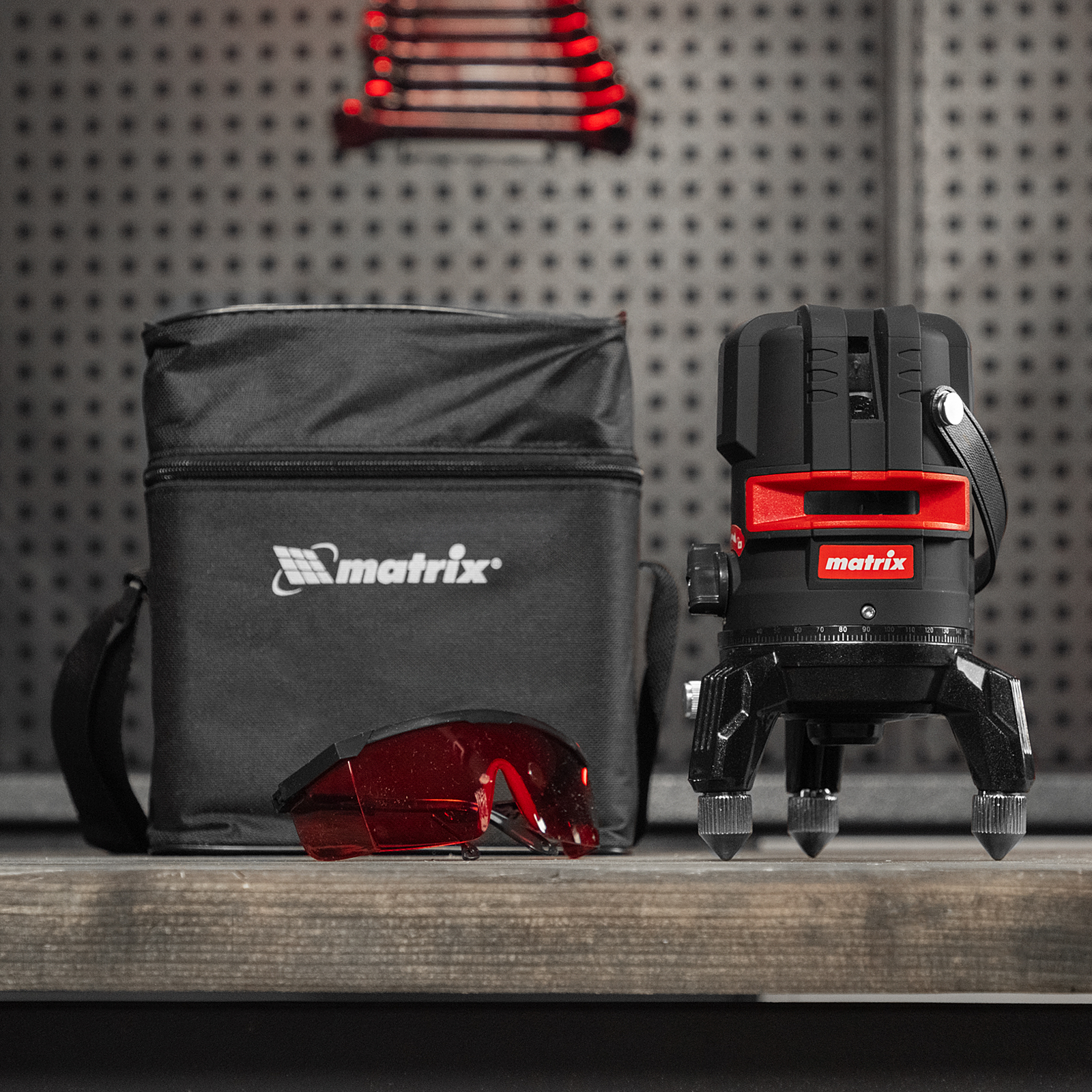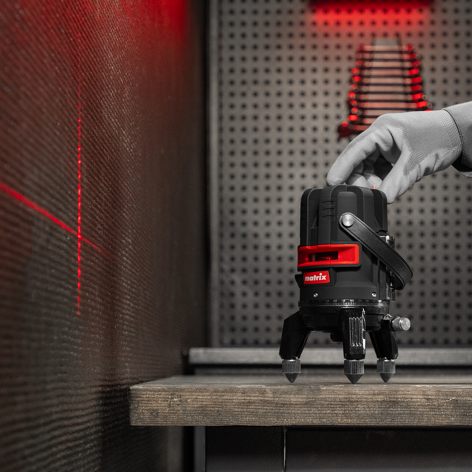 Лазерный уровень Matrix ML 05 Red 35066 с резьбой 5/8" под штатив проецирует горизонтальную и вертикальные линии, а также точку отвеса на расстоянии до 20 м при помощи красных лучей длиной 635 нм. Устройство работает от 3 батареек типа AA. С его помощью можно легко разметить все стены в помещении, чтобы ровно уложить кирпич и плитку, установить окна и двери, смонтировать подвесной потолок.