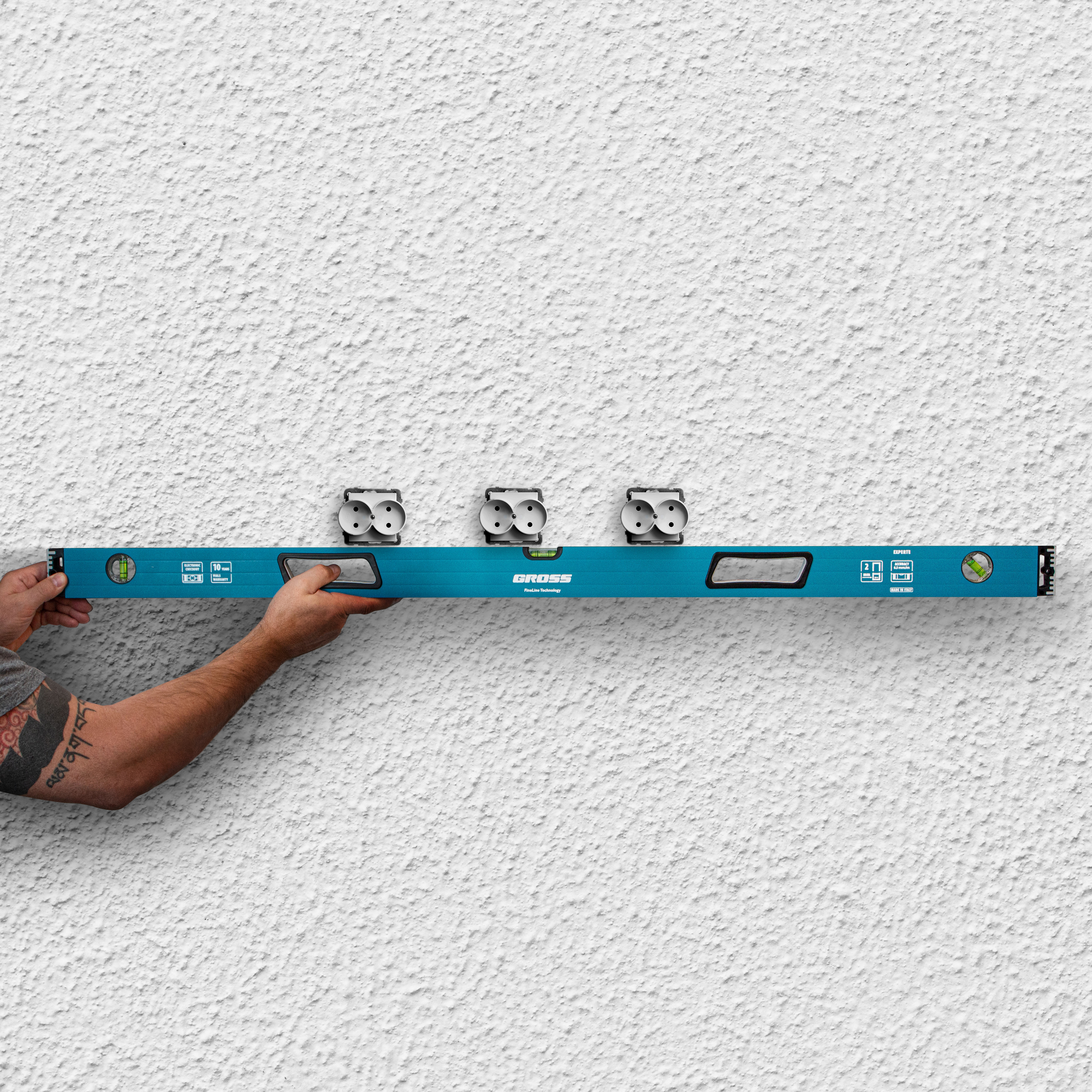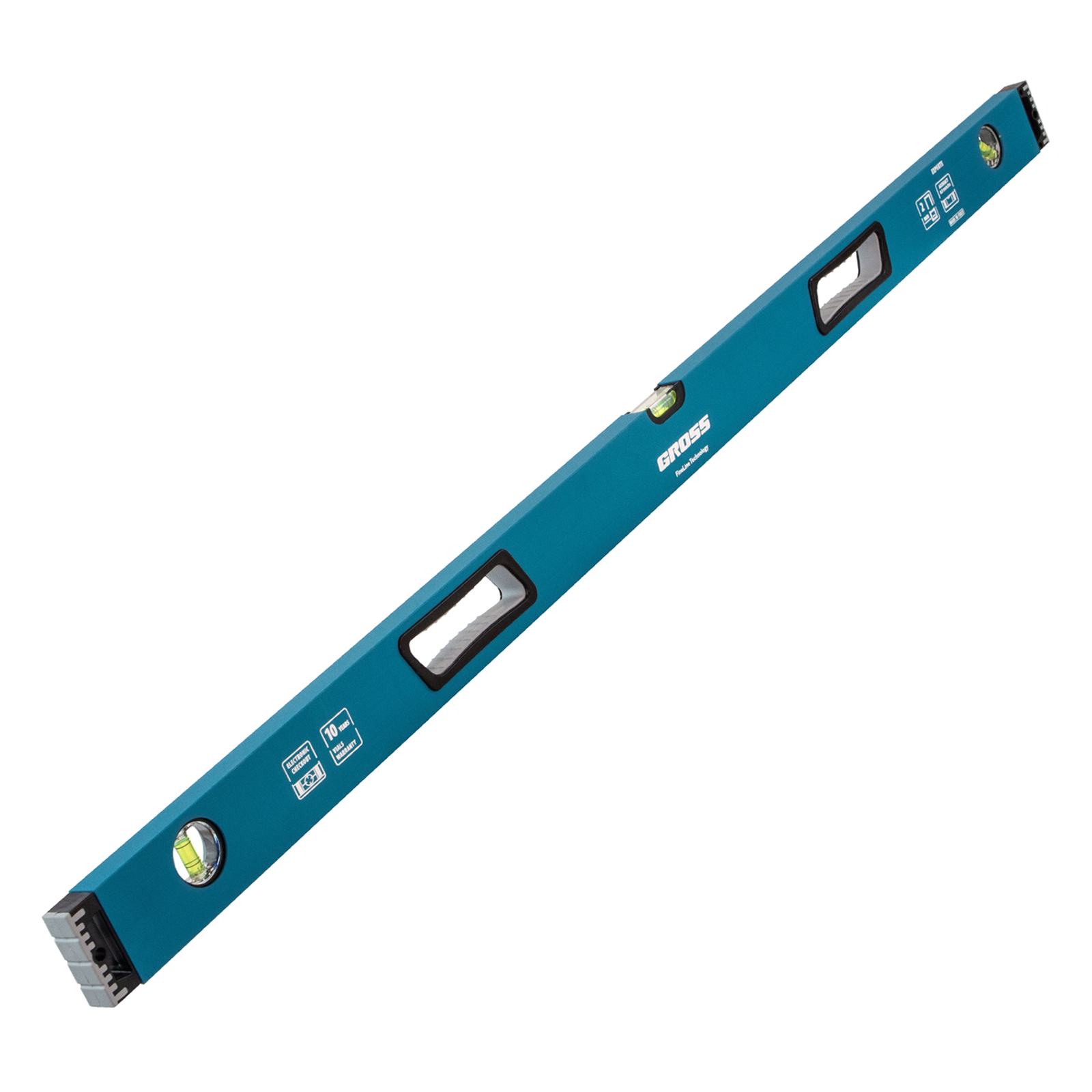 Усиленный алюминиевый уровень Gross 34332 длиной 1200 мм, с ударопрочными заглушками, рукоятками и 3 глазками, — универсальный инструмент для решения профессиональных задач на строительной площадке. Благодаря ему можно выровнять поверхности относительно горизонтали и вертикали или проверить соответствие углу 45 градусов.