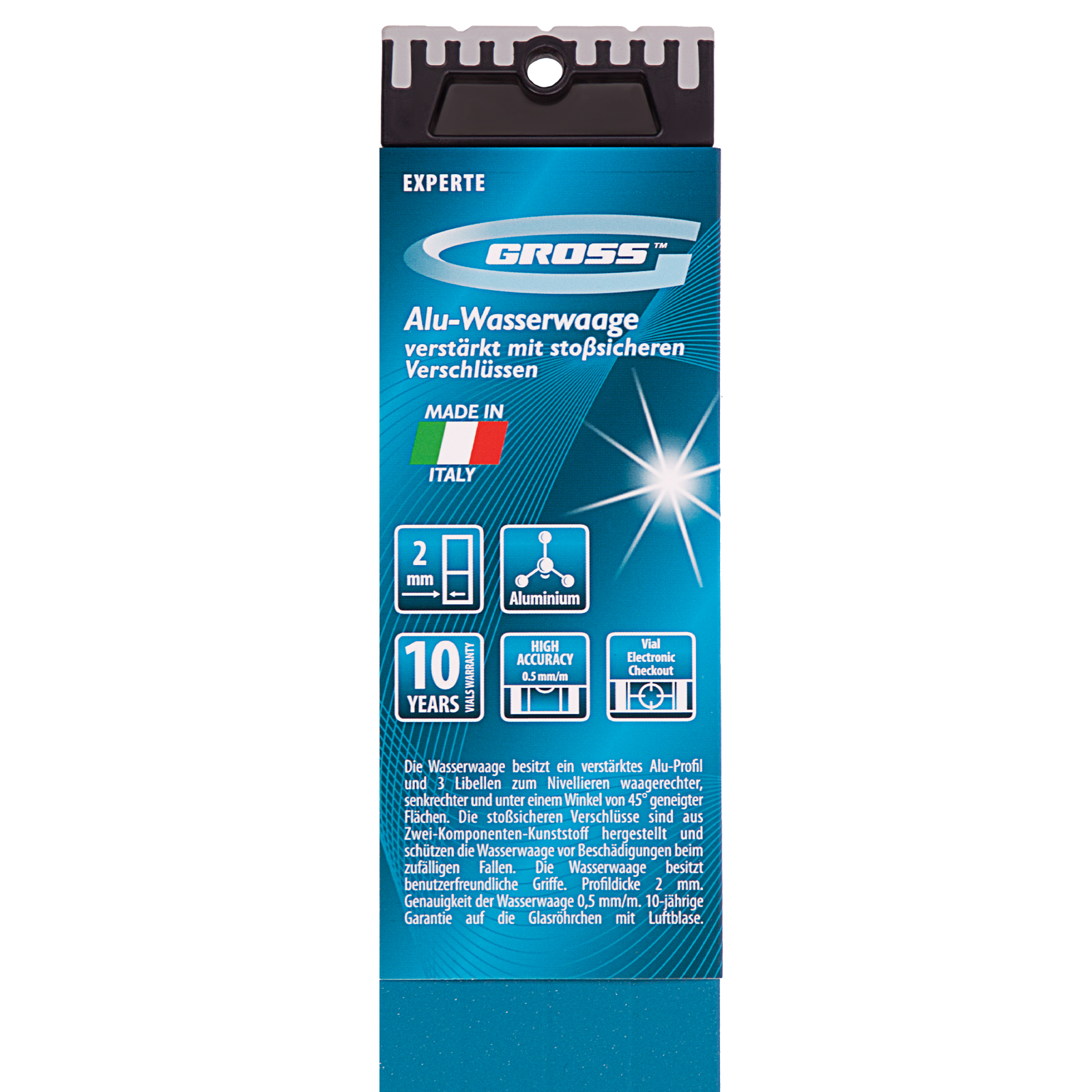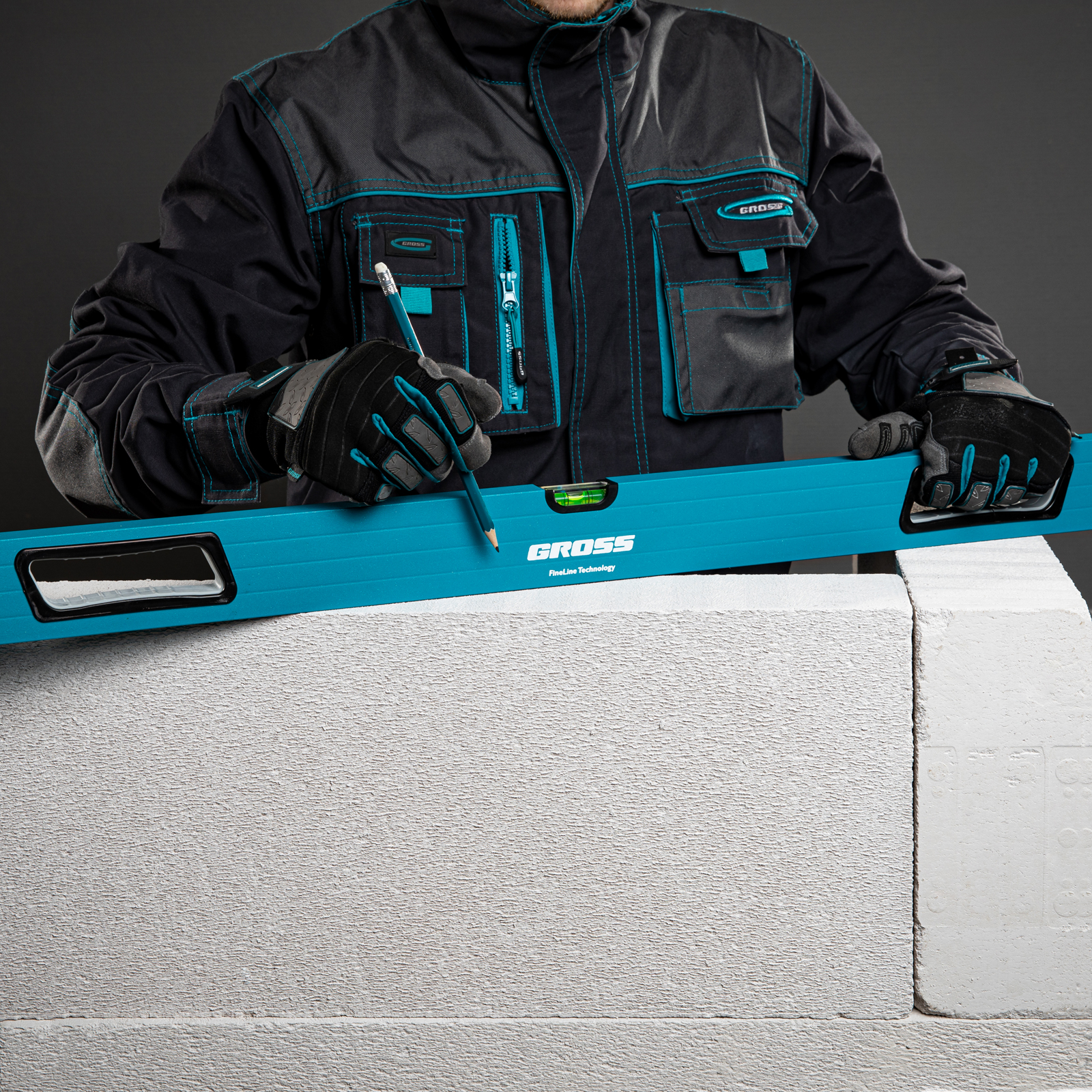 Усиленный алюминиевый уровень Gross 34338 длиной 1800 мм, с ударопрочными заглушками, рукоятками и 3 глазками, — универсальный инструмент для решения профессиональных задач на строительной площадке. Благодаря ему можно выровнять поверхности относительно горизонтали и вертикали или проверить соответствие углу 45 градусов.