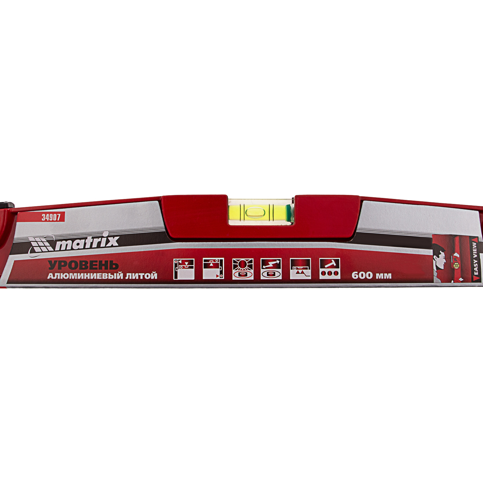 Литой алюминиевый уровень Matrix 34907 длиной 600 мм, с ударной площадкой, оснащен 2 глазками, 1 из которых фронтальный. Инструмент предназначен для использования на строительной площадке, выполнения ремонтных и монтажных работ. Оптимален для выравнивания плитки и кирпичной кладки.