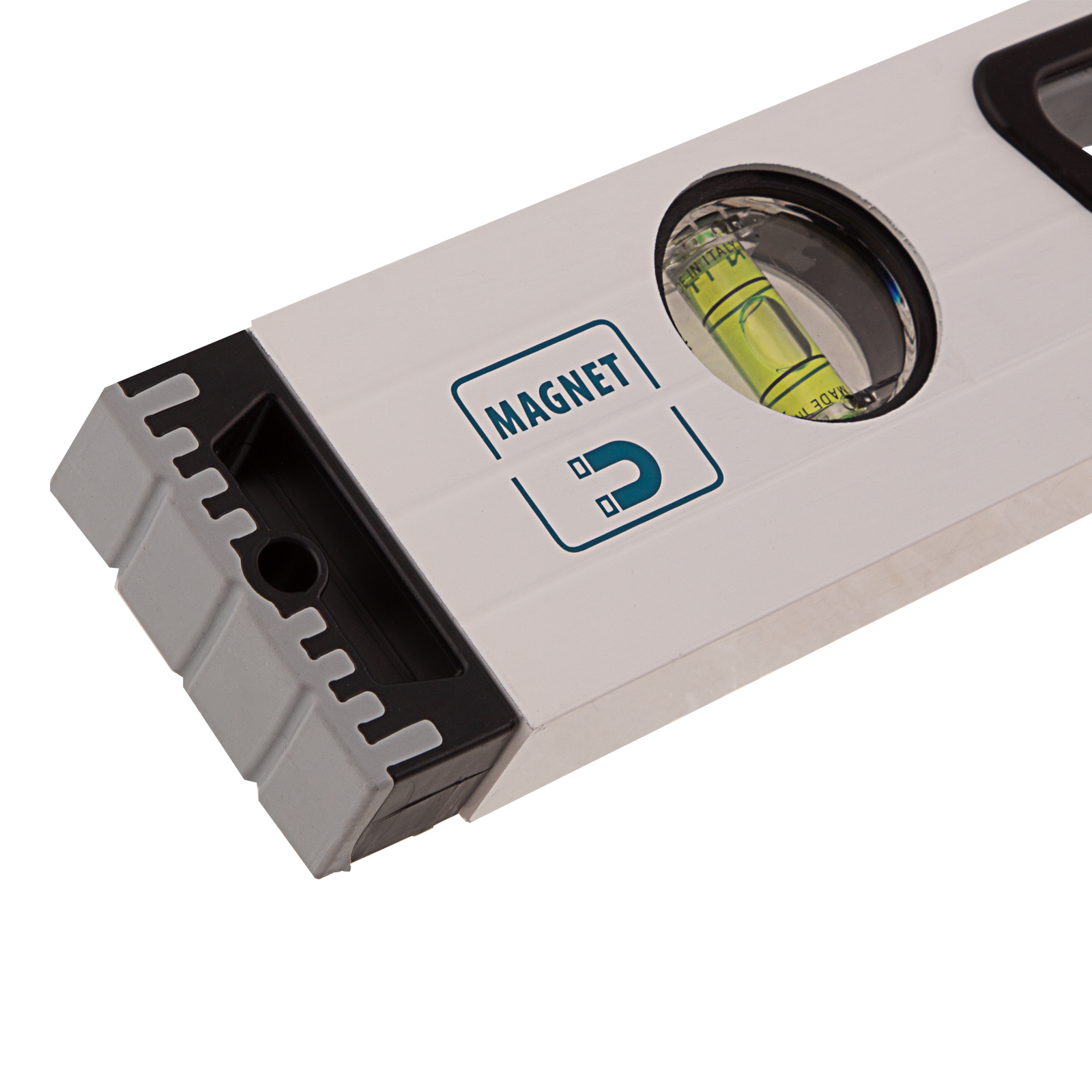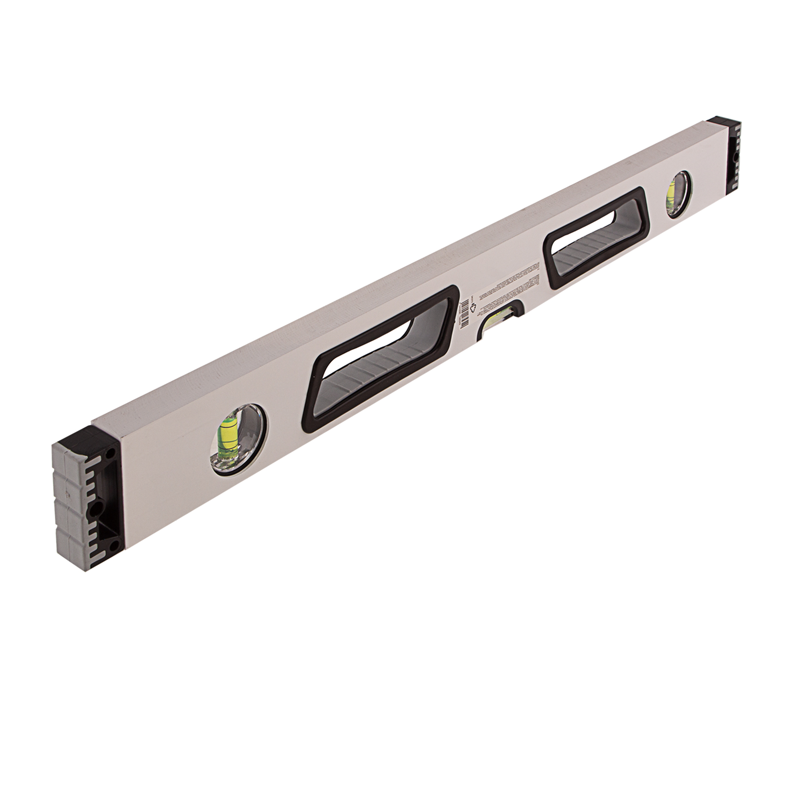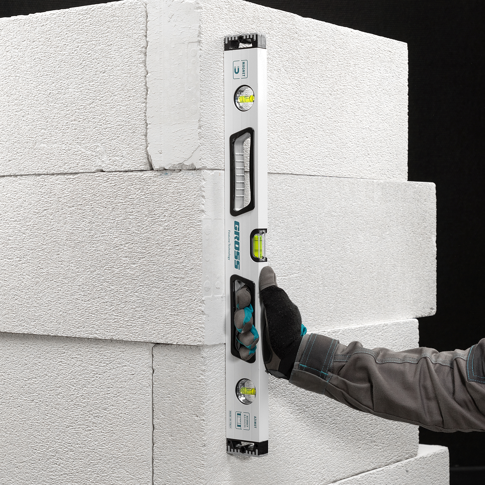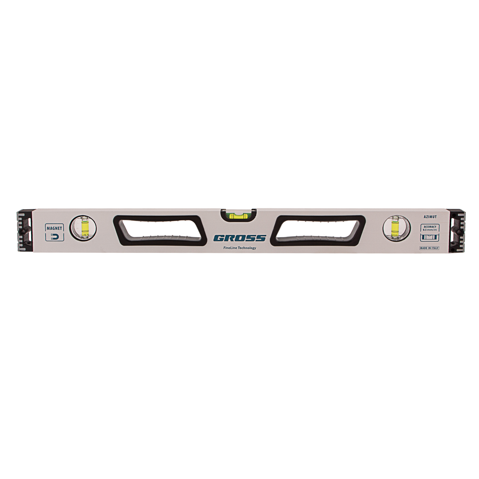 Усиленный алюминиевый уровень Gross 34370 длиной 600 мм, с рукоятками и 3 глазками, фрезерованный, магнитный, — это простой и универсальный инструмент для проверки горизонтали и вертикали. Благодаря качественному исполнению инструмент обеспечивает высокую точность работы.