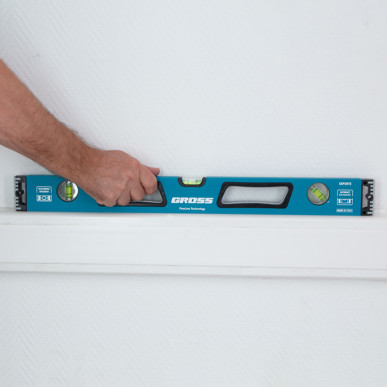 Усиленный алюминиевый уровень Gross 34326 длиной 600 мм, с ударопрочными заглушками, рукоятками и 3 глазками, — универсальный инструмент для решения профессиональных задач на строительной площадке. Благодаря ему можно выровнять поверхности относительно горизонтали и вертикали или проверить соответствие углу 45 градусов.