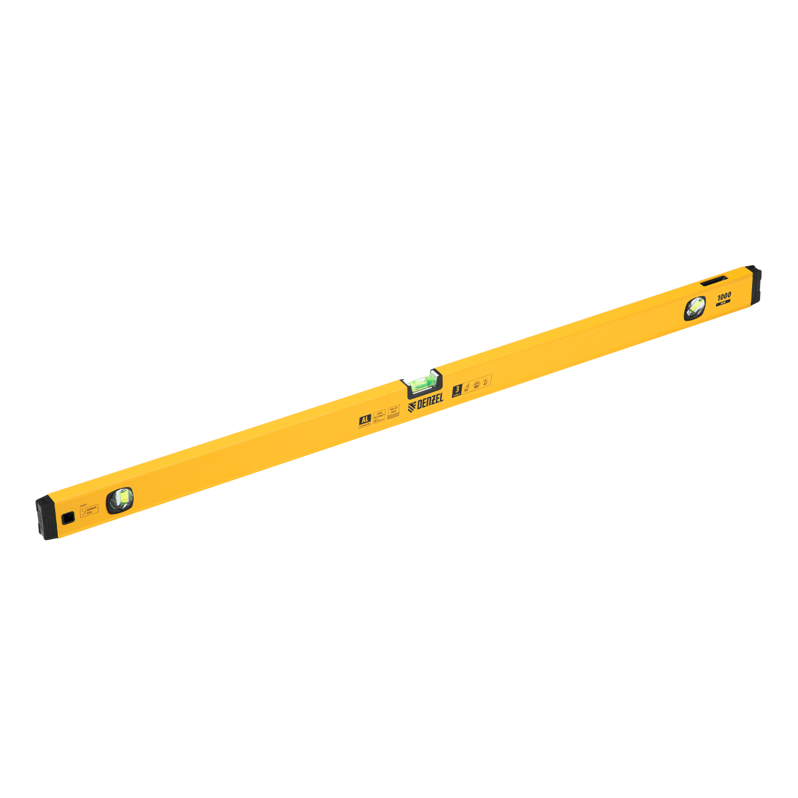 Алюминиевый фрезерованный уровень Denzel 33693 длиной 1000 мм, с магнитом и 3 глазками, из которых 1 зеркальный, предназначен для контроля отклонений от горизонтальной, вертикальной и поверхности под углом 45° с точностью 0,5 мм/м. 3 пузырьковые камеры 90°, 180° и 45° позволяют быстро проверить правильность разметки. Инструмент незаменим при проведении строительных, ремонтных, сантехнических работ.