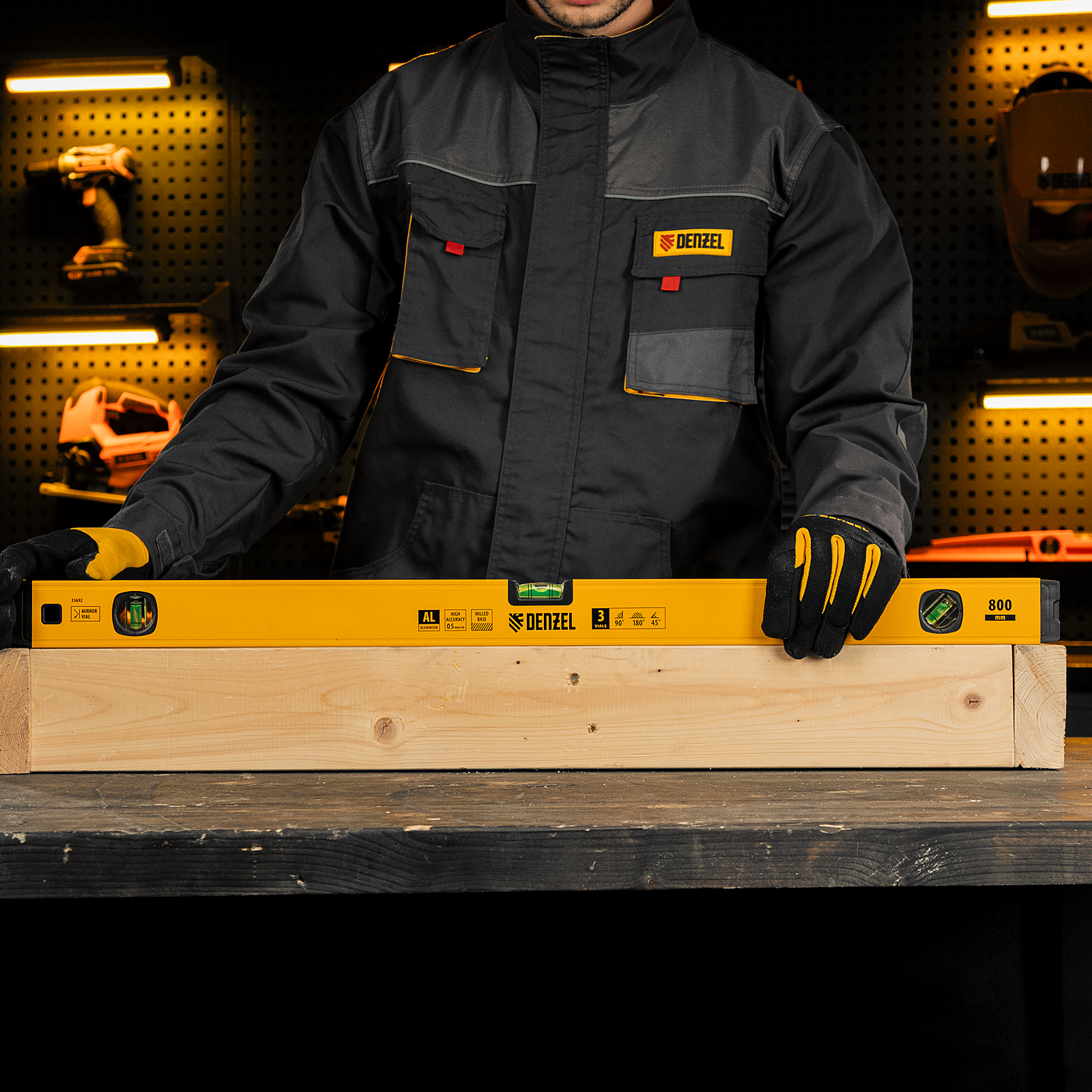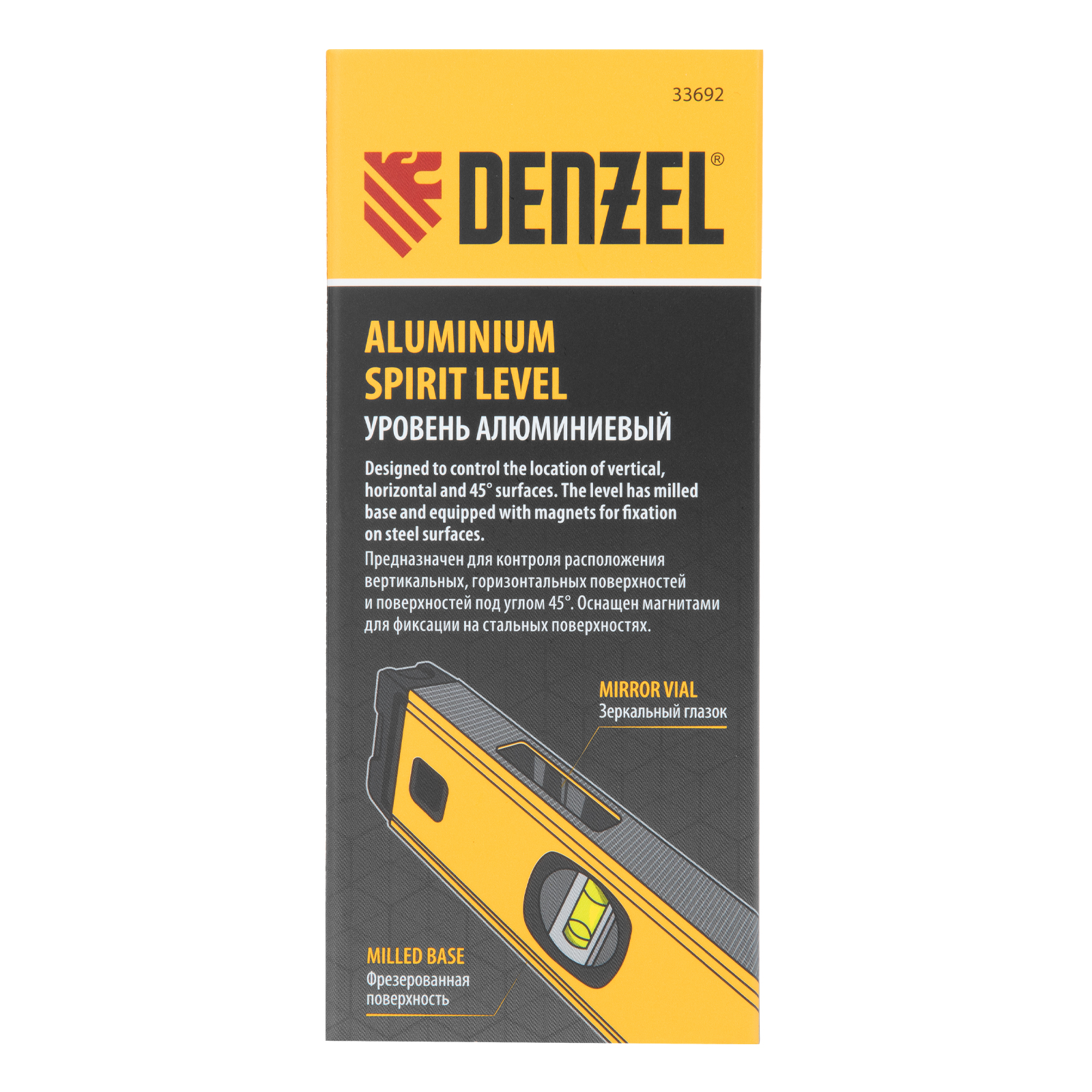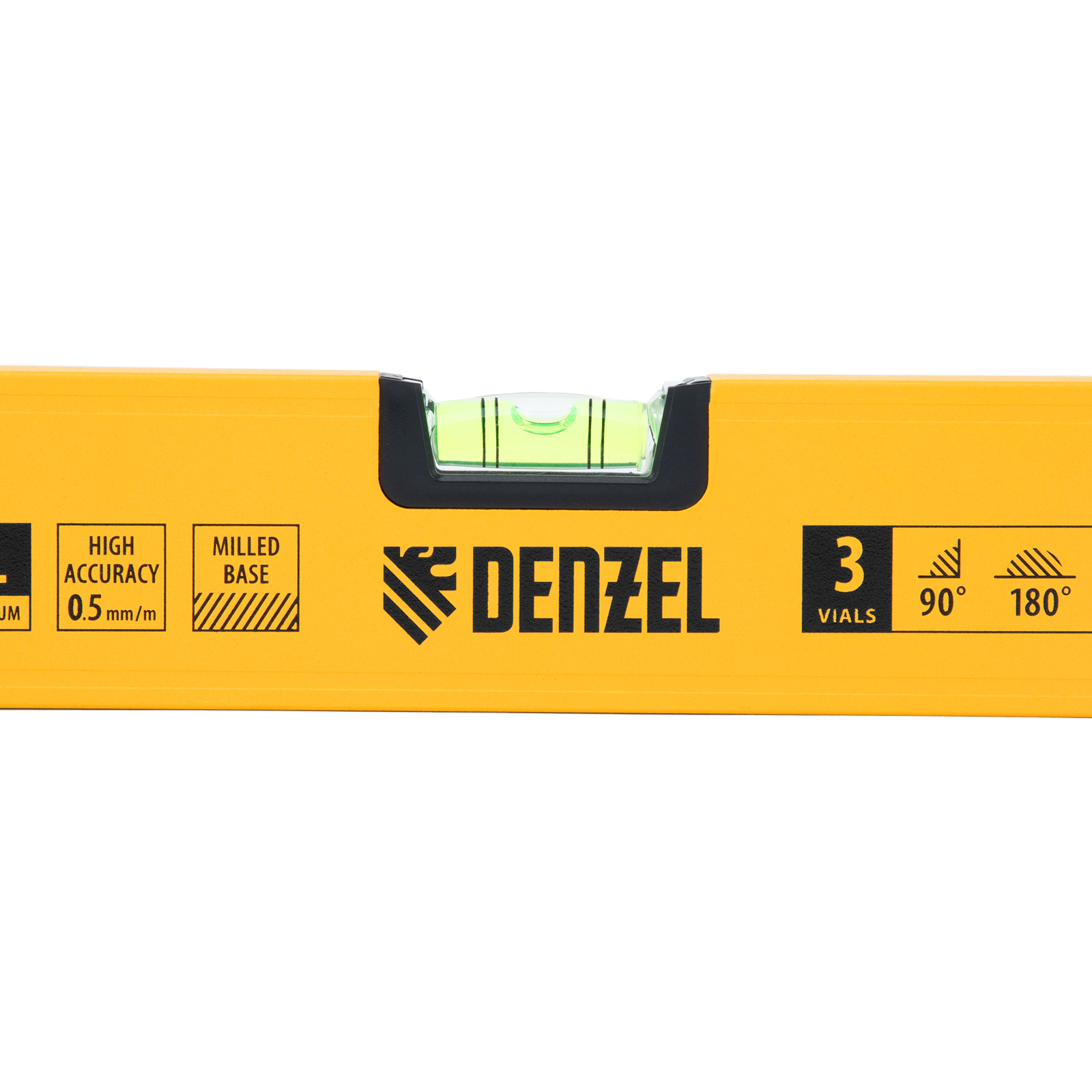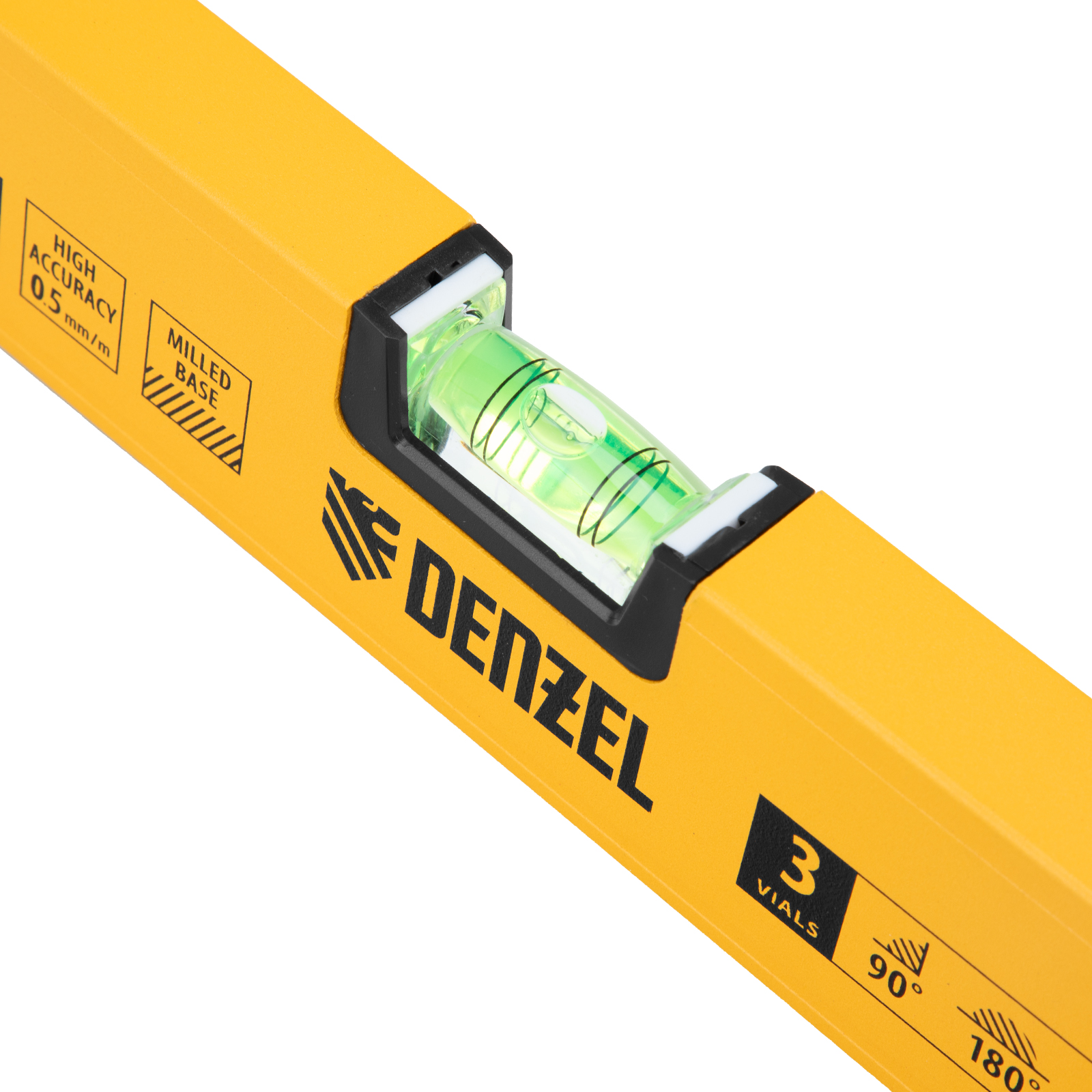 Алюминиевый фрезерованный уровень Denzel 33692 длиной 800 мм, с магнитом и 3 глазками, из которых 1 зеркальный, предназначен для контроля отклонений от горизонтальной, вертикальной и поверхности под углом 45° с точностью 0,5 мм/м. 3 пузырьковые камеры 90°, 180° и 45° позволяют быстро проверить правильность разметки. Инструмент незаменим при проведении строительных, ремонтных, сантехнических работ.
