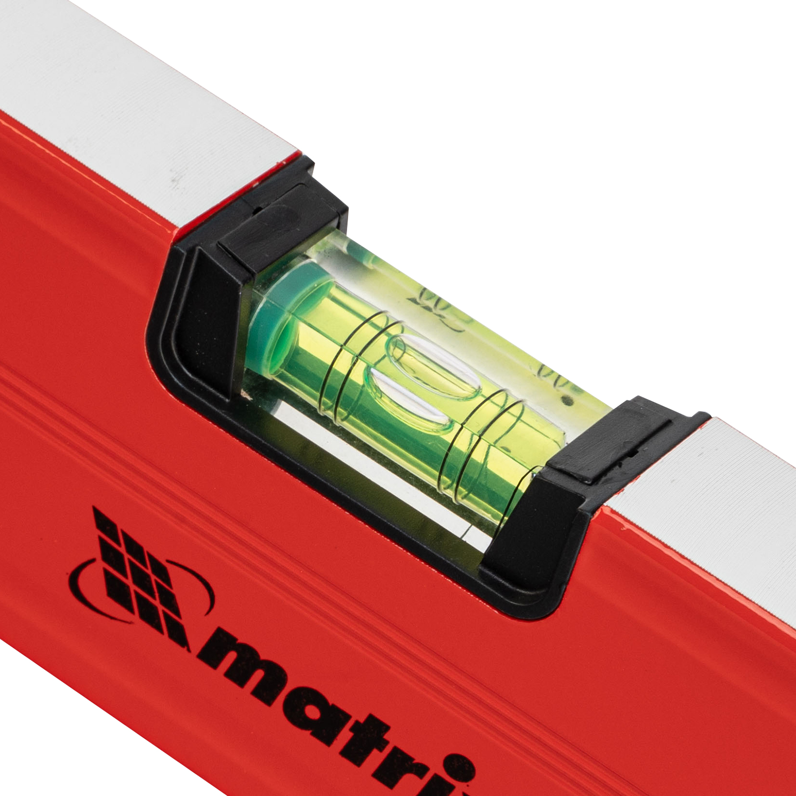 Алюминиевый магнитный уровень Matrix 34706 длиной 600 мм, усиленный, оснащен 3 глазками и одним зеркальным отражателем. С его помощью можно выявить отклонения от вертикали, горизонтали и угла 45 градусов. Встроенный зеркальный глазок повышает удобство работы, позволяя легко считывать показания.,Для определения отклонения вертикали 90 градусов необходимо использовать пузырьковую ампулу только в верхнем положении уровня. Только базовая поверхность является рабочей (противоположная ампуле 180 градусов).