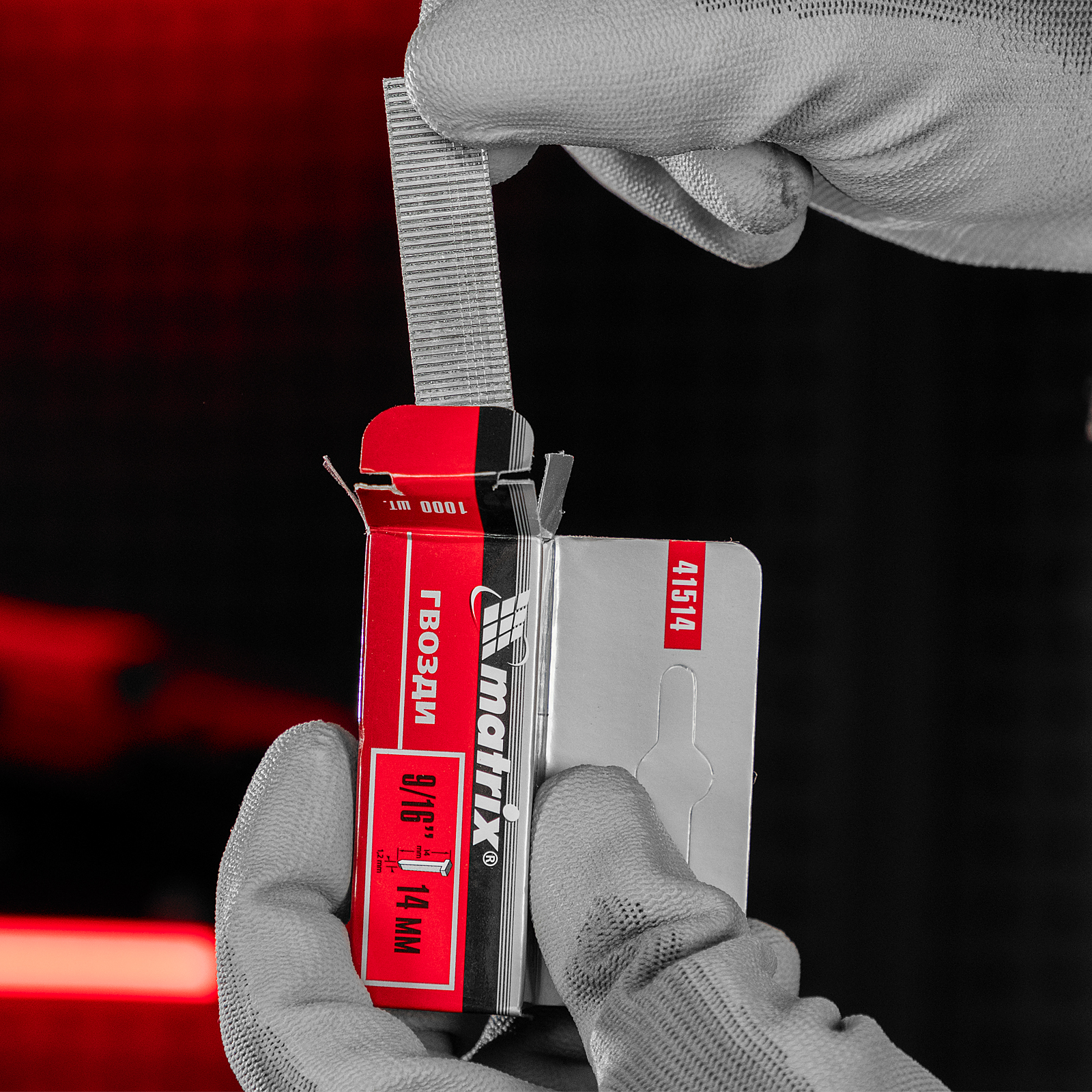 Гвозди со шляпкой Matrix 41514 типа 300, высотой 14 мм, 1000 шт. в упаковке, — расходный материал для мебельных степлеров. Обеспечивают надежное крепление тканых и листовых материалов к деревянной основе, поэтому будут полезны во время строительных, ремонтных и облицовочных работ, пригодятся также для производства мебели.